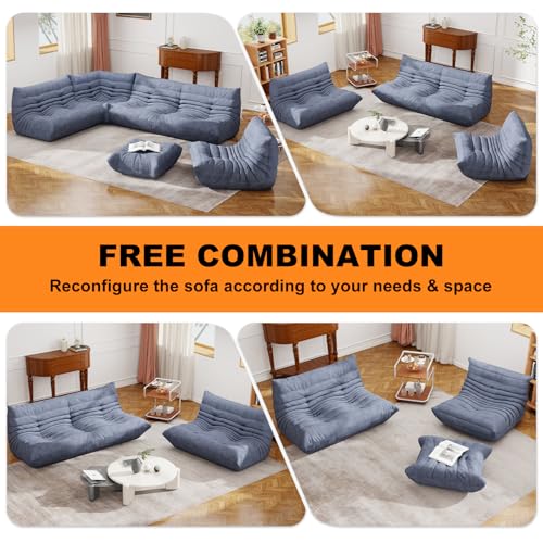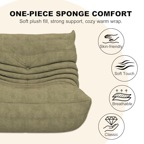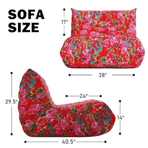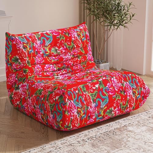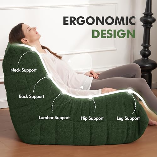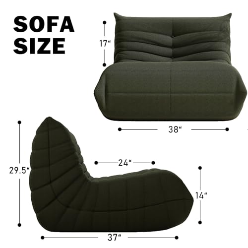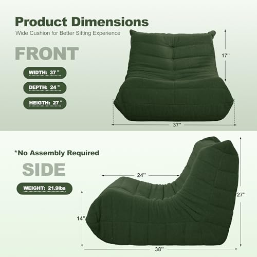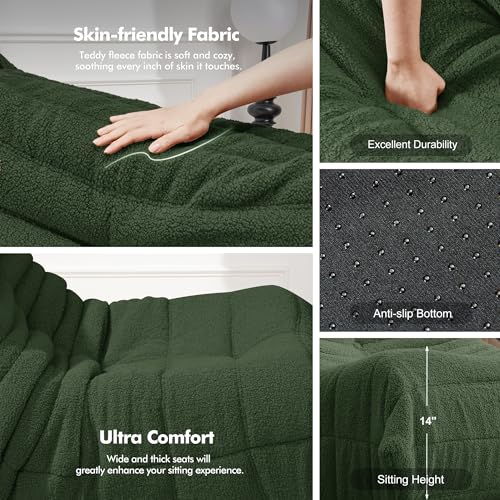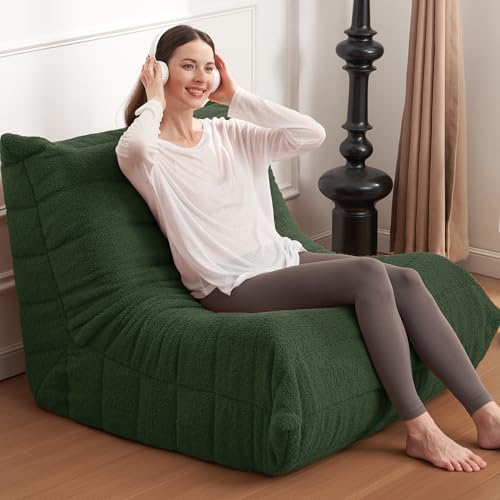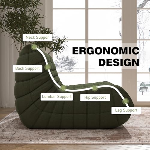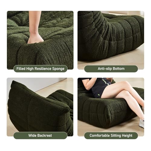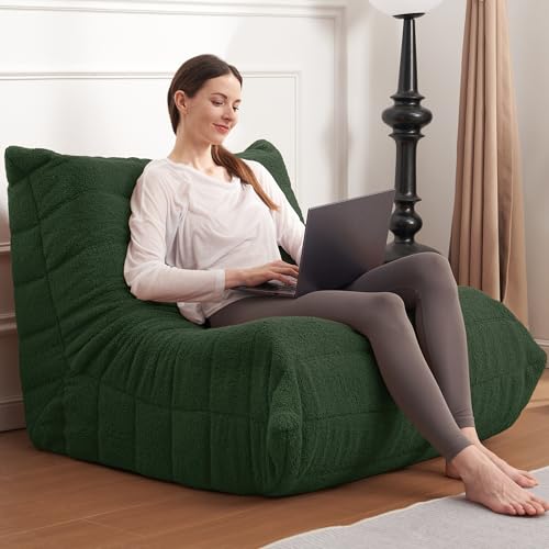 Bean Bag Chair with Footstool, Comfy Reading Sofa Chair for Adults, Modern Floor Sofa for Livingroom, Bedroom, Green