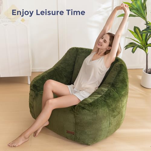 HABUTWAY Bean Bag Chair, Giant Bean Bag Chairs for Adults, Bean Bag Sofa with Filler Faux Fur, Memory Foam Bean Bag Couches Fireside Lazy Sofa for Living Room, Bedroom, Office (Beige)