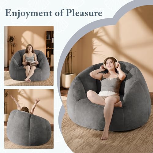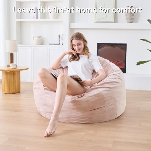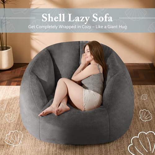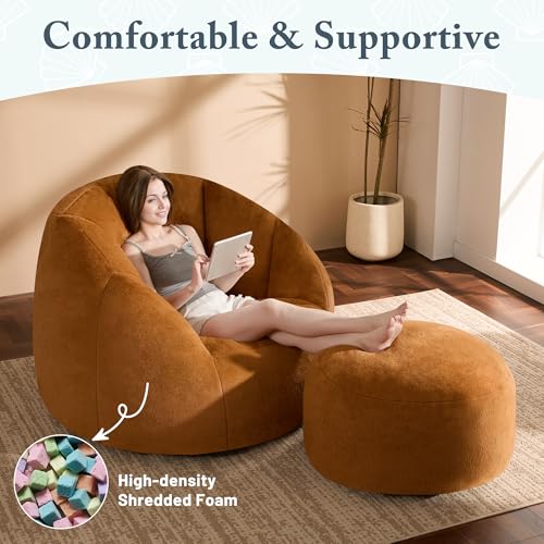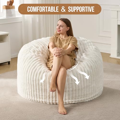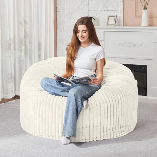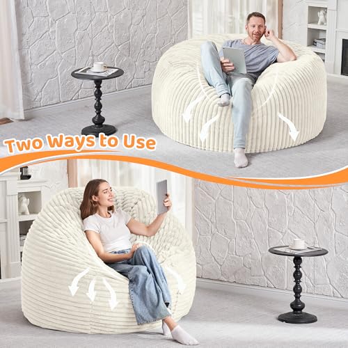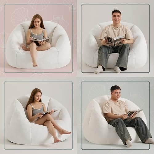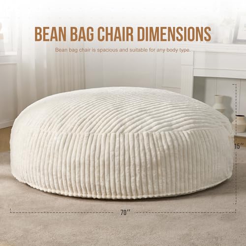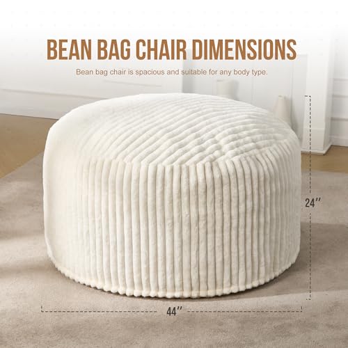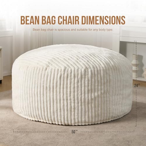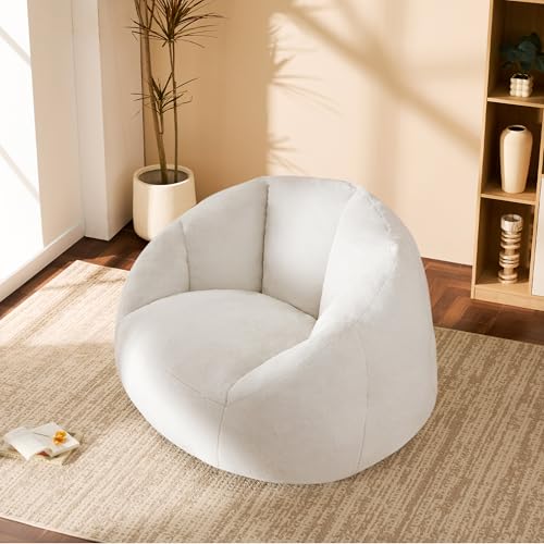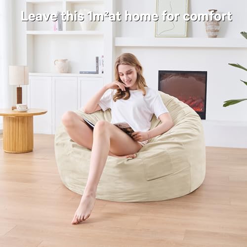 Giant Bean Bag Chair for Adults - Comfy Plush Round Shell Soft Accent Chair, Oversized Cozy Lounge Floor Sofa Reading Chair, Mini Couch for Living Room, Bedroom & Game Rooms, Beige