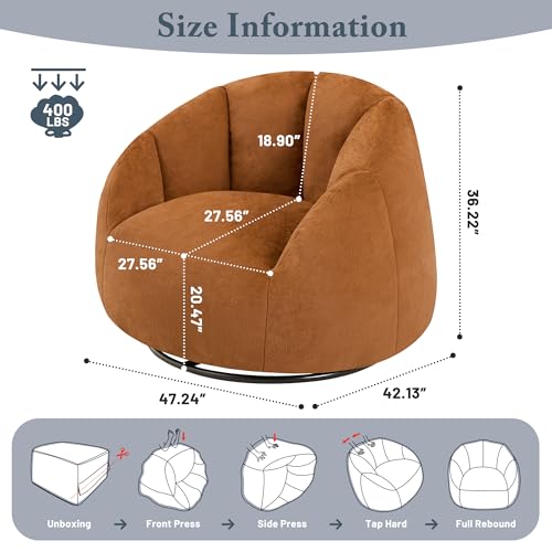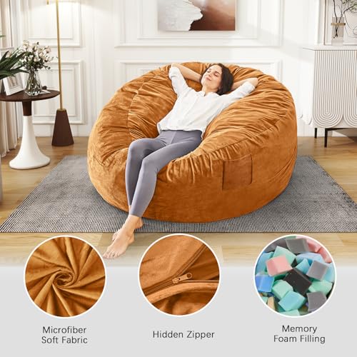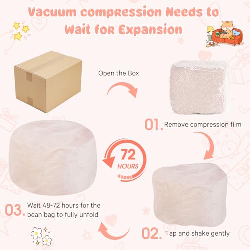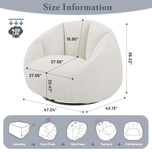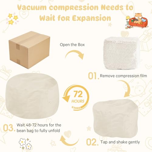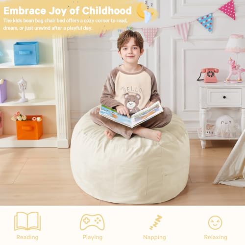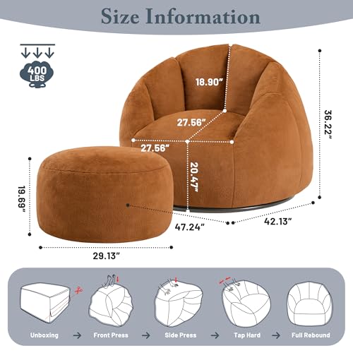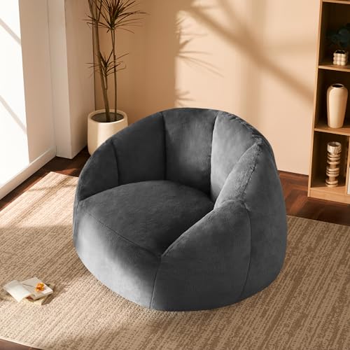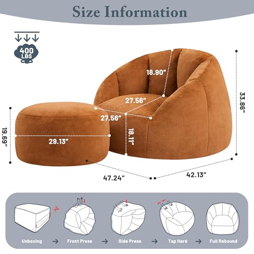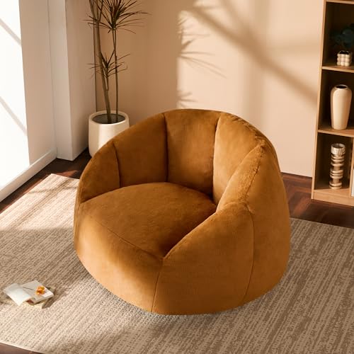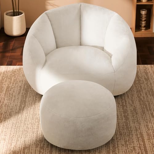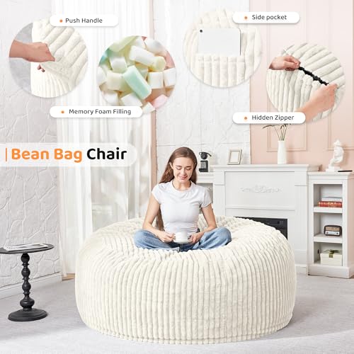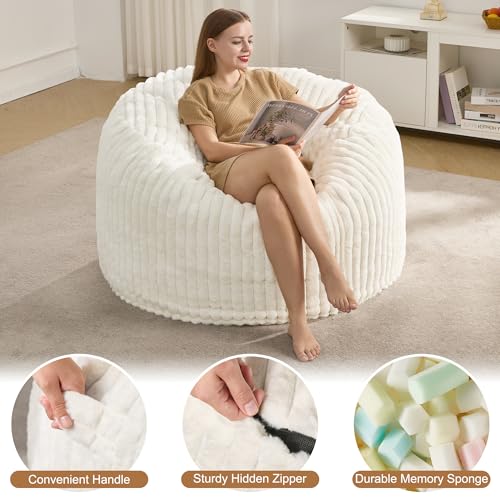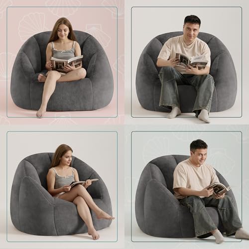 Giant Bean Bag Chair for Adults - Comfy Plush Round Shell Soft Accent Chair, Oversized Cozy Lounge Floor Sofa Reading Chair, Mini Couch for Living Room, Bedroom & Game Rooms, Beige