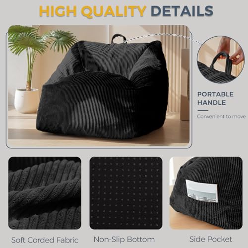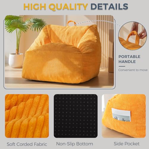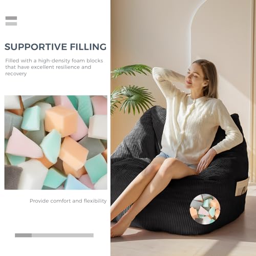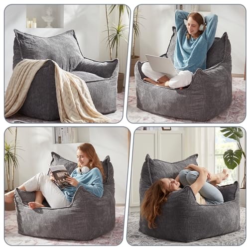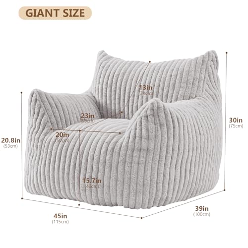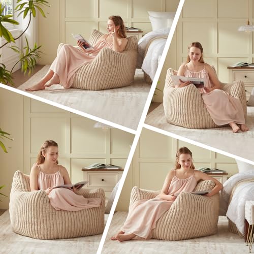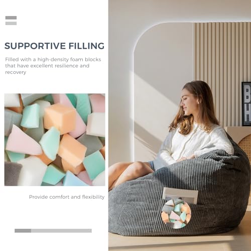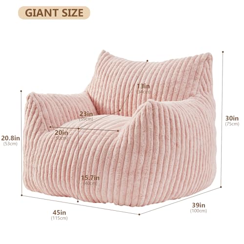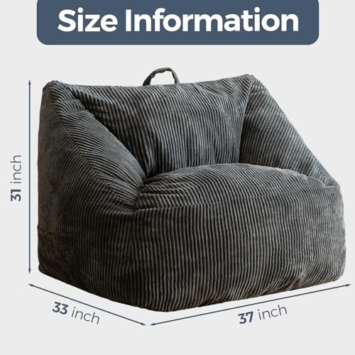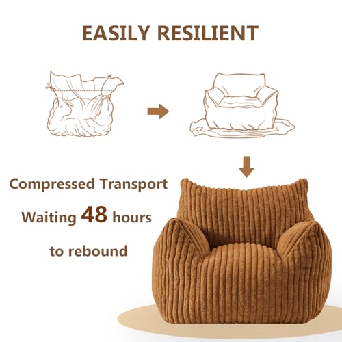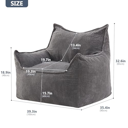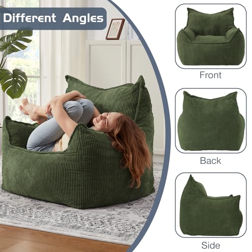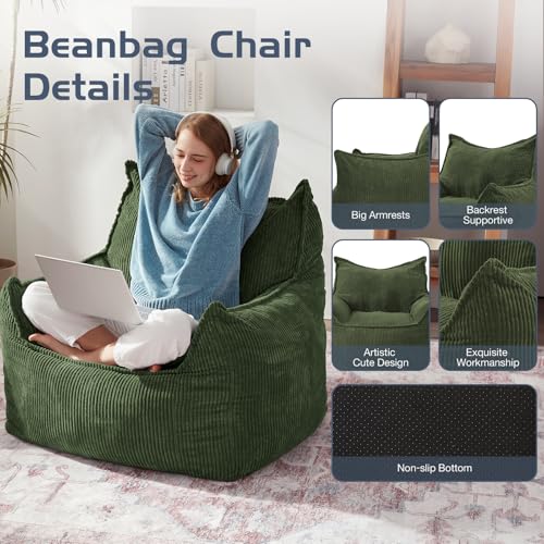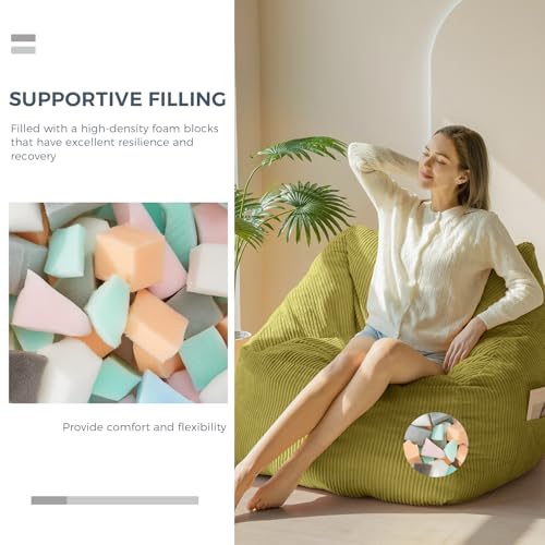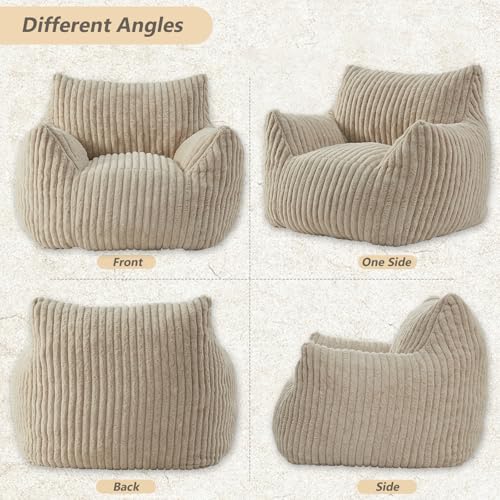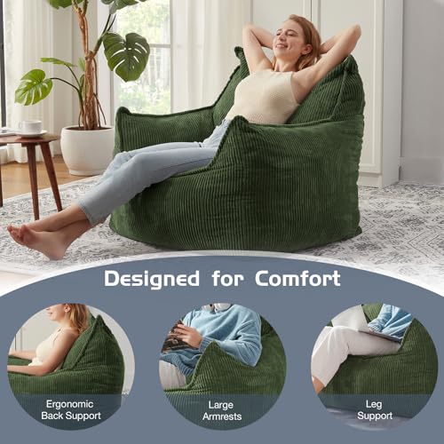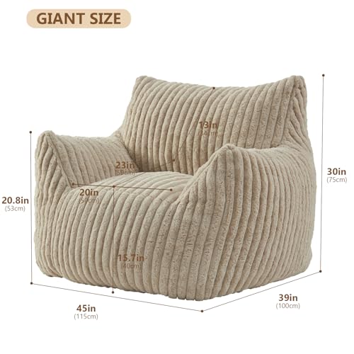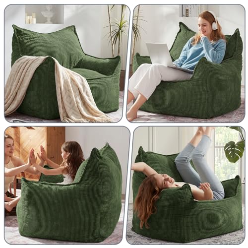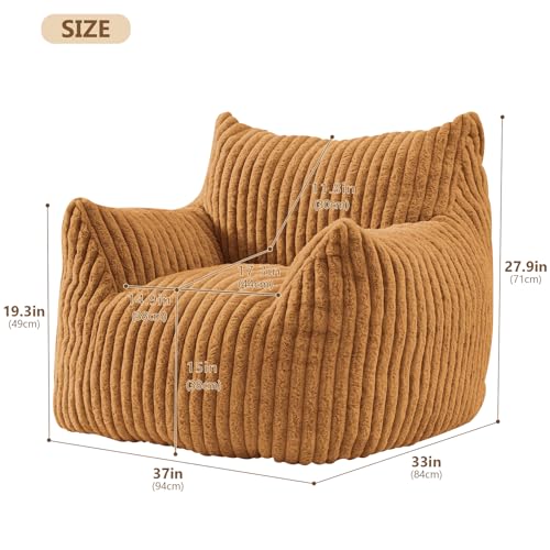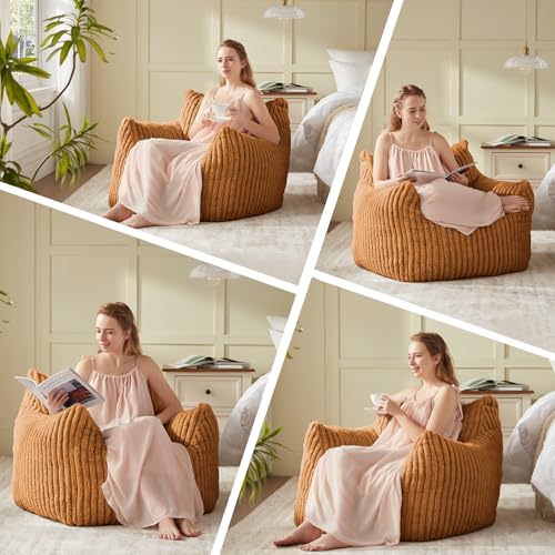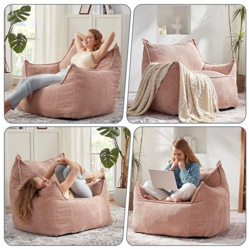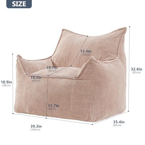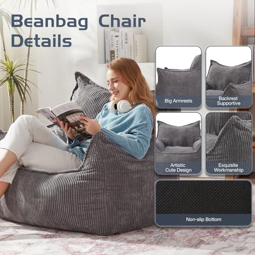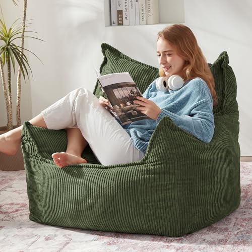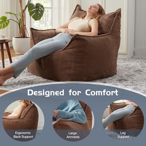 Giant Bean Bag Chair Sofa for Adults Teens, Comfy Corduroy Large Bean Bag Chairs with Armrests for Bedroom Living Room, Adult BeanBag Lazy Sofa Couch Chairs with Filler Included