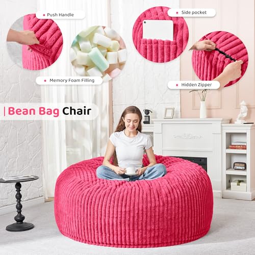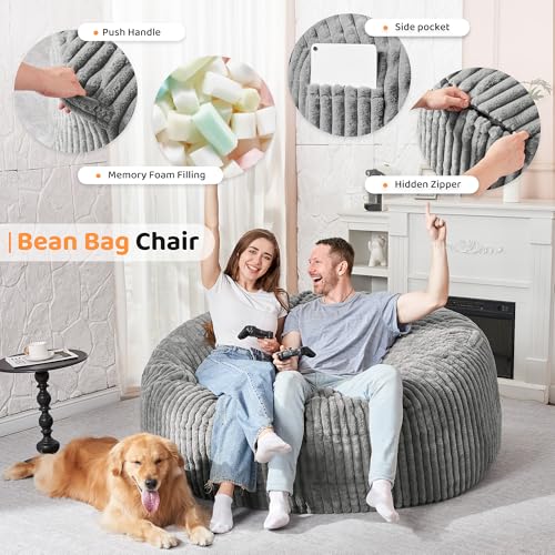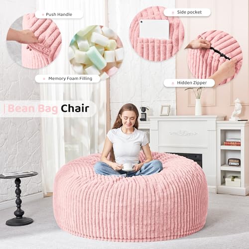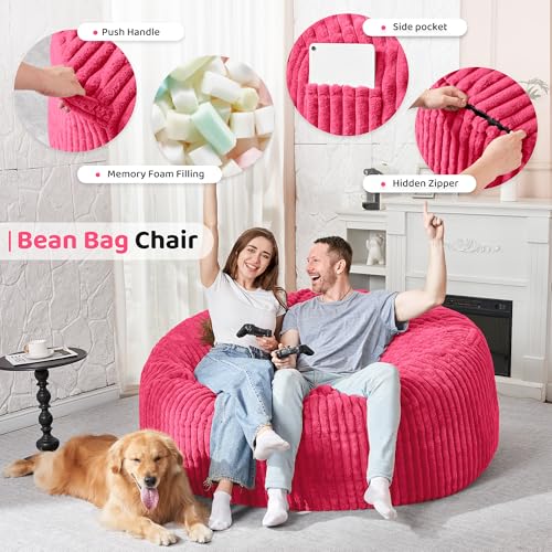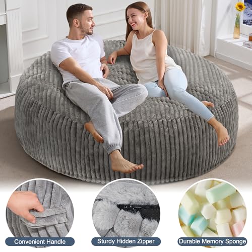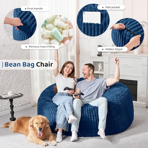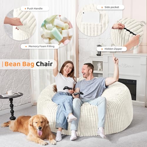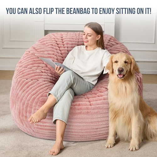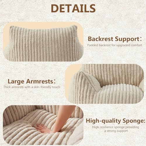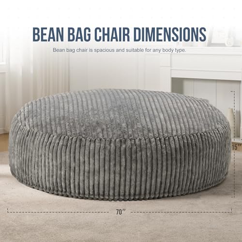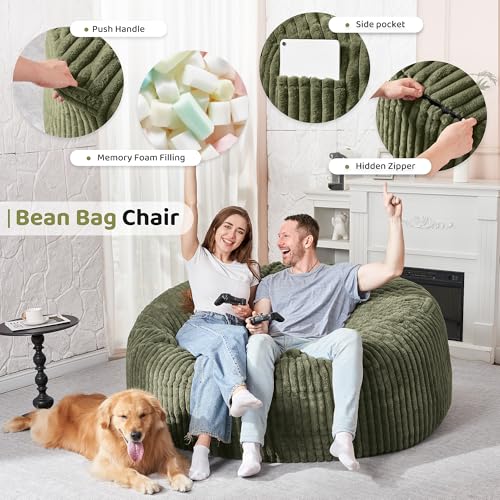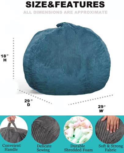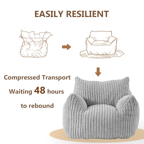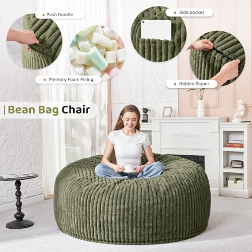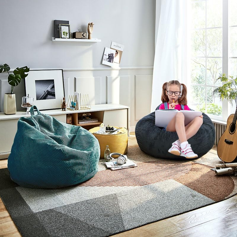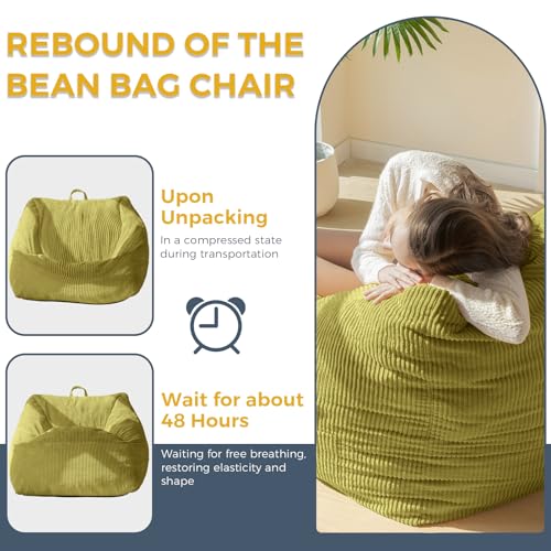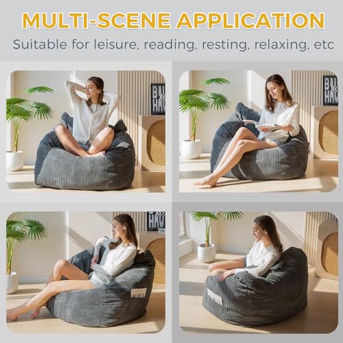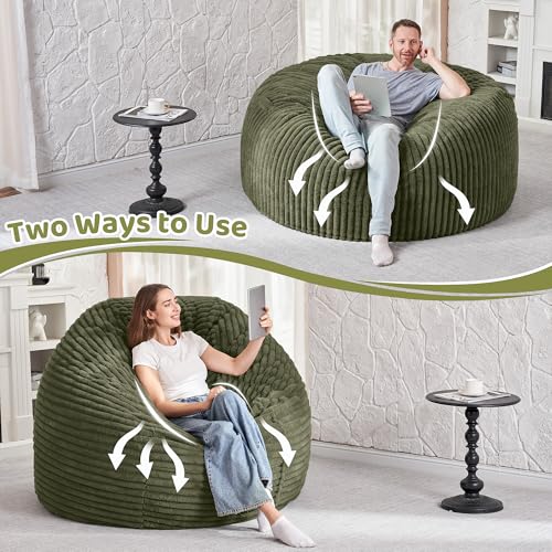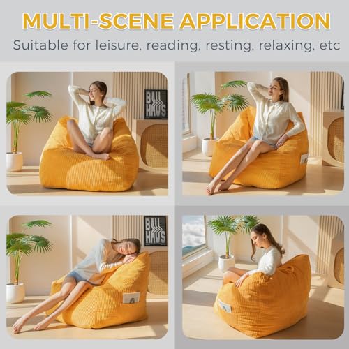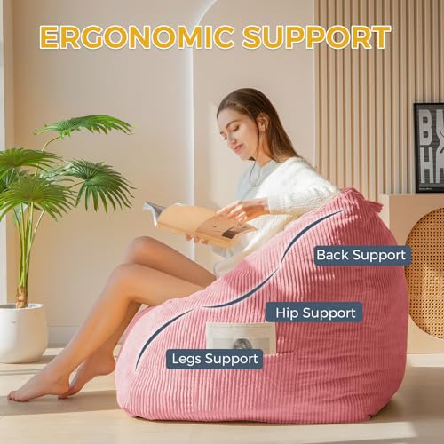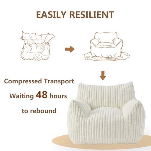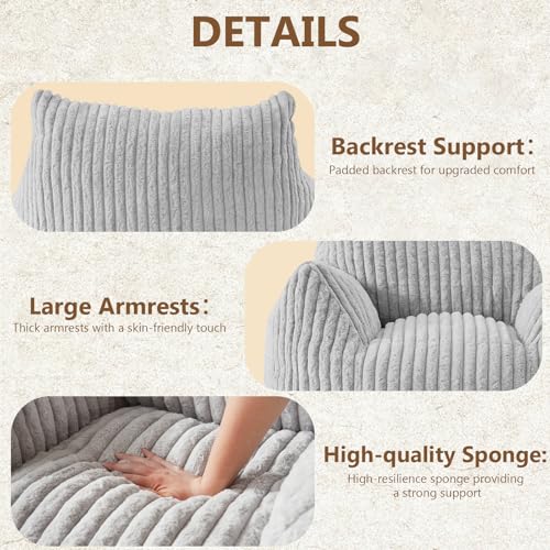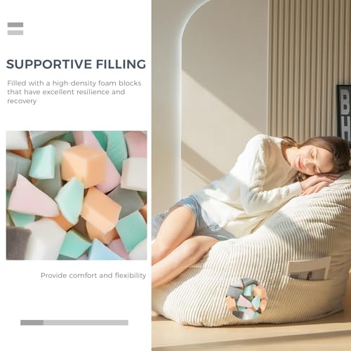 Giant Bean Bag Chair Sofa for Adults Teens, Comfy Corduroy Large Bean Bag Chairs with Armrests for Bedroom Living Room, Adult BeanBag Lazy Sofa Couch Chairs with Filler Included