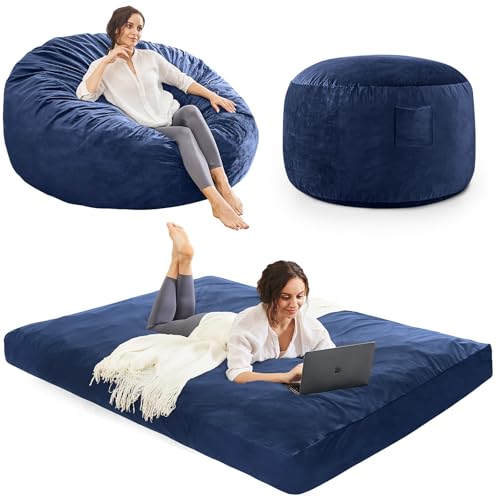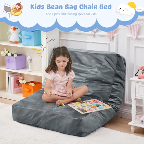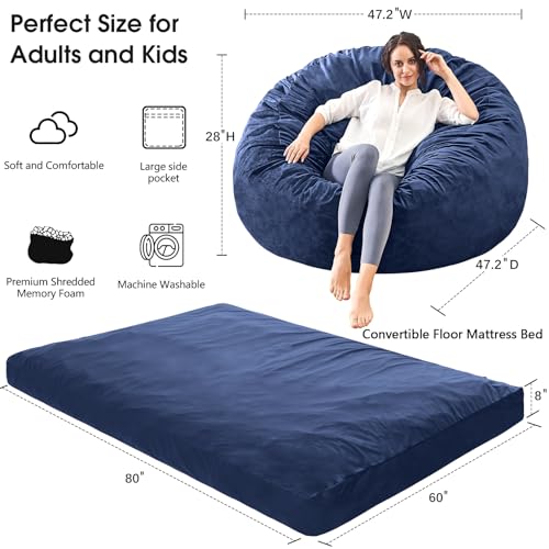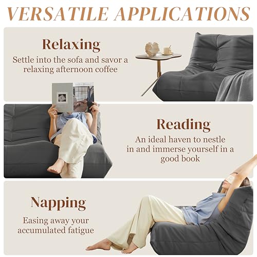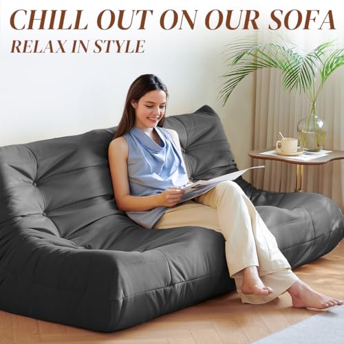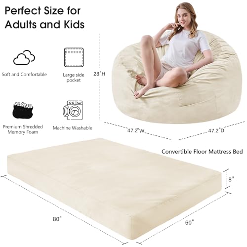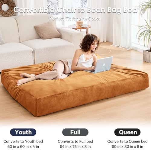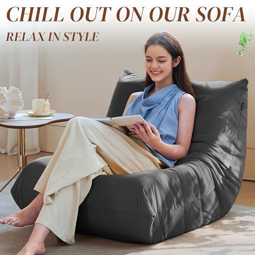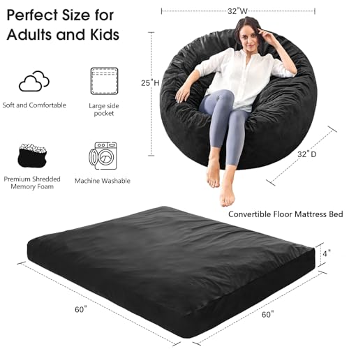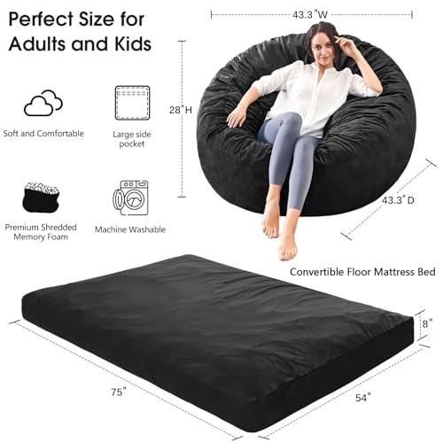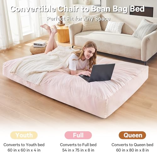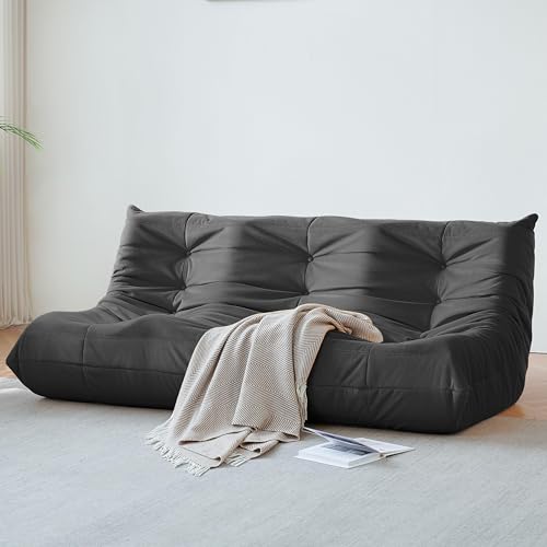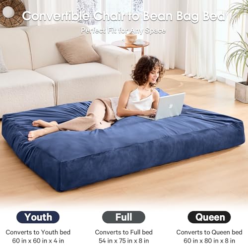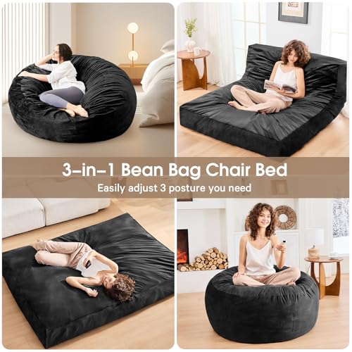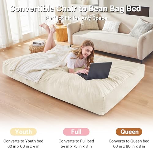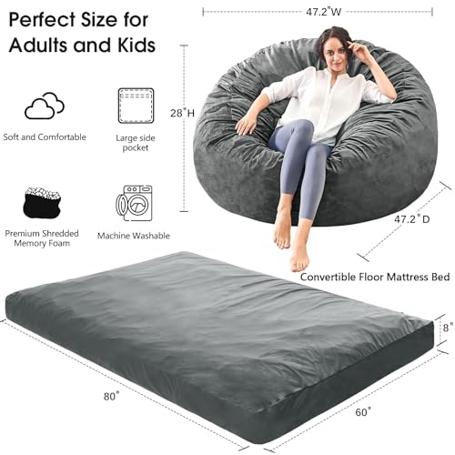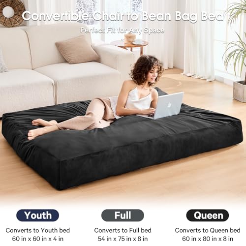 Bean Bag Chairs for Adults - Giant Bean Bag Chair Convertible Bean Bag Bed - Beanbag Chair with Micro Fiber Cover/Furniture Foam Filler - Floor Couch Sofa in Bedroom Dorm Room - Full Charcoal