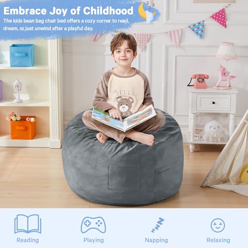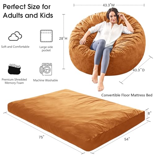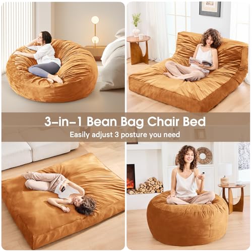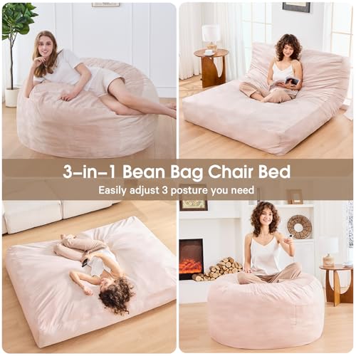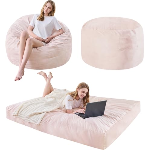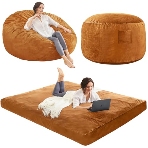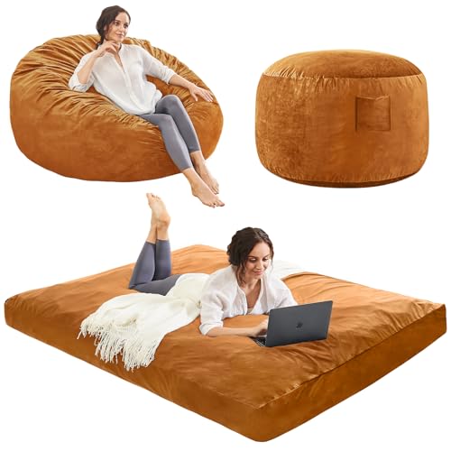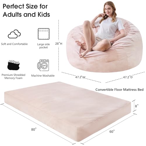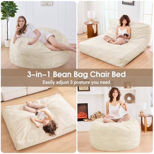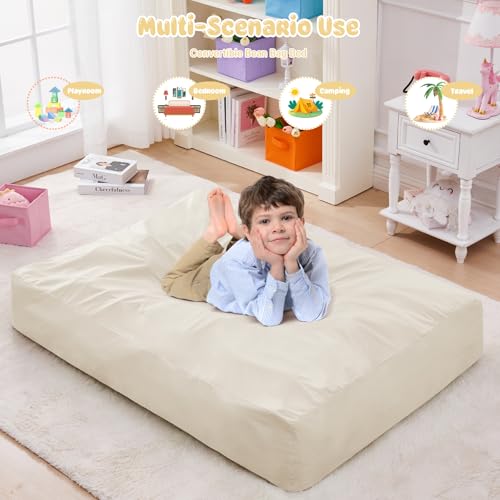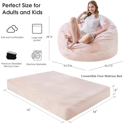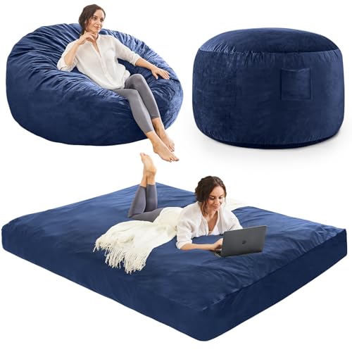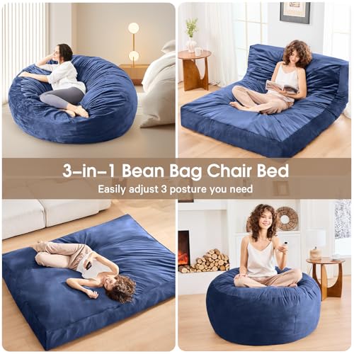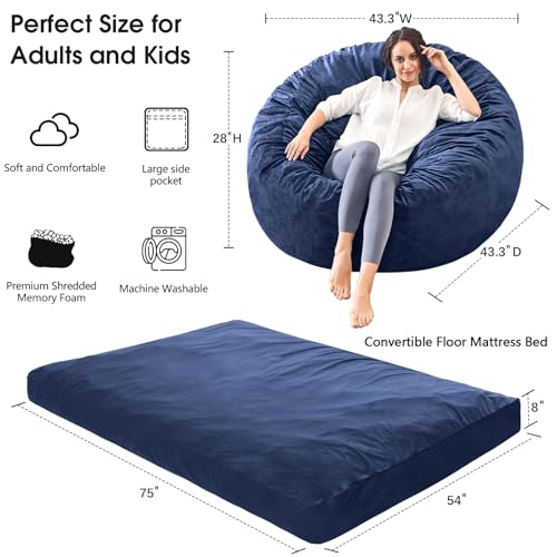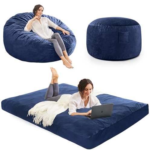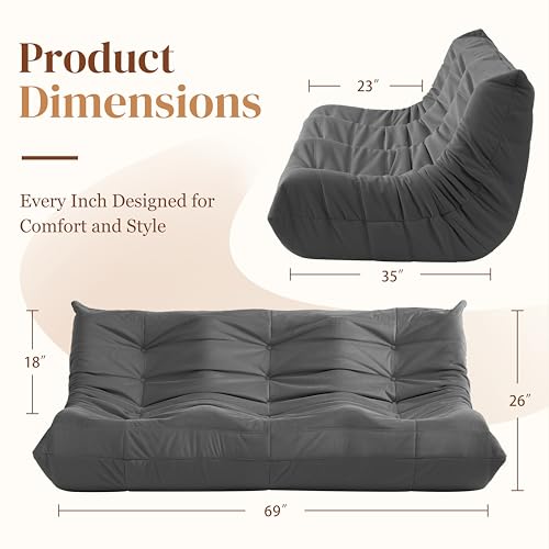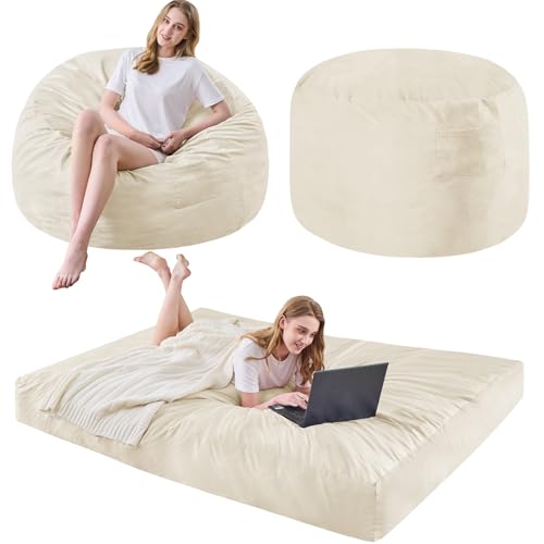 Bean Bag Chairs for Adults - Giant Bean Bag Chair Convertible Bean Bag Bed - Beanbag Chair with Micro Fiber Cover/Furniture Foam Filler - Floor Couch Sofa in Bedroom Dorm Room - Full Charcoal