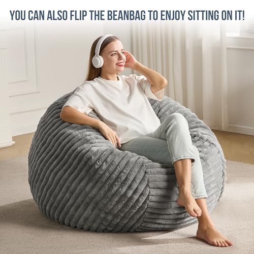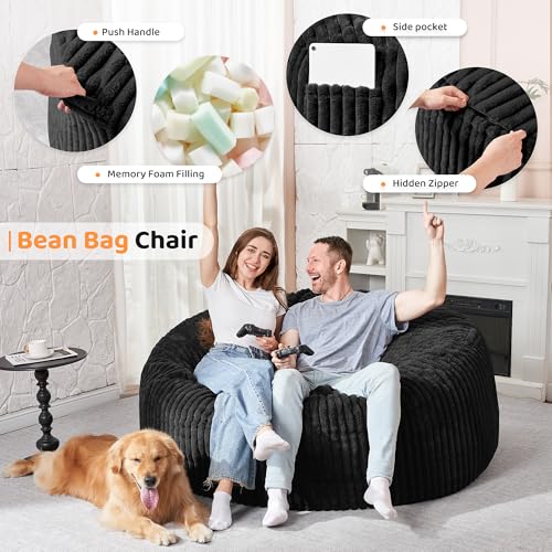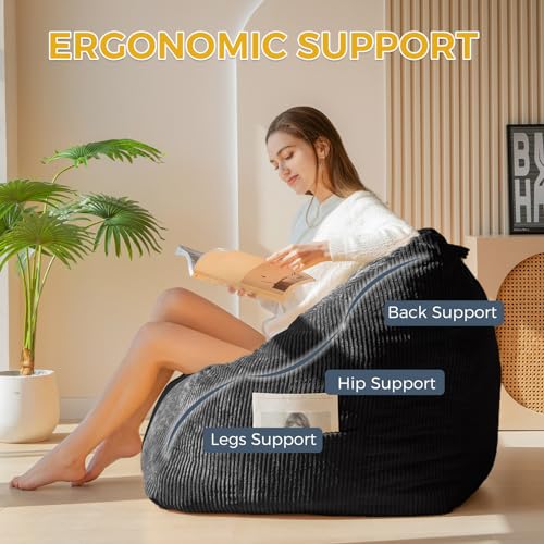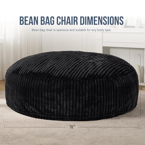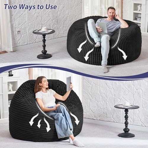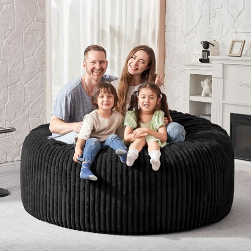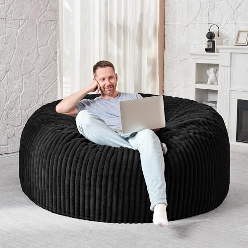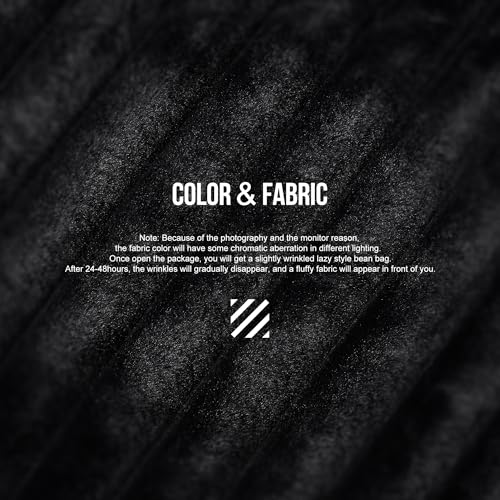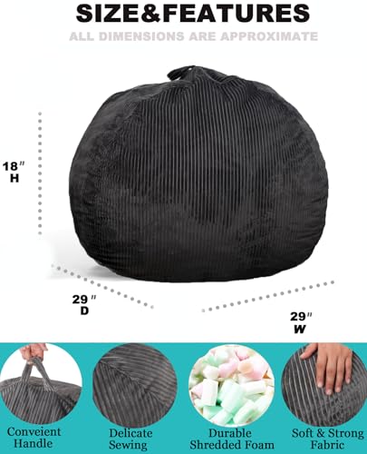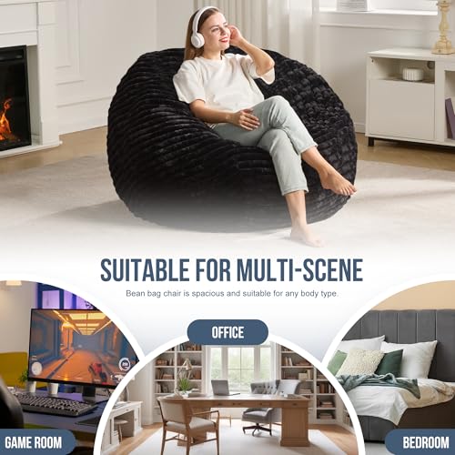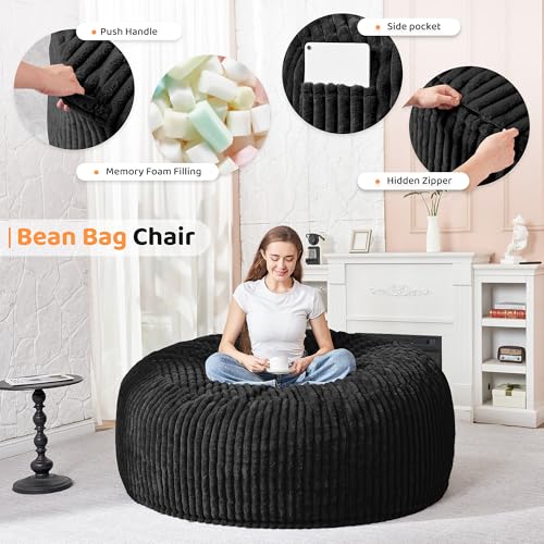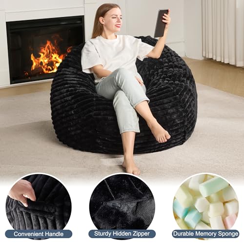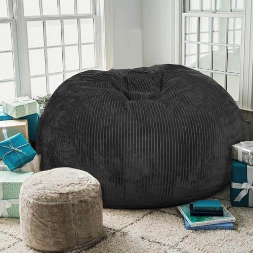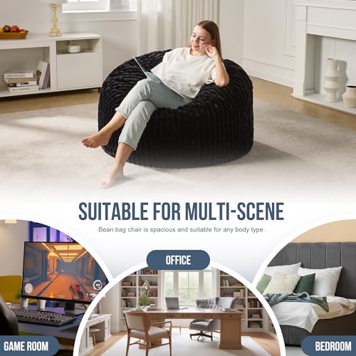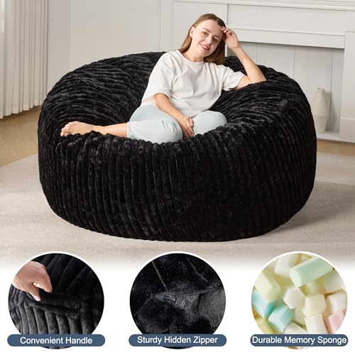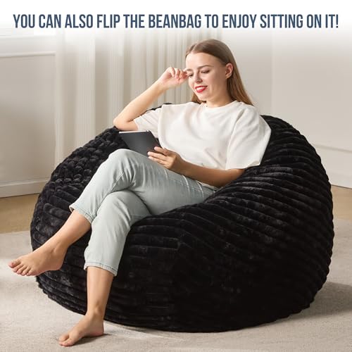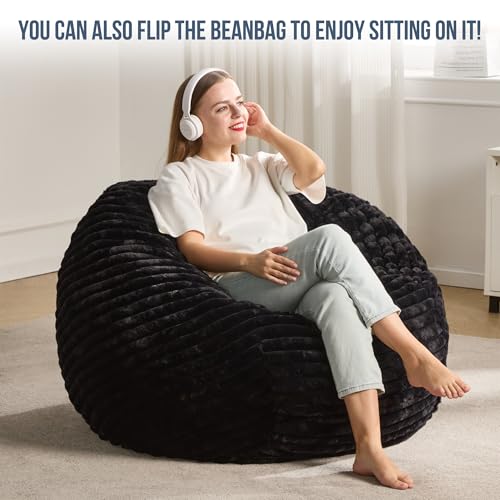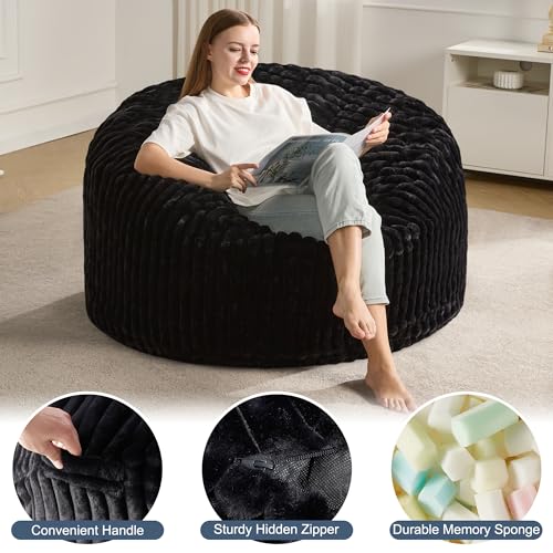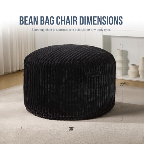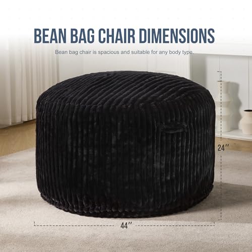 Hobestluk 5ft Bean Bag Chairs for Adults Large Beanbag Chair with Stripe Plush Cover Big Bean Bag Chair for Living Room Bedroom Dorm Office -Black (50” x 50” x 24”)
