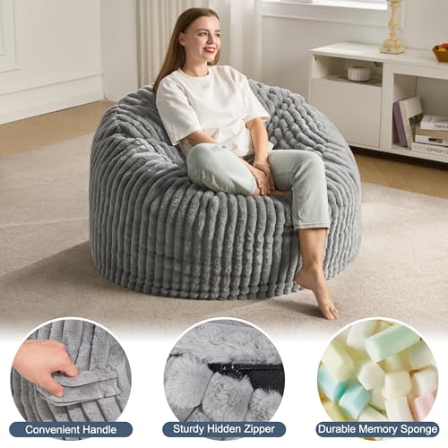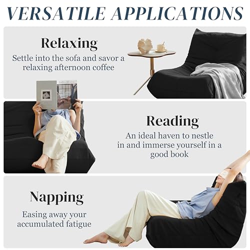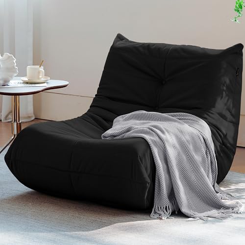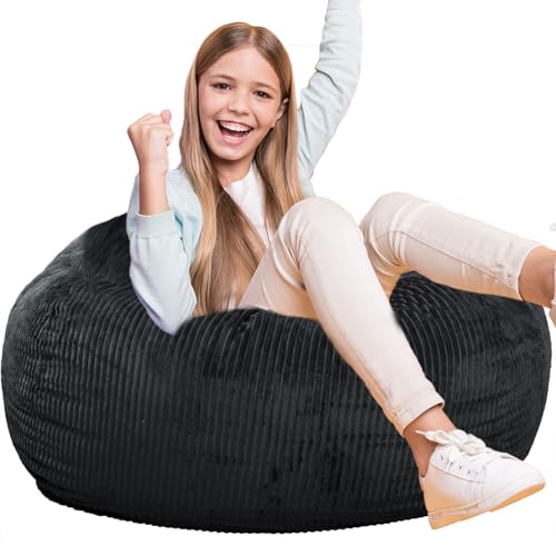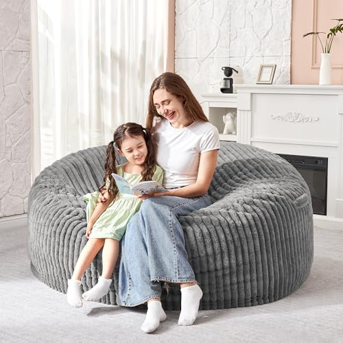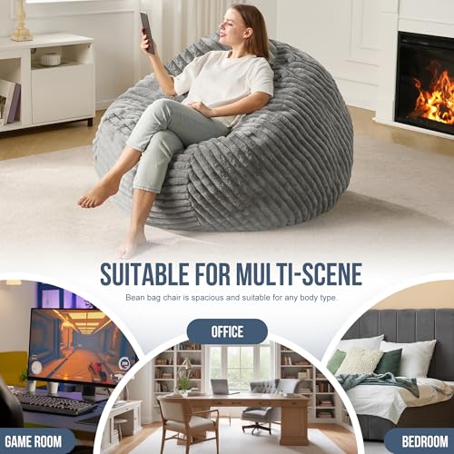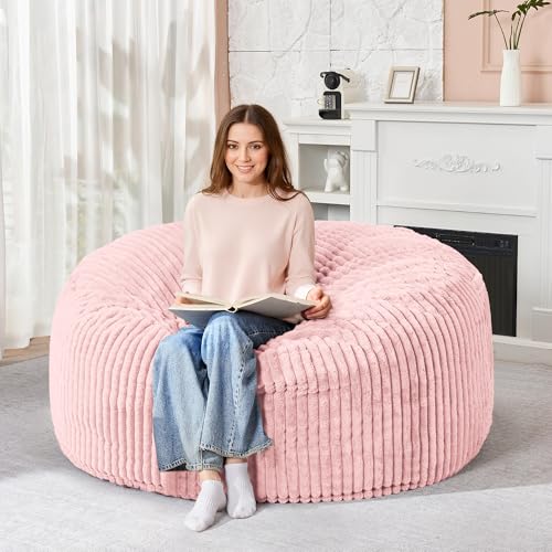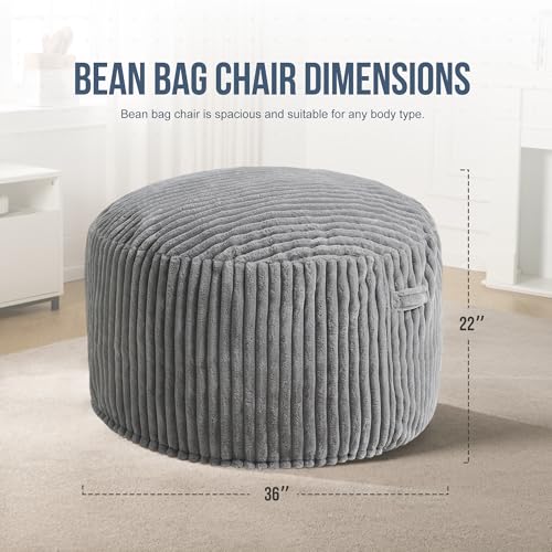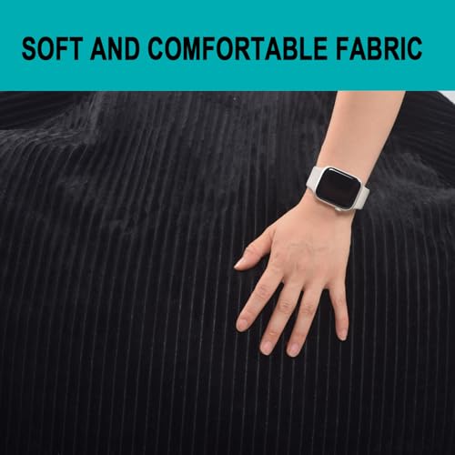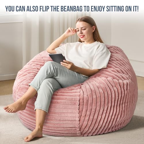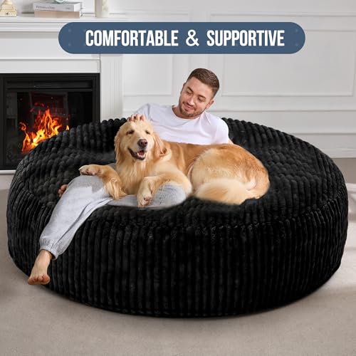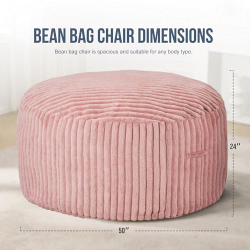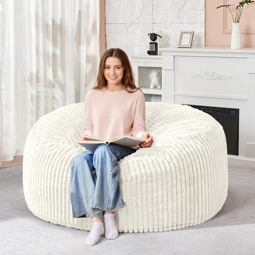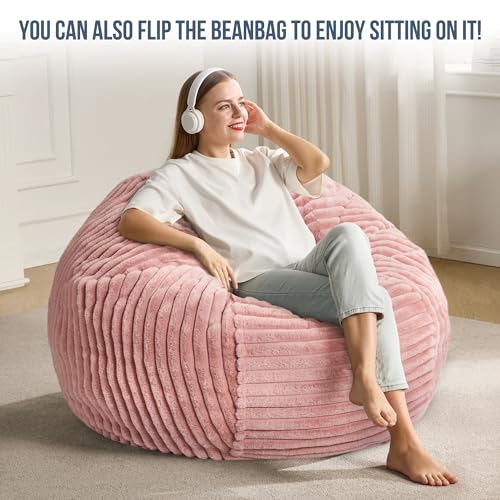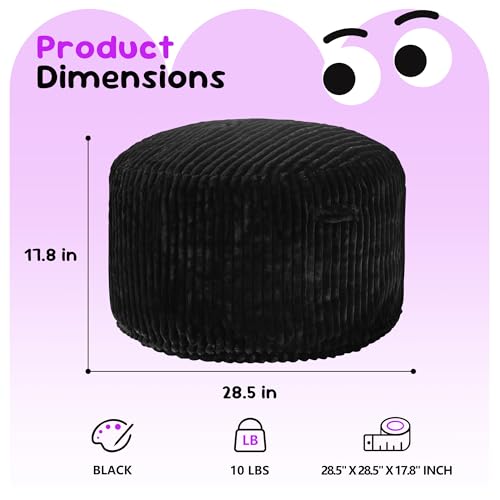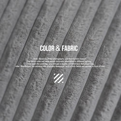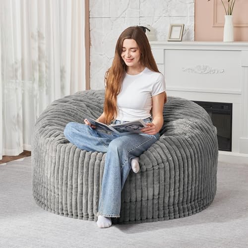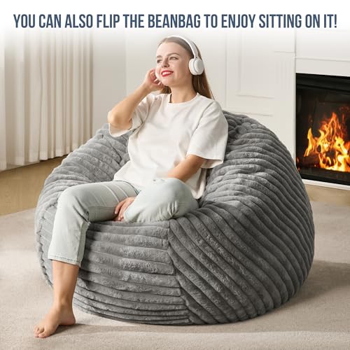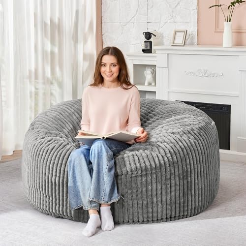 Hobestluk 5ft Bean Bag Chairs for Adults Large Beanbag Chair with Stripe Plush Cover Big Bean Bag Chair for Living Room Bedroom Dorm Office -Black (50” x 50” x 24”)