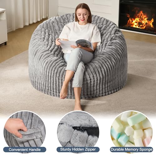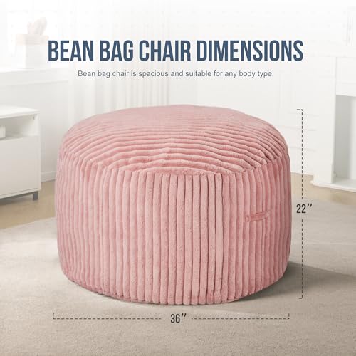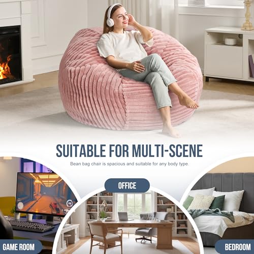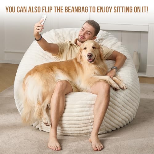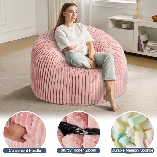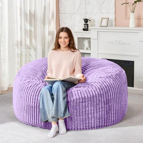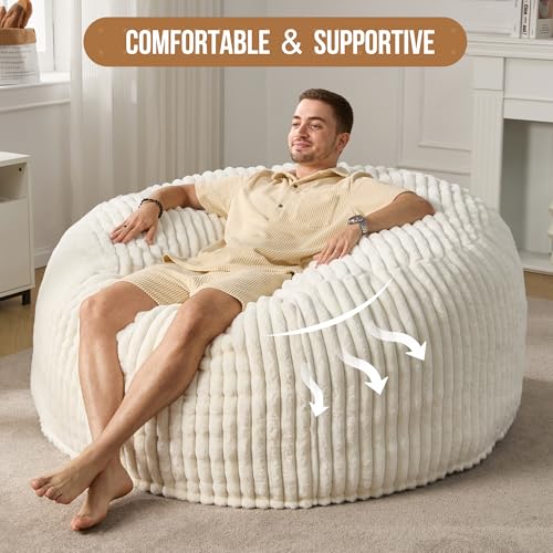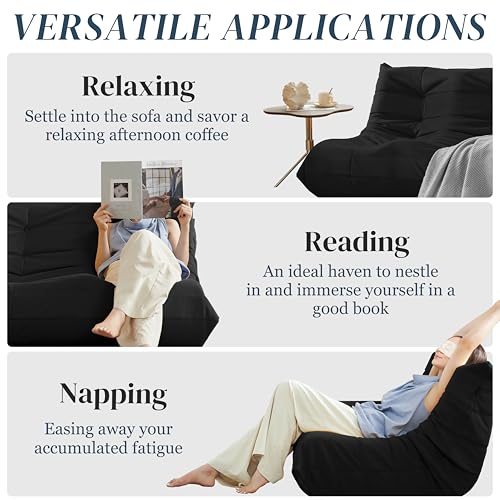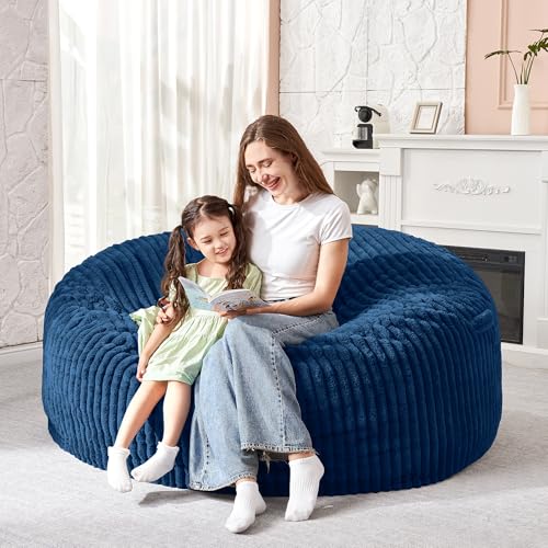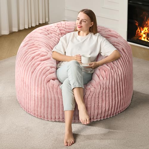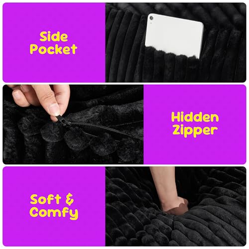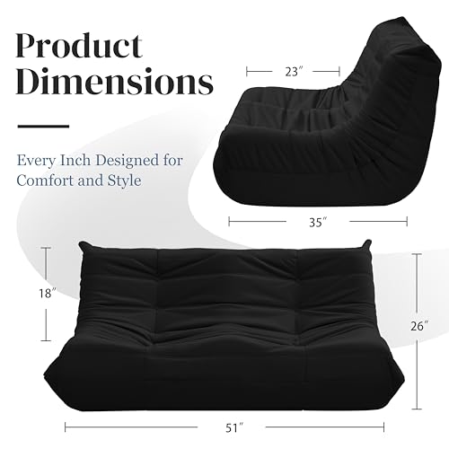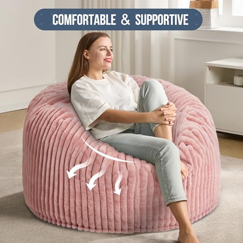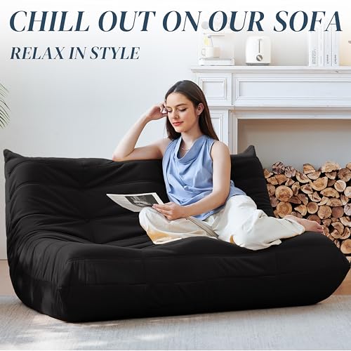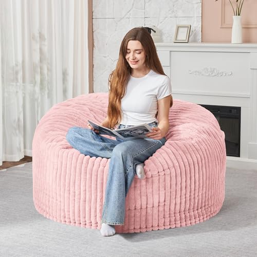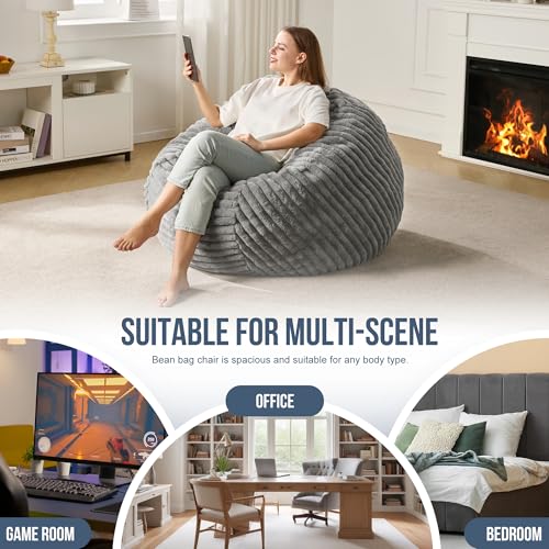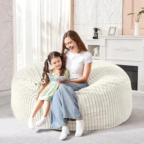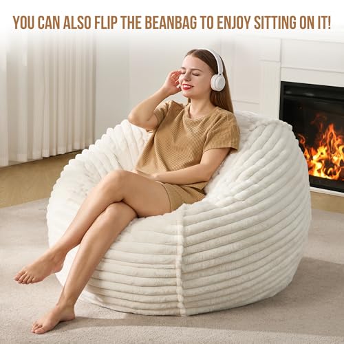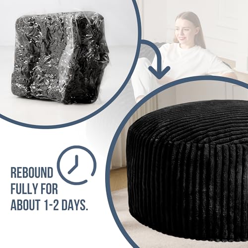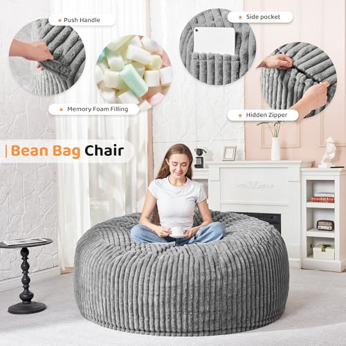 Hobestluk 5ft Bean Bag Chairs for Adults Large Beanbag Chair with Stripe Plush Cover Big Bean Bag Chair for Living Room Bedroom Dorm Office -Black (50” x 50” x 24”)