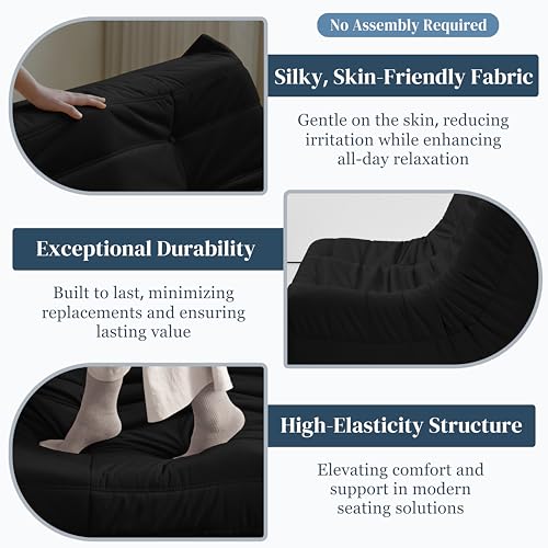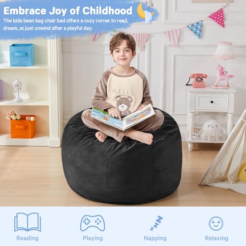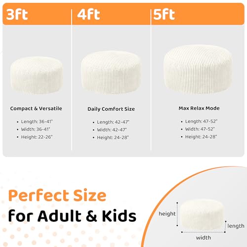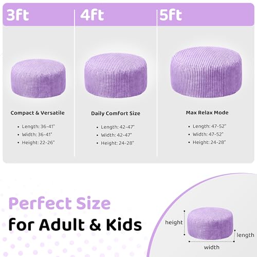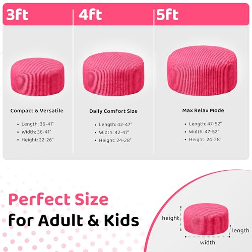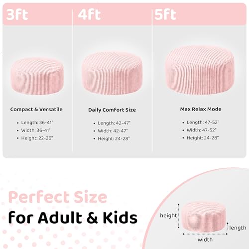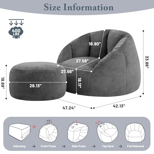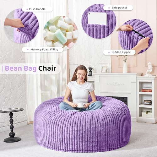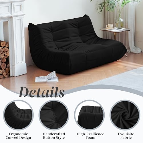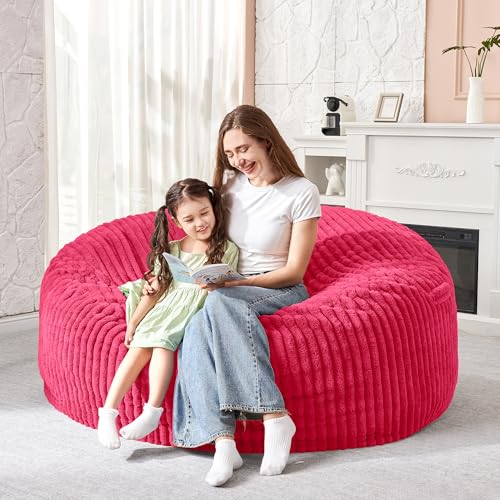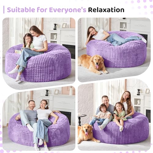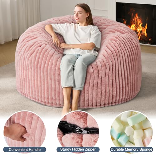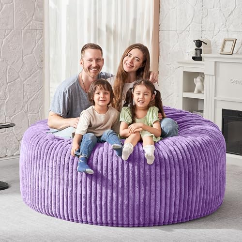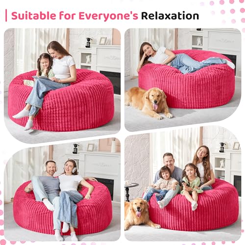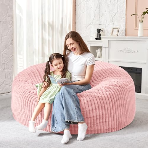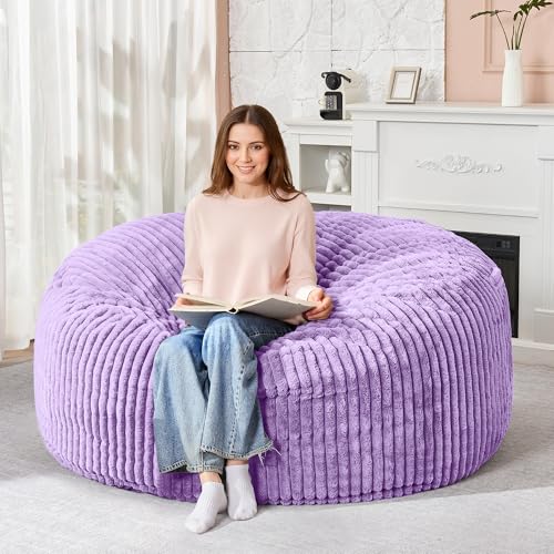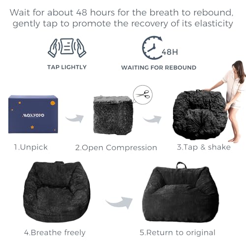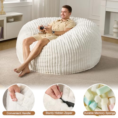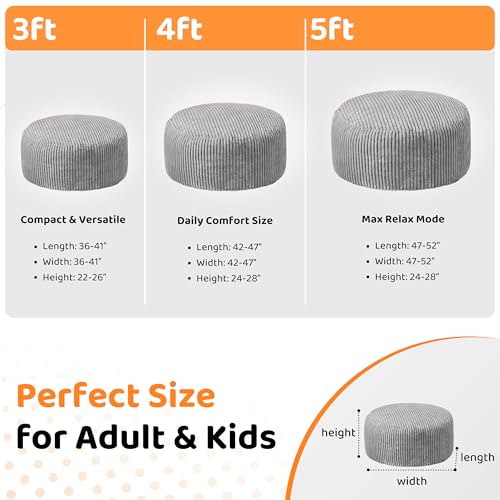 Hobestluk 5ft Bean Bag Chairs for Adults Large Beanbag Chair with Stripe Plush Cover Big Bean Bag Chair for Living Room Bedroom Dorm Office -Black (50” x 50” x 24”)