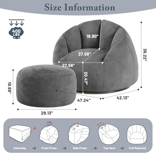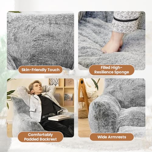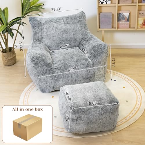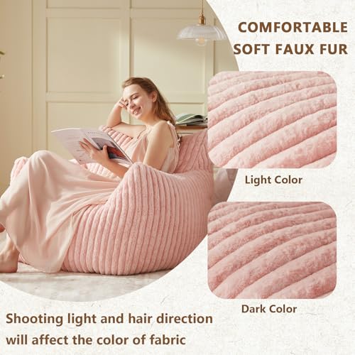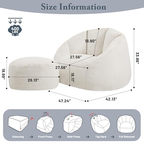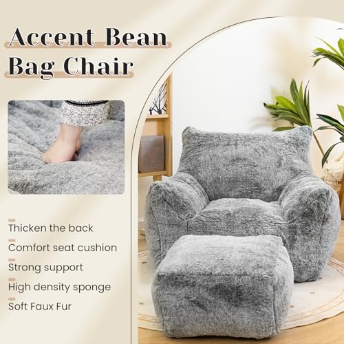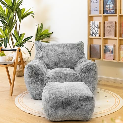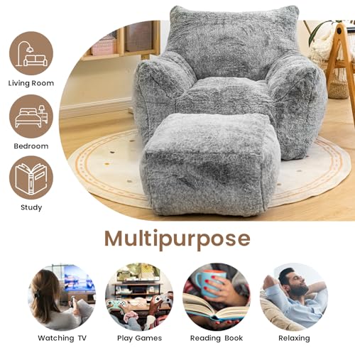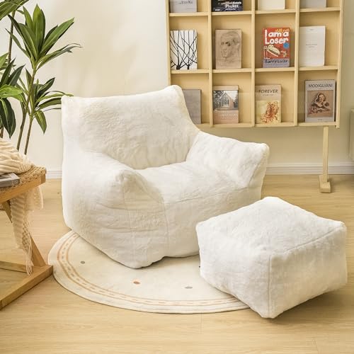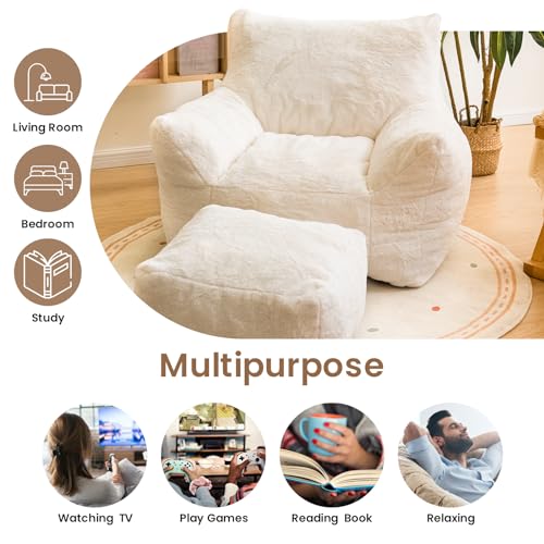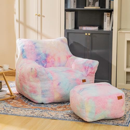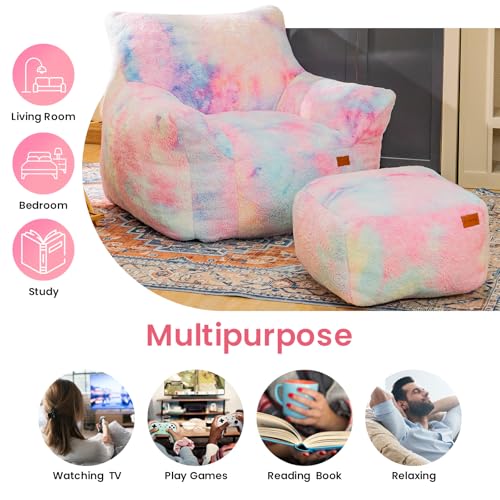Bean Bag Chair, Sherpa Accent Beanbag Chair and Ottoman Set, Fur Faux BeanBag Chair with Memory Foam Filled, Lazy Sofa Comfy Cozy BeanBag Chair for Dorm, Apartment, Living Room (Colorful)