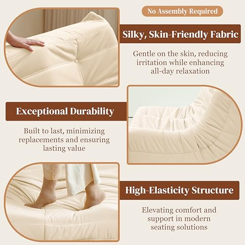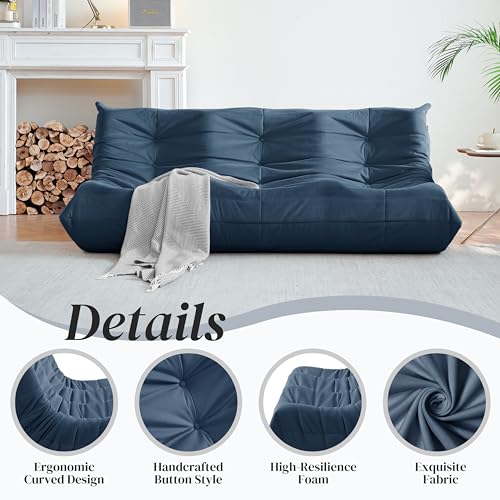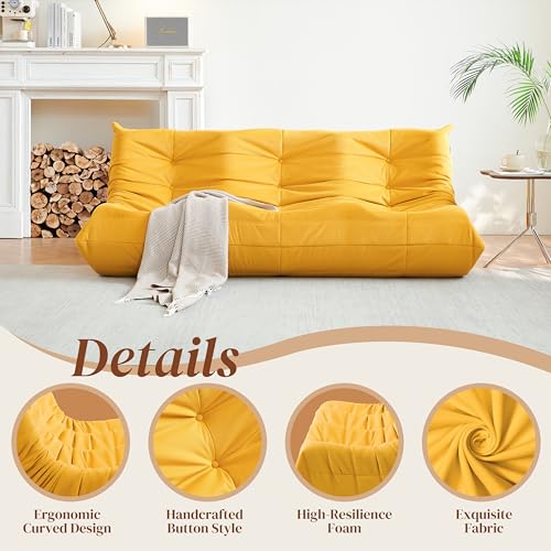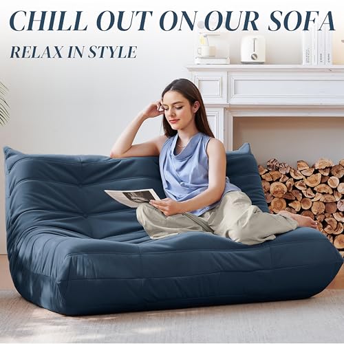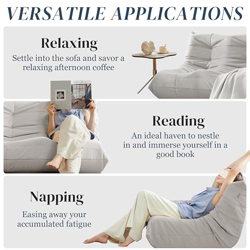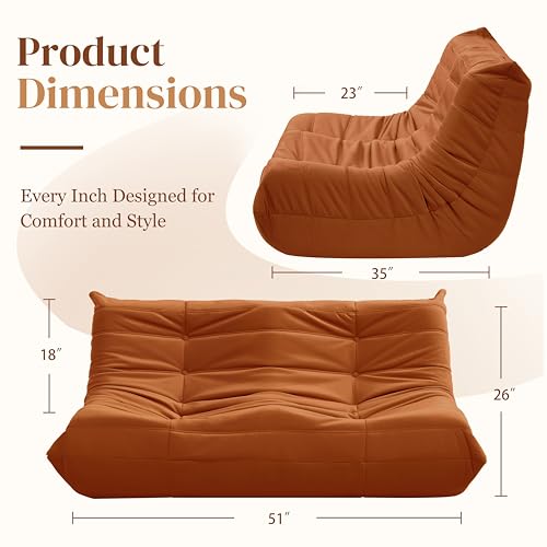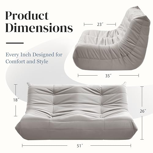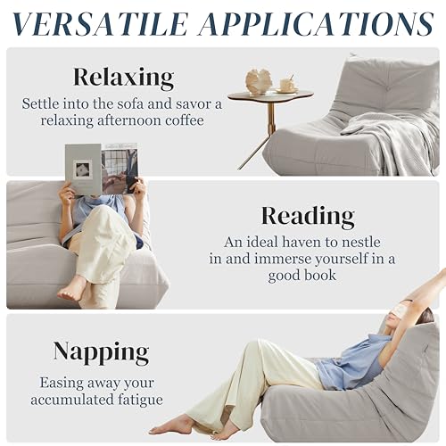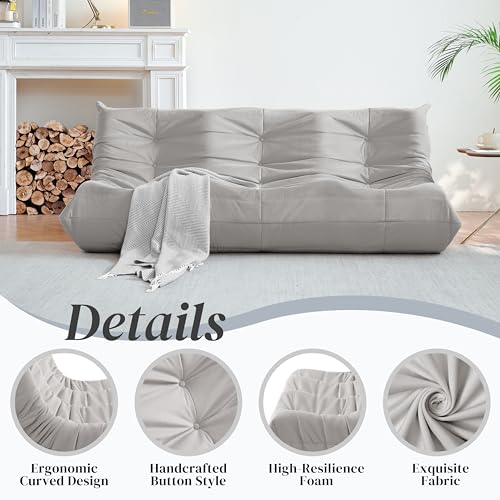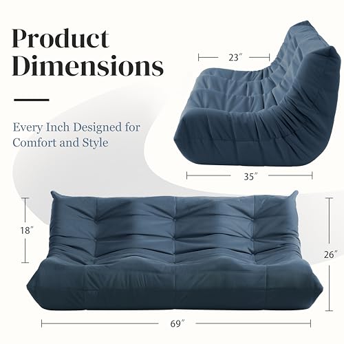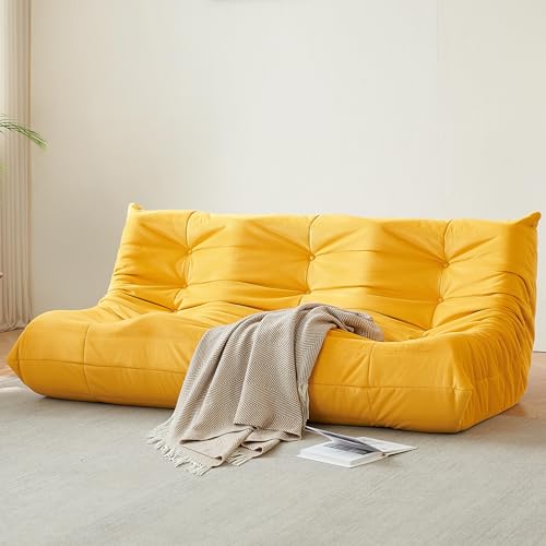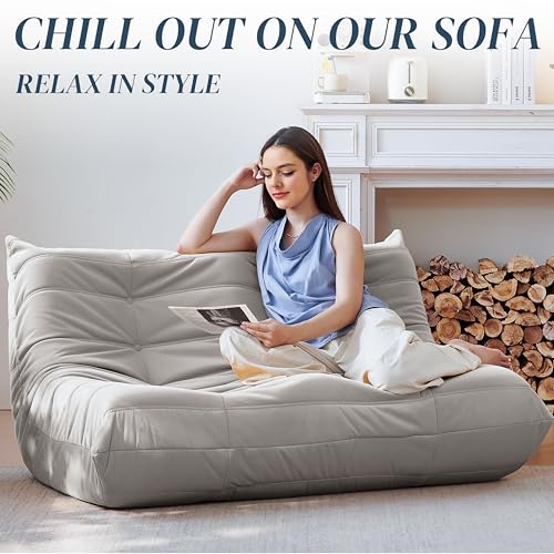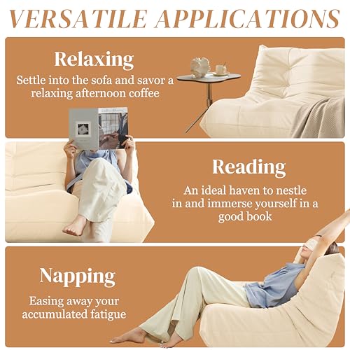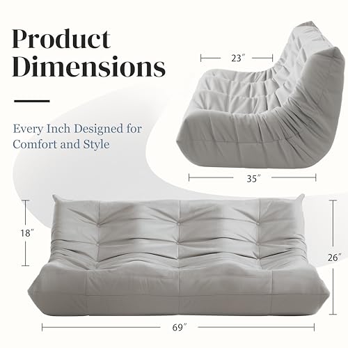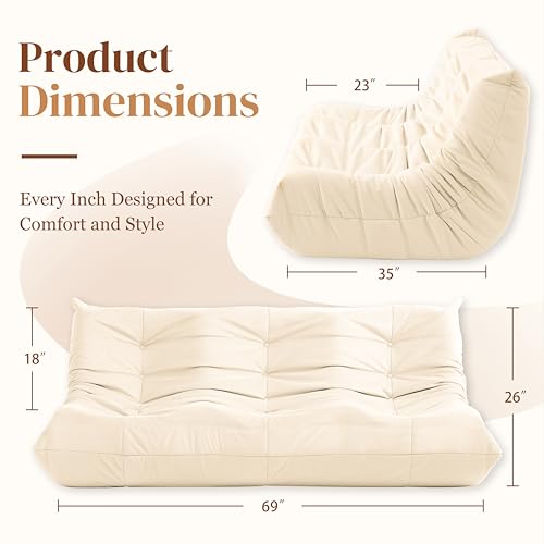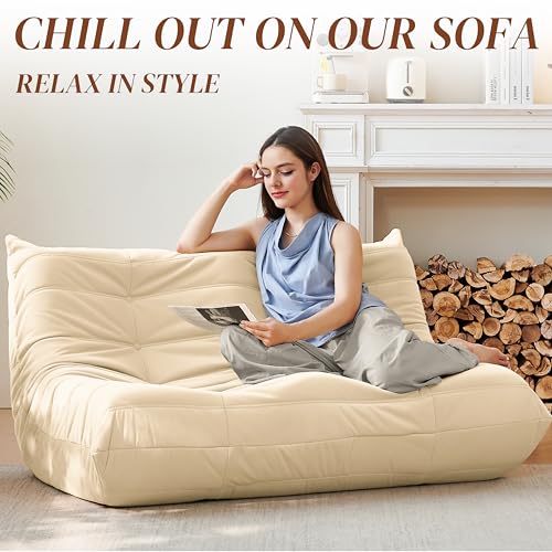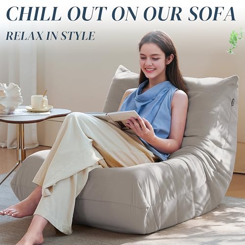 Bean Bag Chair for Adults - Suede & Microfiber Fireside Floor Chair, Comfortable Corner Lounge Sofa for Living Room, Bedroom, Office (3-Seater, Beige)