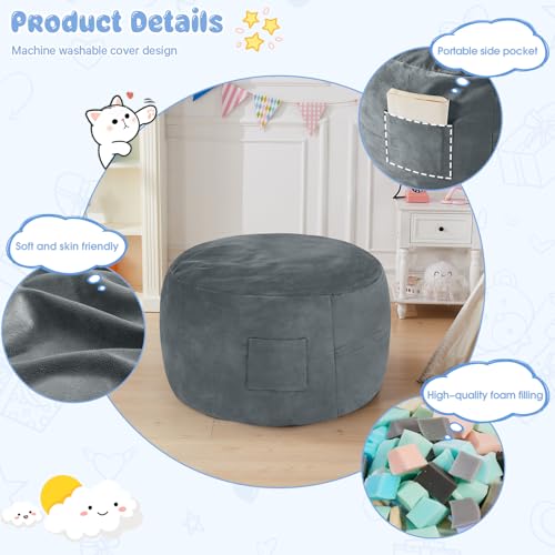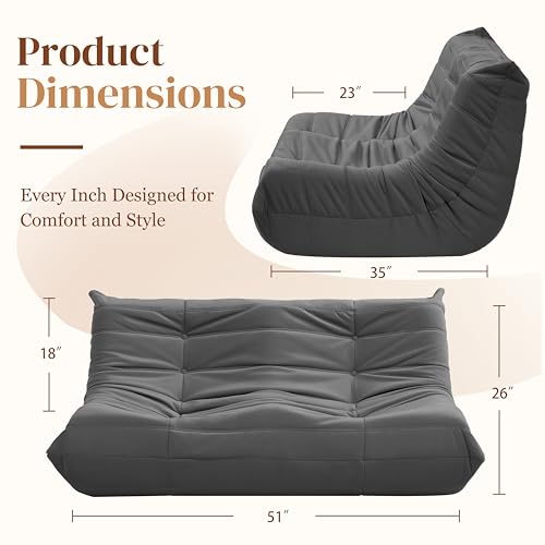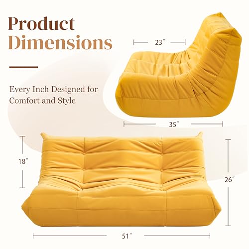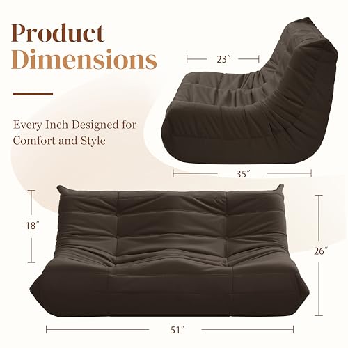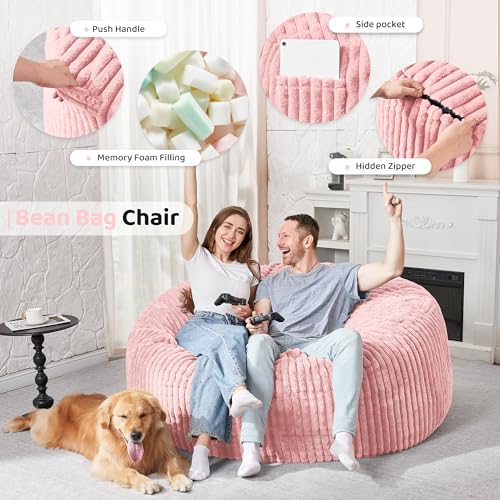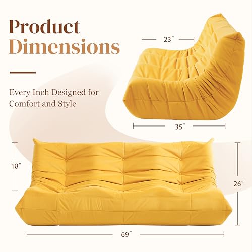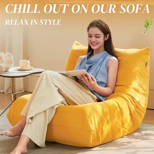 MAXYOYO Bean Bag Chair, Floor Sofa with Handle, Bean Bag Chairs for Adults and Kids, Teens Living Room Bean Bag, Accent Sofa Chair with Pocket for Gaming Reading Relaxing