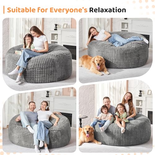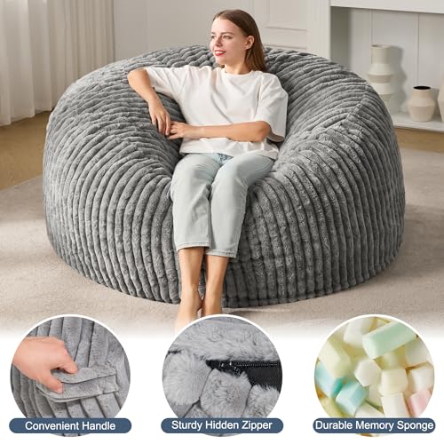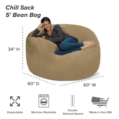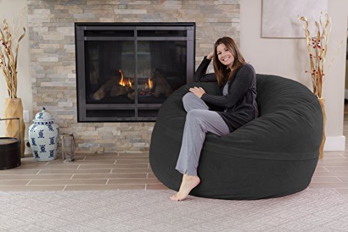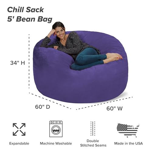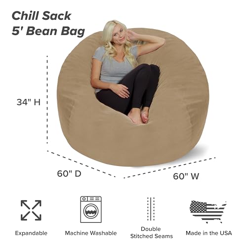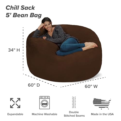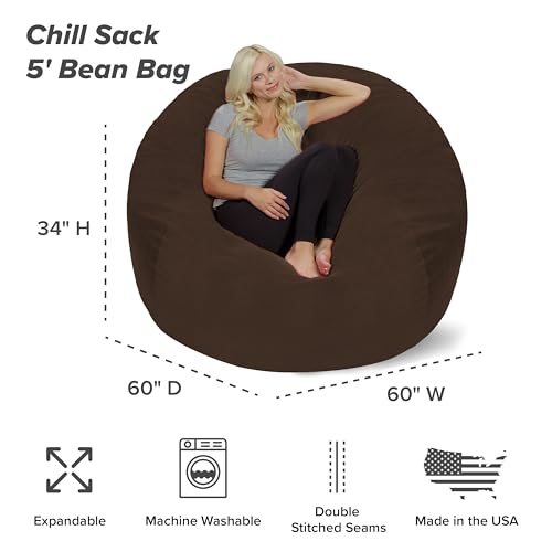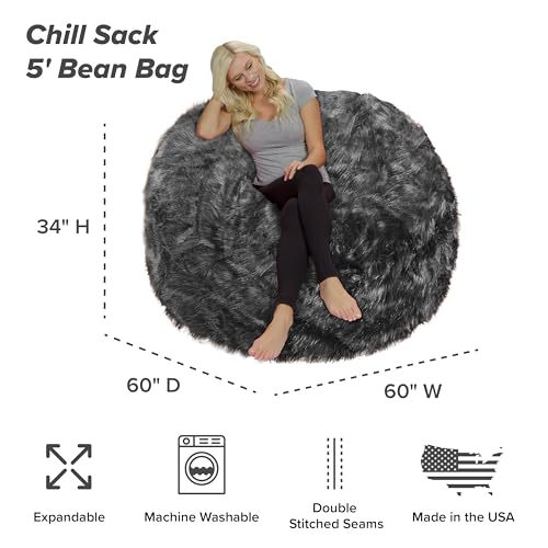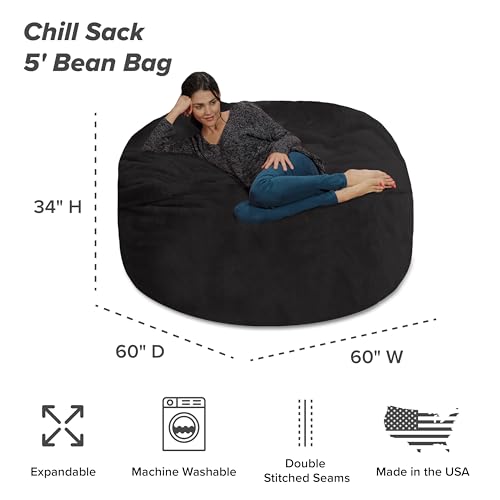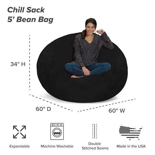 Chill Sack Bean Bag Chair - 5' Giant Memory Foam Lounge Chair with Soft Microfiber Cover – Cozy Furniture for Living Room, Dorm, & Kids' Rooms – Comfortable 5 Ft, Microsuede Lounge Sofa, Charcoal