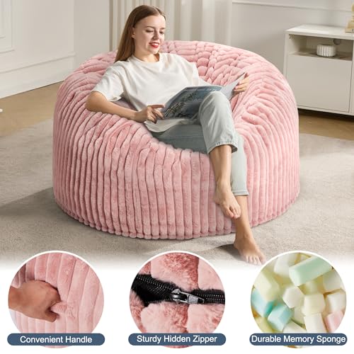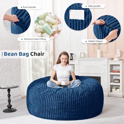 Bean Bag Chair 3Ft Luxurious Faux Rabbit Fur Memory Foam Bean Bag Chairs for Adults/Teens with Filling,Ultra Soft Faux Fur Fabric, Round Fluffy Sofa for Living Room Bedroom College Dorm (Blue)