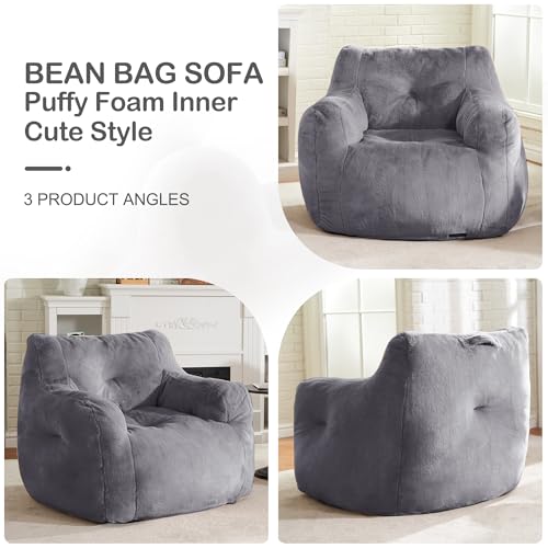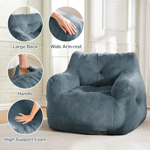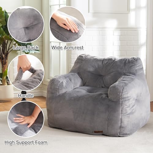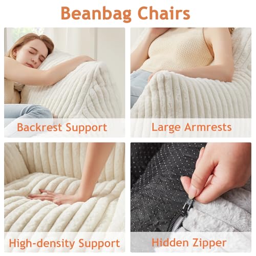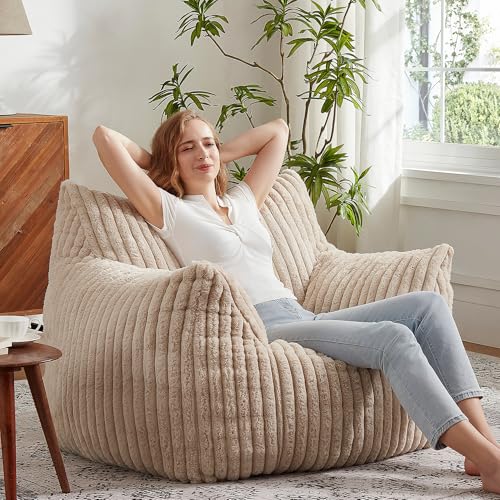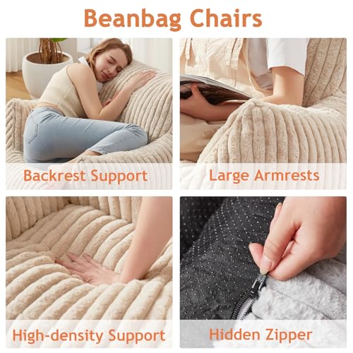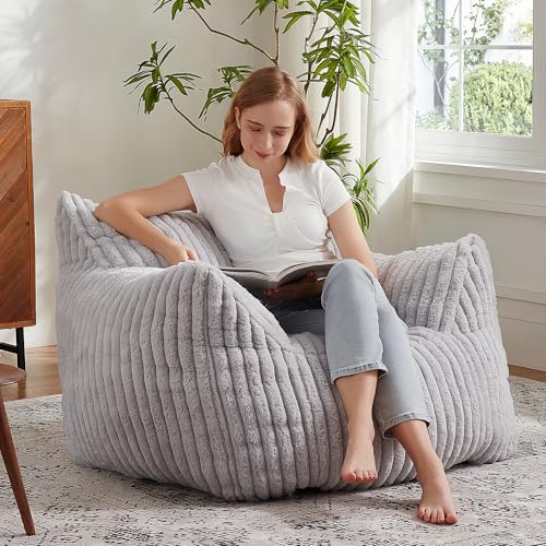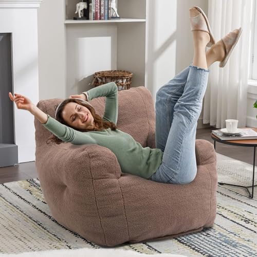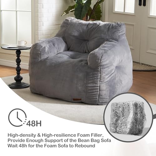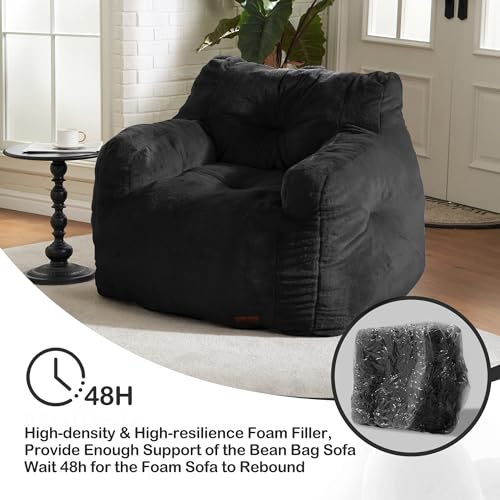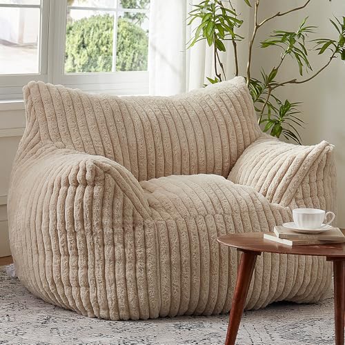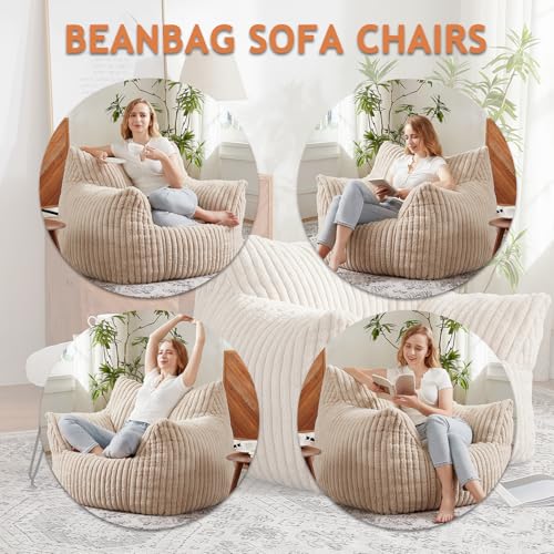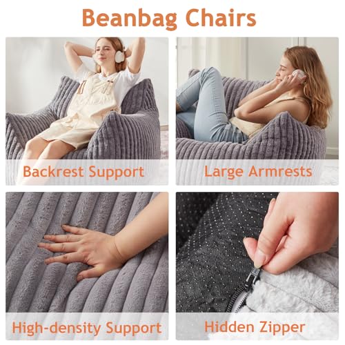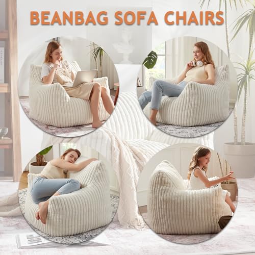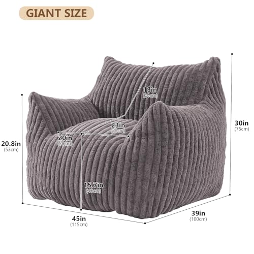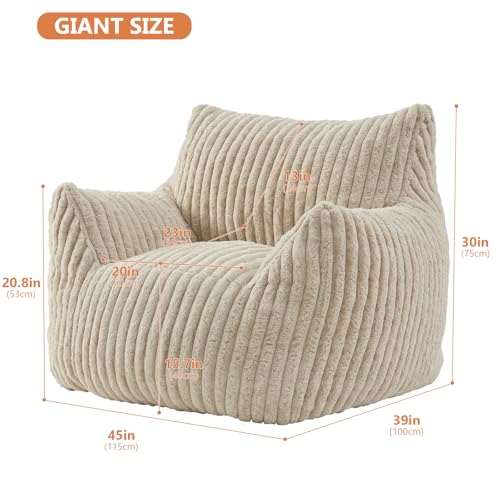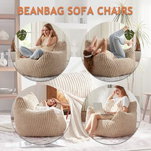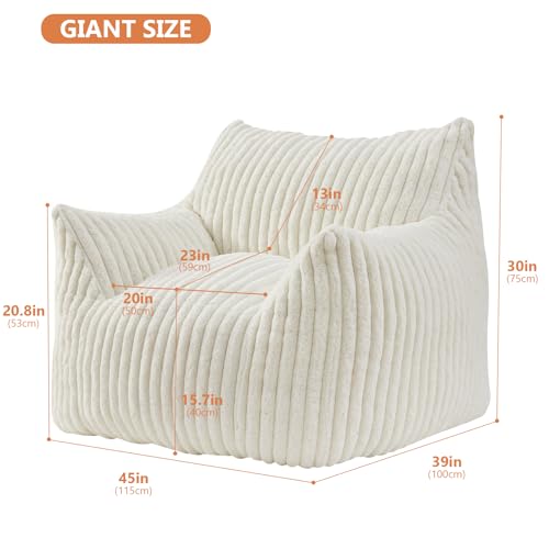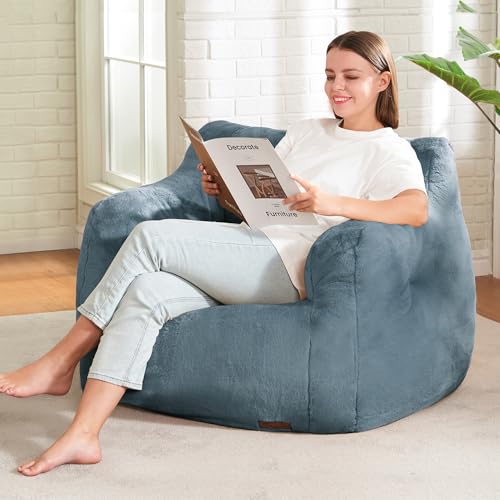 Giant Bean Bag Chairs for Adults with Filling Plush Fluffy Bean Bag Chairs for Teens with Armrests Comfy BeanBag Lazy Couch Sofa Chair for Bedroom Living Room Reading