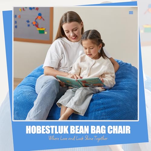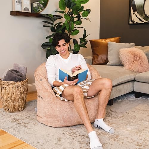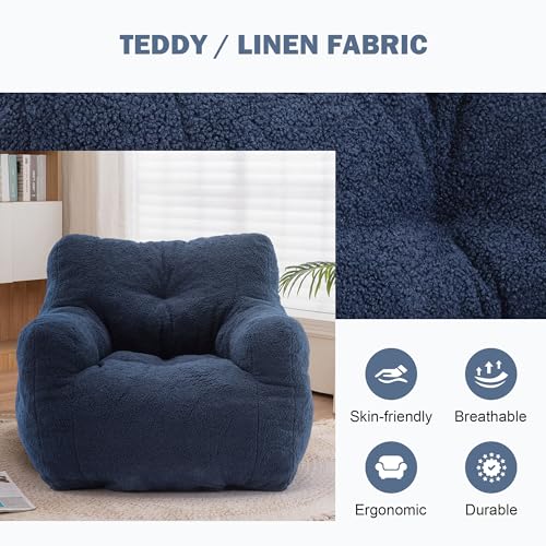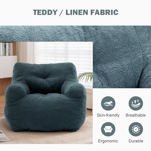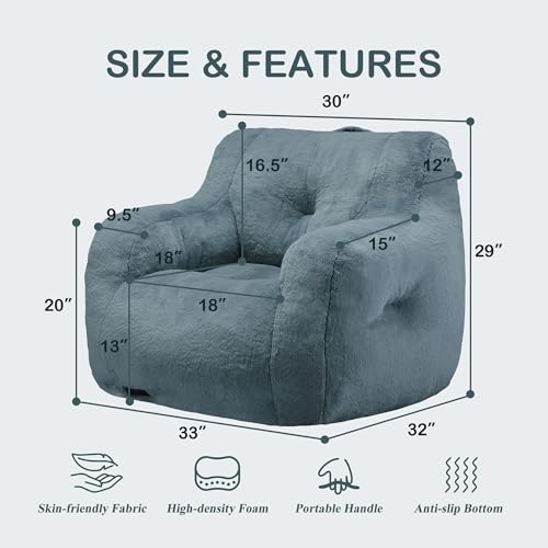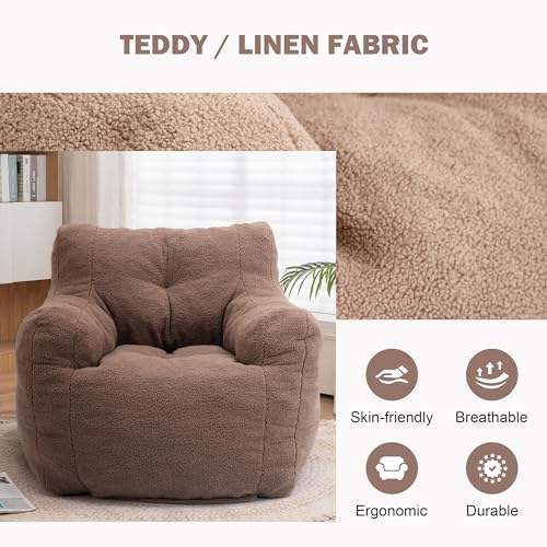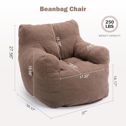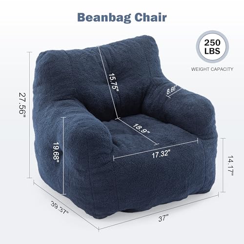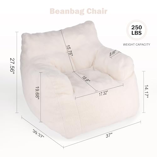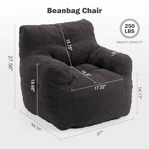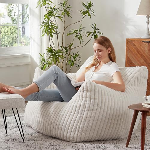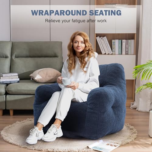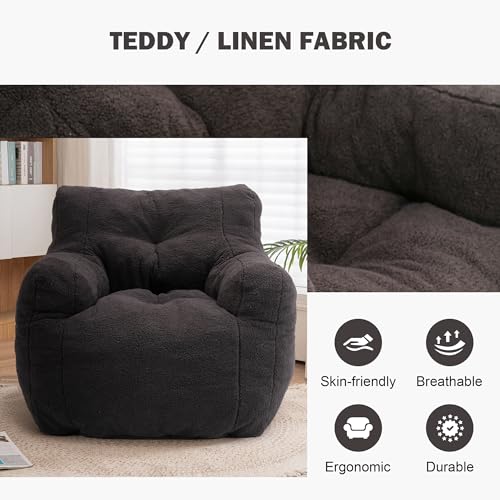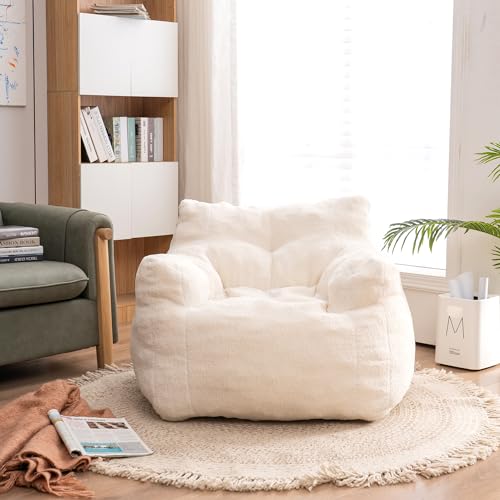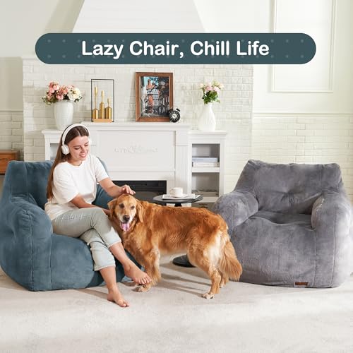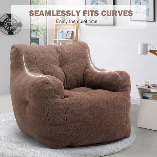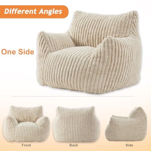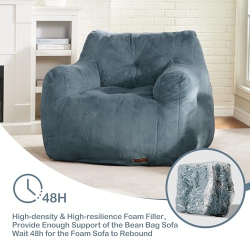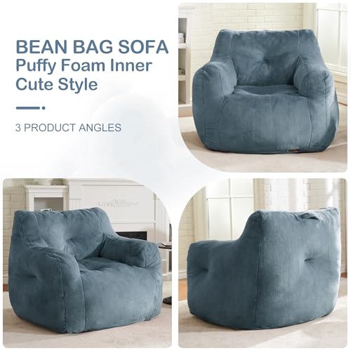 Giant Bean Bag Chairs for Adults with Filling Plush Fluffy Bean Bag Chairs for Teens with Armrests Comfy BeanBag Lazy Couch Sofa Chair for Bedroom Living Room Reading
