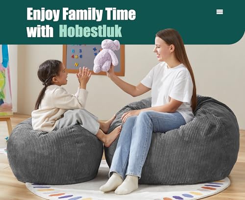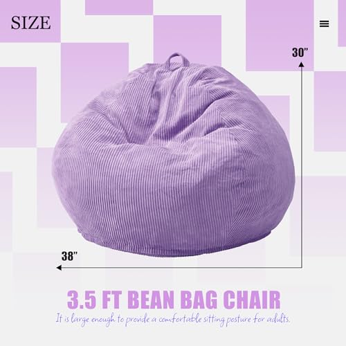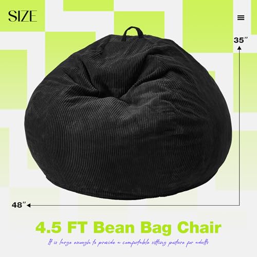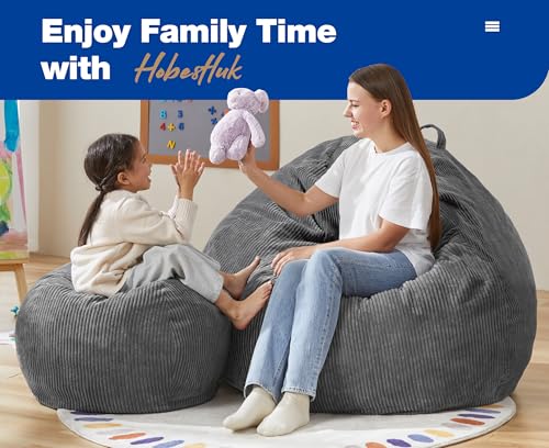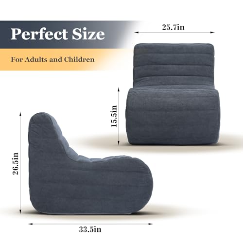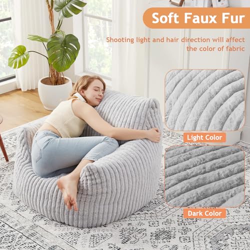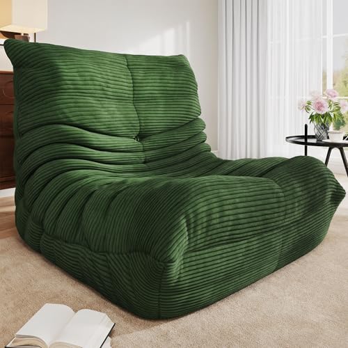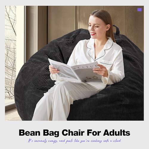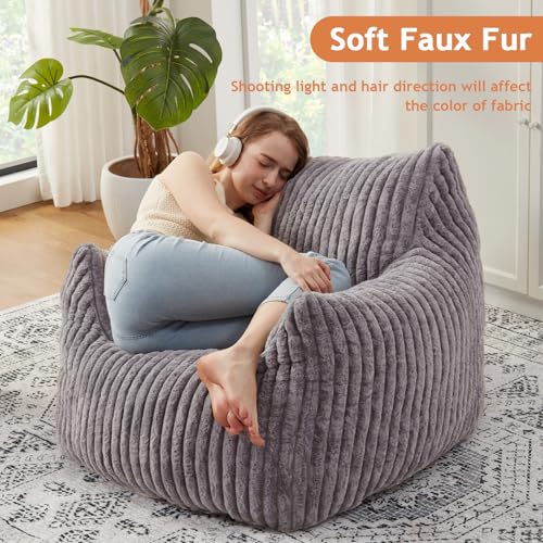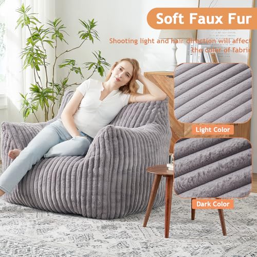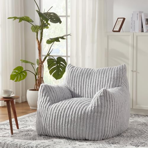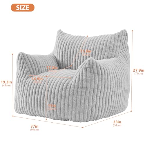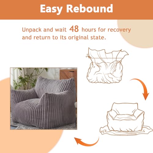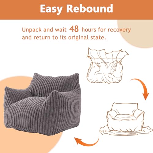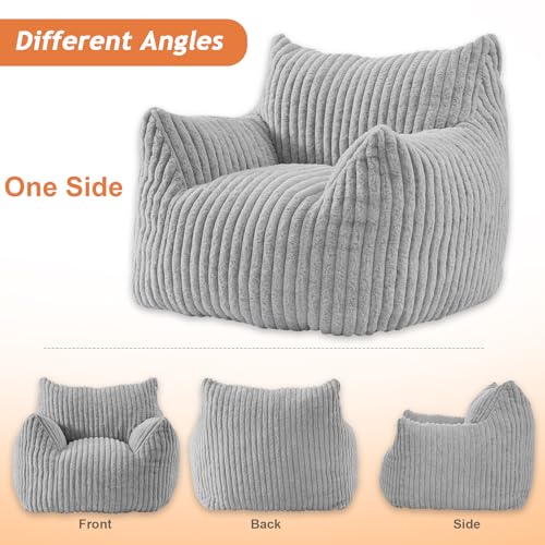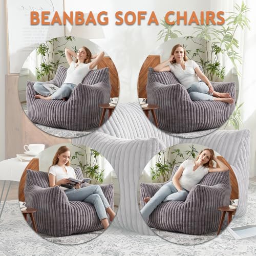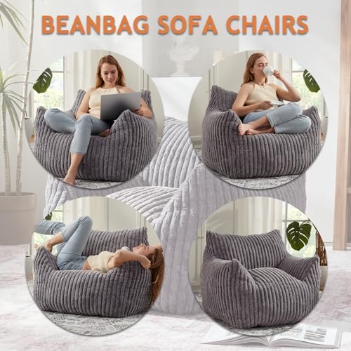 YITAHOME Bean Bag Chairs for Adults, Giant Lazy Floor Sofa with Memory Foam, Comfy Cordury Fireside Chair Beanbags for Living Room Apartment Dorm Office, Grey