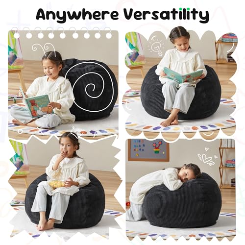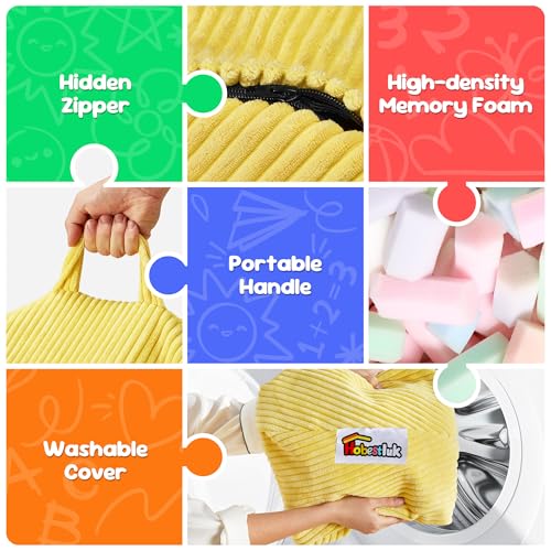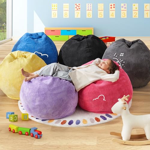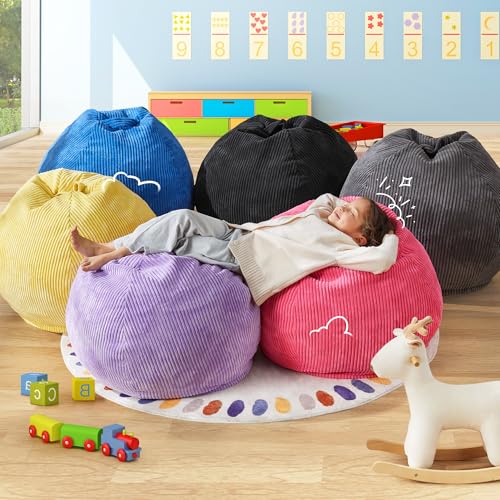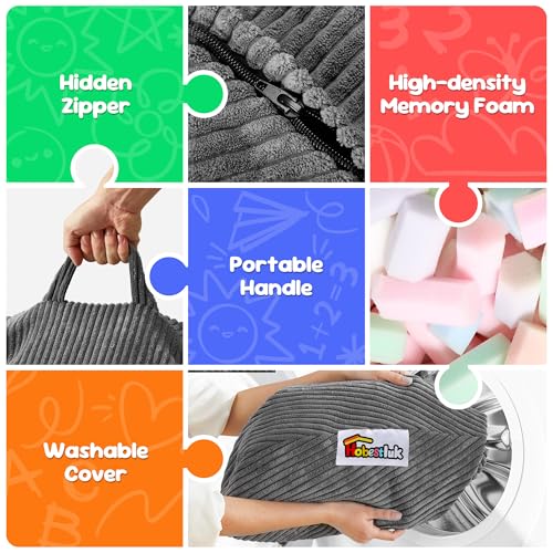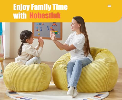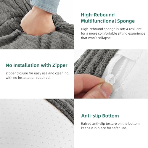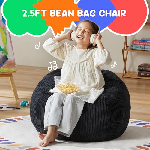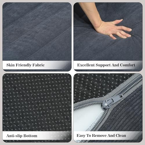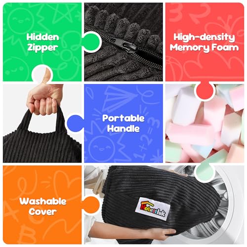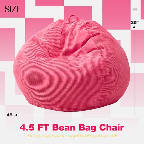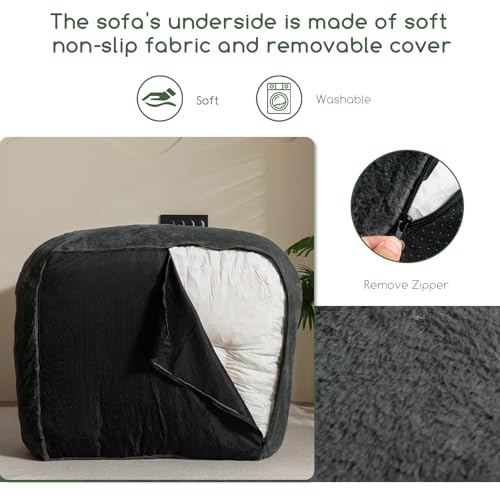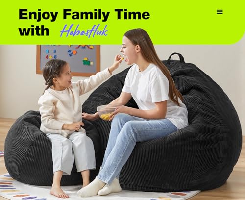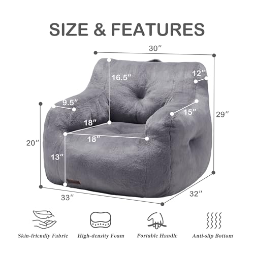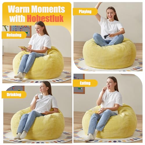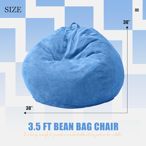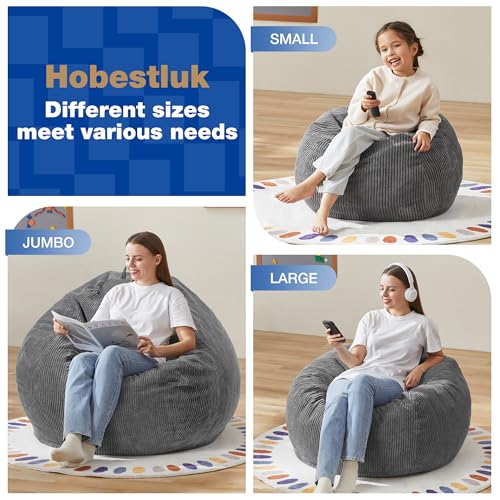 YITAHOME Bean Bag Chairs for Adults, Giant Lazy Floor Sofa with Memory Foam, Comfy Cordury Fireside Chair Beanbags for Living Room Apartment Dorm Office, Grey