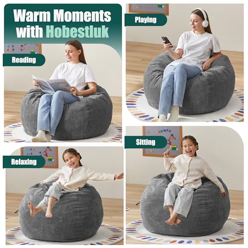 Hobestluk 3.5FT Bean Bag Chair Large Bean Bag with Filler Included Bean Bag Chairs for Adults Teardrop Bean Bag Chair with Removable Cover for Bedroom Living Room - (Large, Grey)