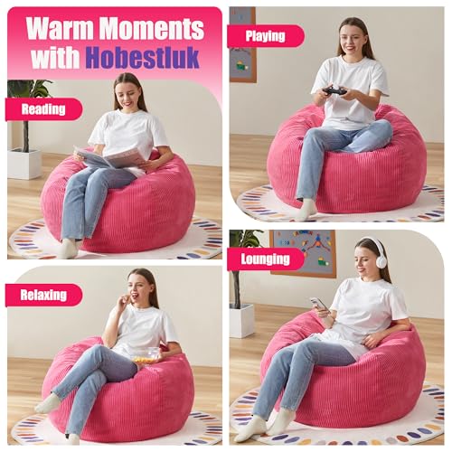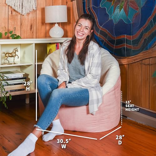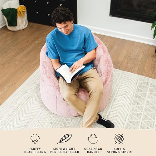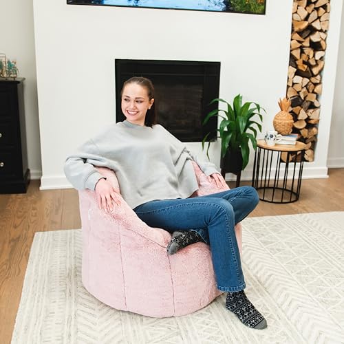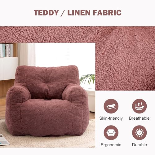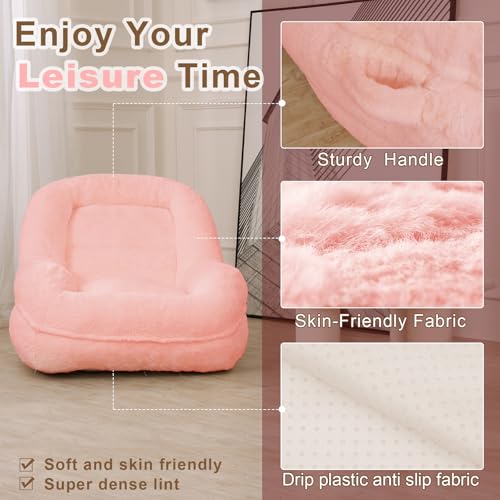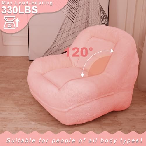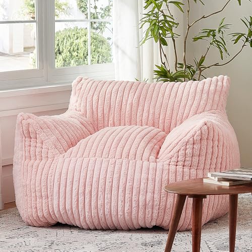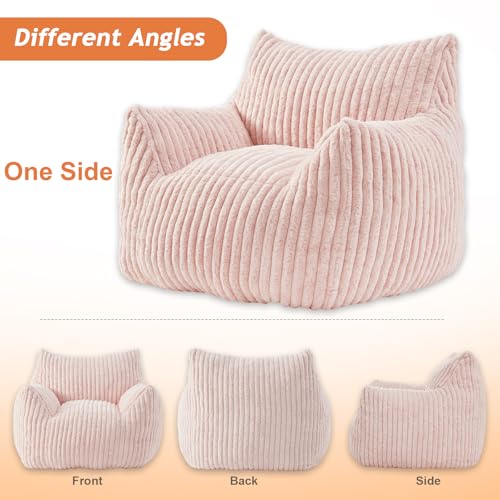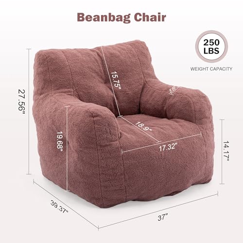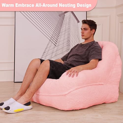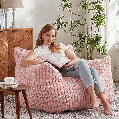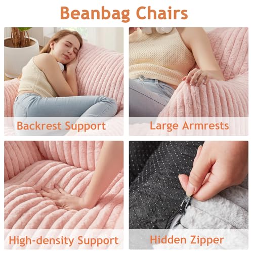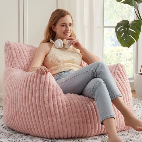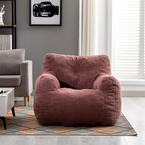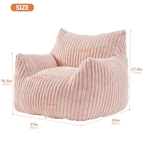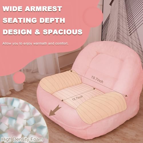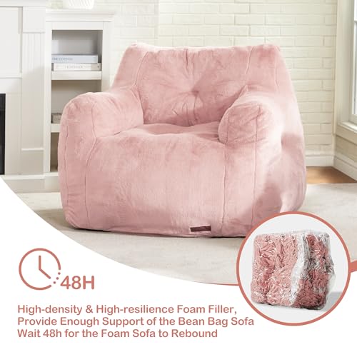 Hobestluk Bean Bag Chair for Adult Small Bean Bag Chairs with Arms Furry Beanbag Chair with Foam Filler Stuffed Bean Bag Sofa for Reading in Bedroom Living Room and Dorms(Pink)