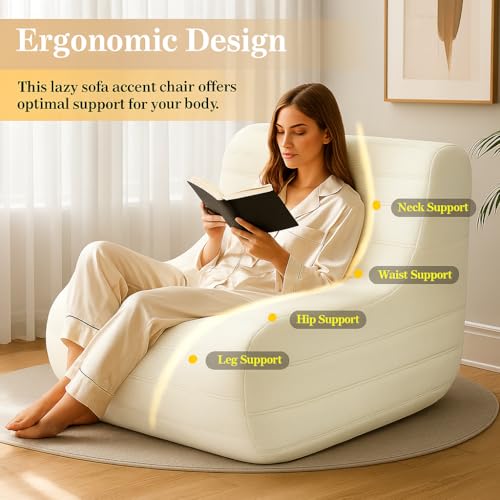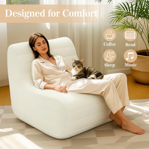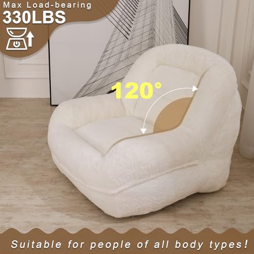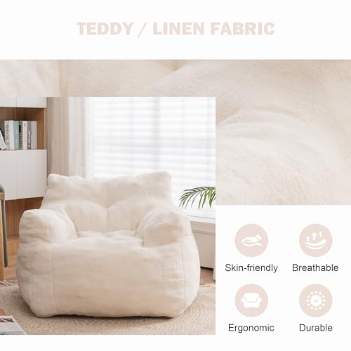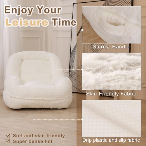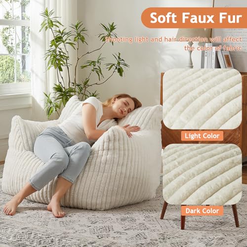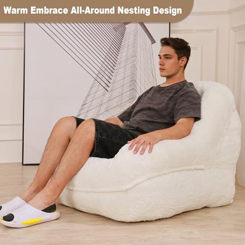 Bean Bag Chair, Fireside Bean Bags Lazy Sofa Sack, Big Beanbag Chair Floor Couch, Memory Foam Lounge Chair for Bedroom, Living Room, Office and Home, White