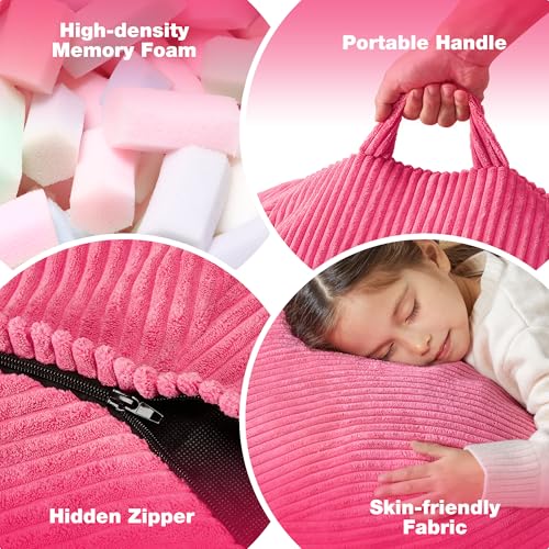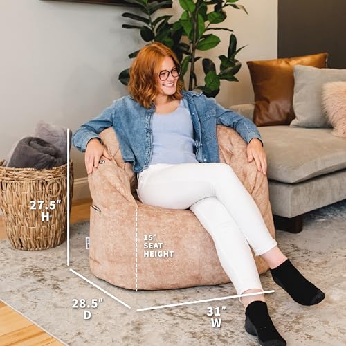 Bean Bag Chair with Armrests - Comfy Bean Bag Couch for Adults, Premium Plush Fabrics and High-Density Foam Filling, Designed Lounge Sofa for Living Room, Bedroom, and Gaming Room (Pink)