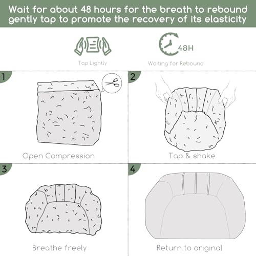 Bean Bag Chair for Adults Kids Oversize Giant Beanbag Chair Cover Without Filler Round Fluffy Comfortable Big Bean Bag Couch Chairs for Bedroom Lounge Large Sofa Sitting Chair,6FT Light Grey