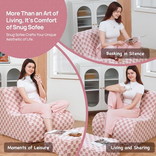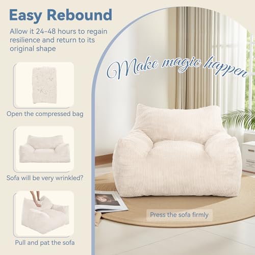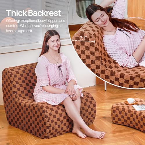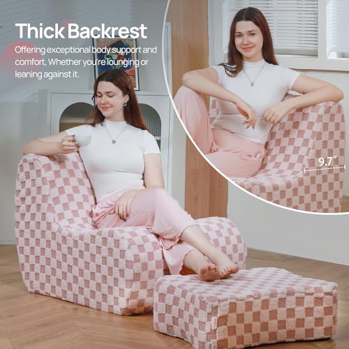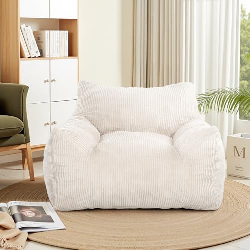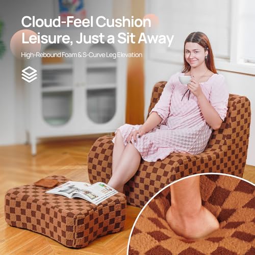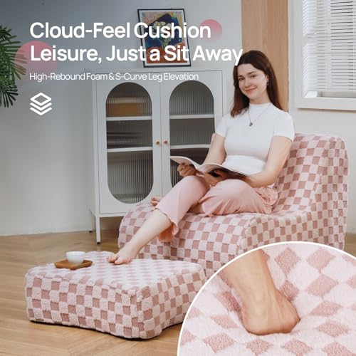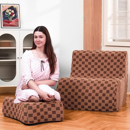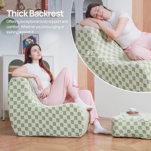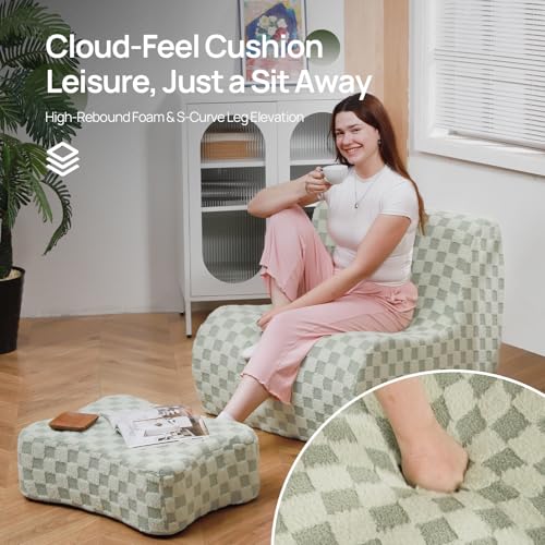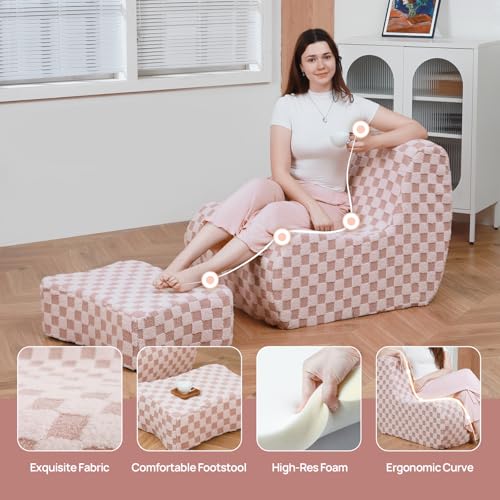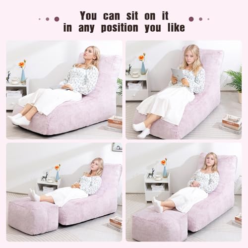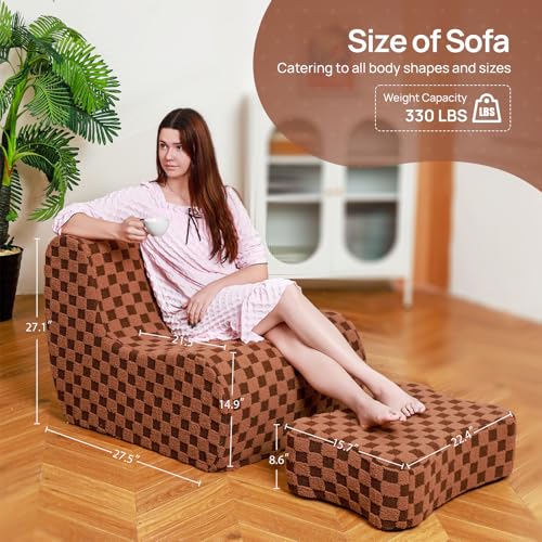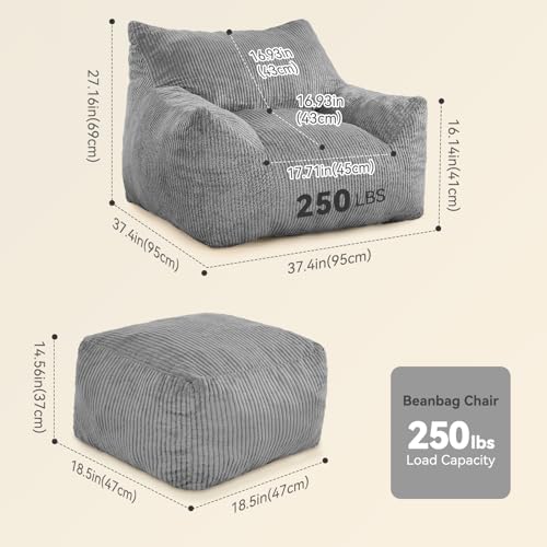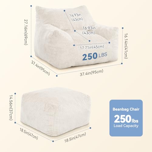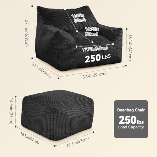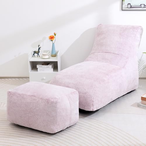 Bean Bag Chair with Ottoman, Comfy Bean Bag Sofa with Memory Foam, Lazy BeanBag Sofa with Footstool, Fireside Bean Bag Couch for Living Room, Bedroom, Apartment