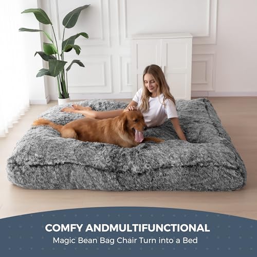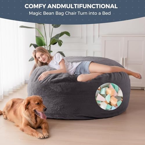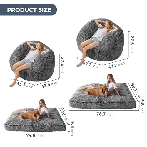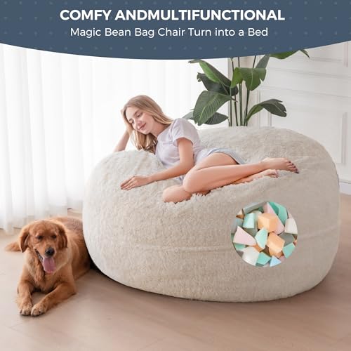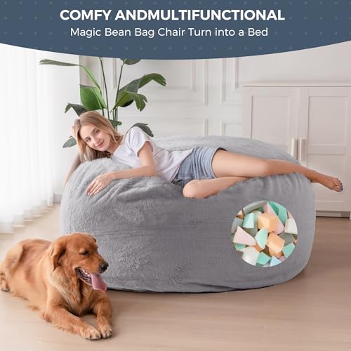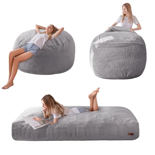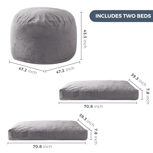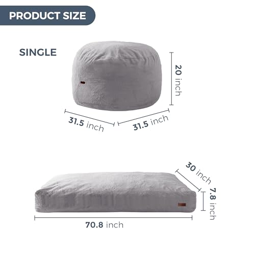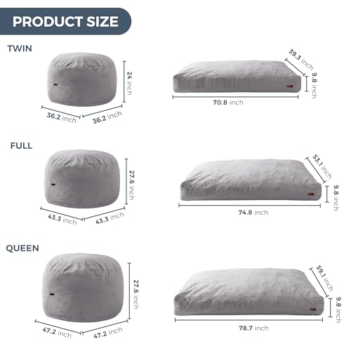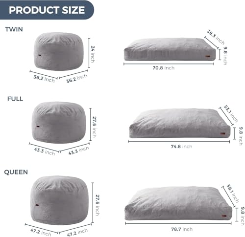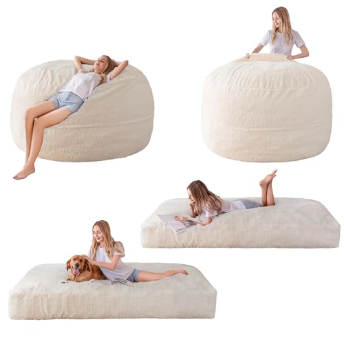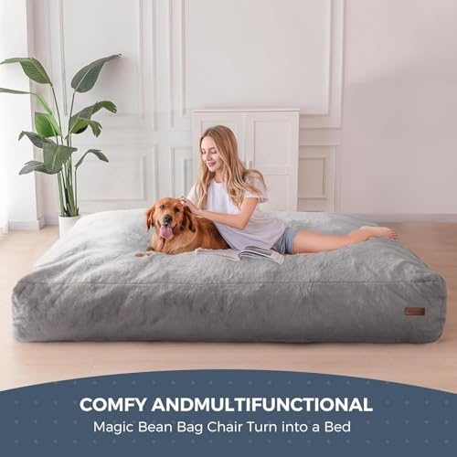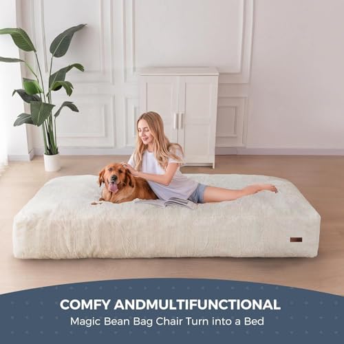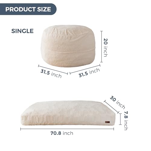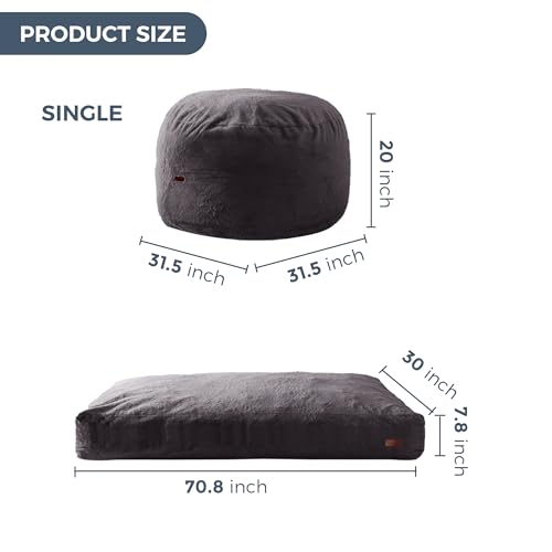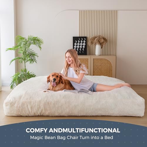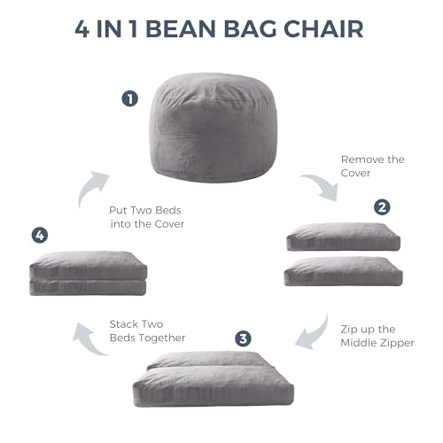 MAXYOYO Giant Bean Bag Chair Bed for Adults, Convertible Beanbag Folds from Lazy Chair to Floor Mattress Bed, Large Floor Sofa Couch, Big Sofa Bed, High-Density Foam Filling, Machine Washable