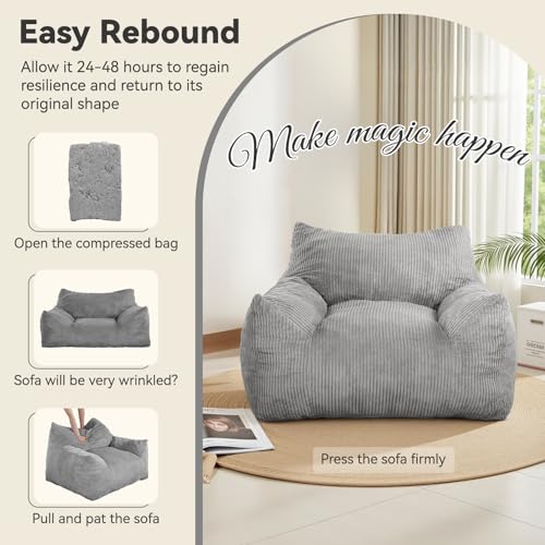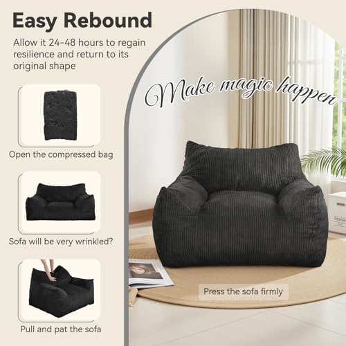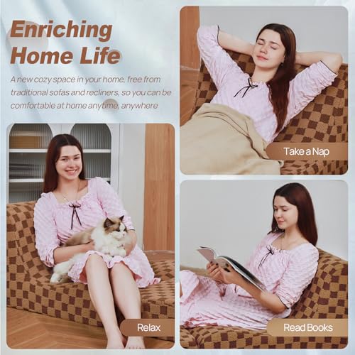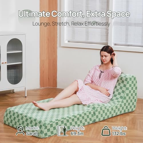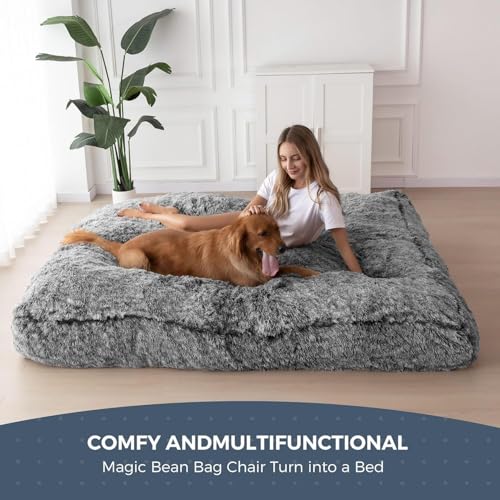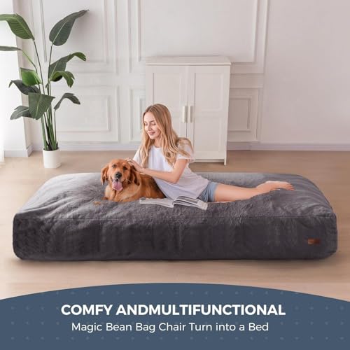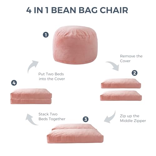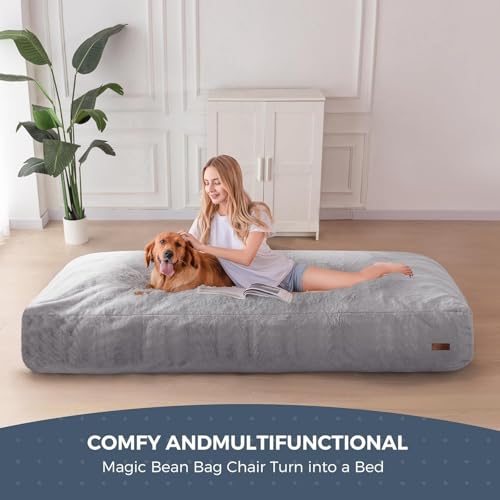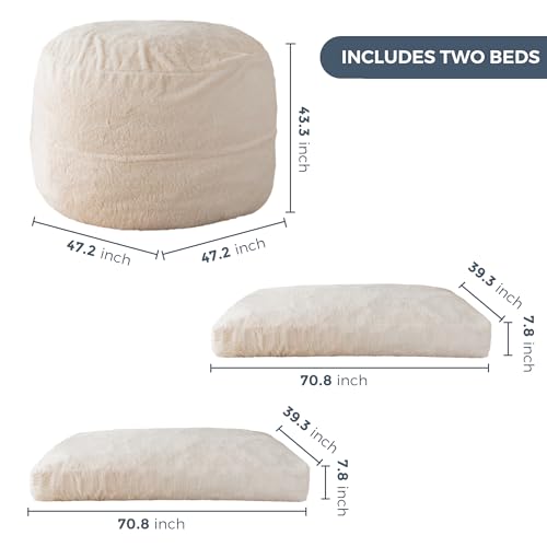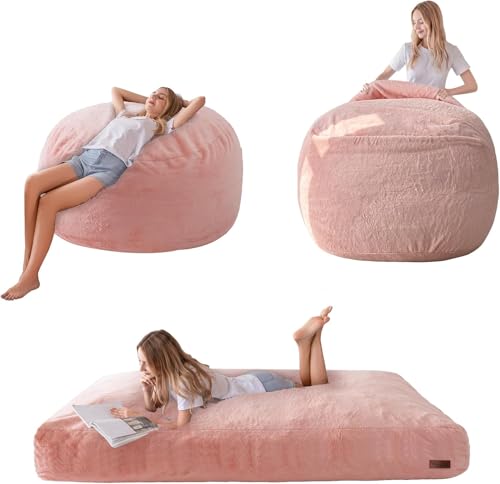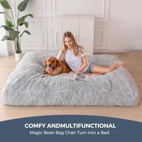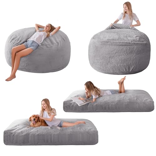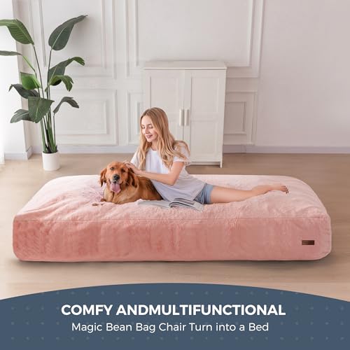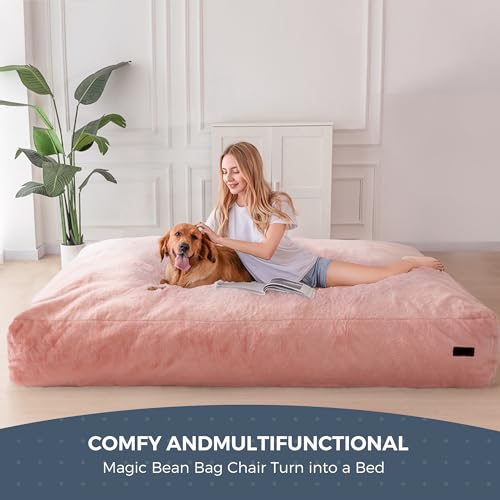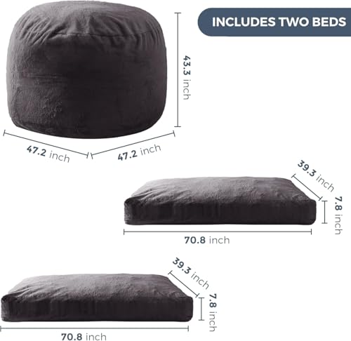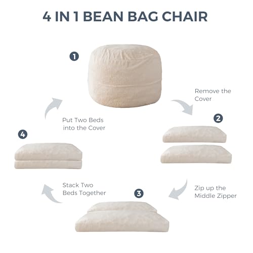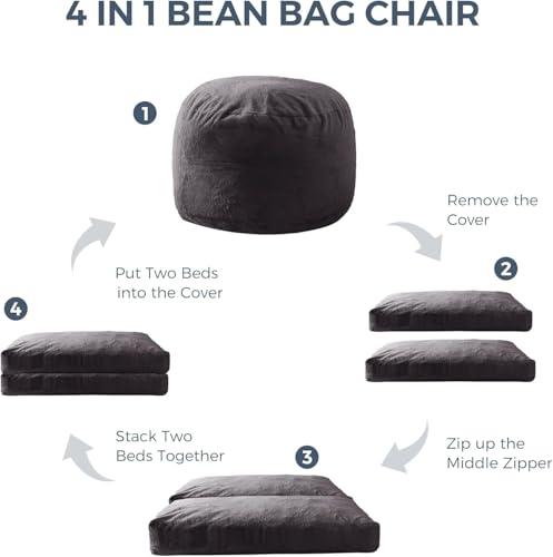 MAXYOYO Giant Bean Bag Chair Bed for Adults, Convertible Beanbag Folds from Lazy Chair to Floor Mattress Bed, Large Floor Sofa Couch, Big Sofa Bed, High-Density Foam Filling, Machine Washable