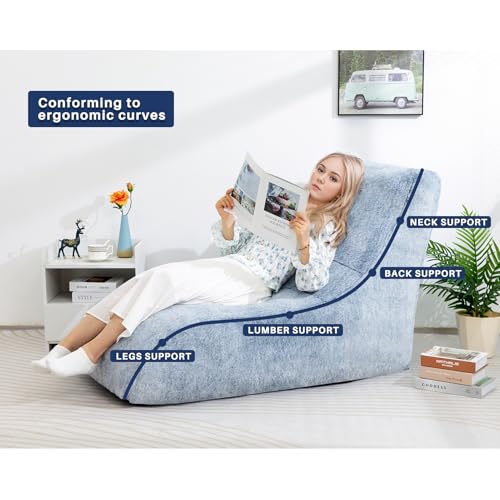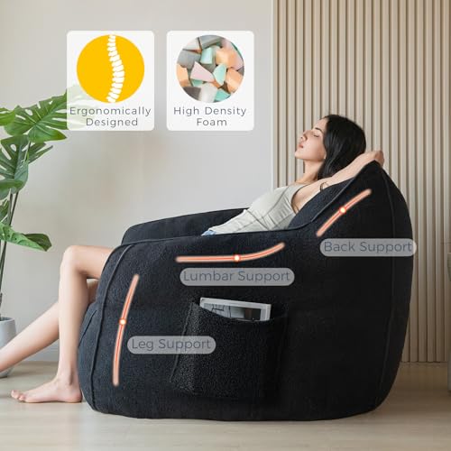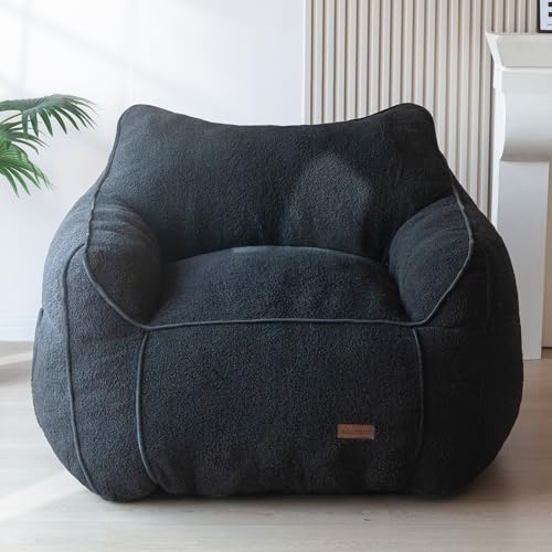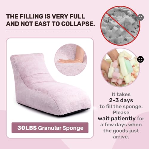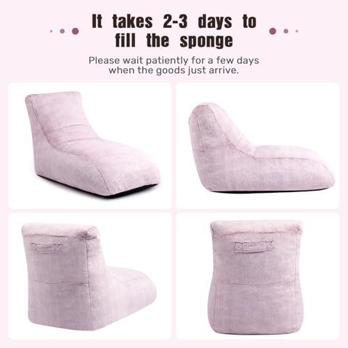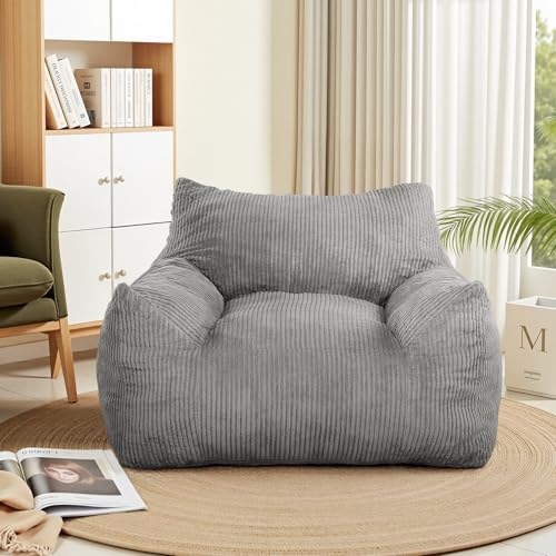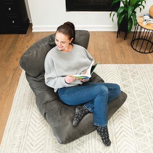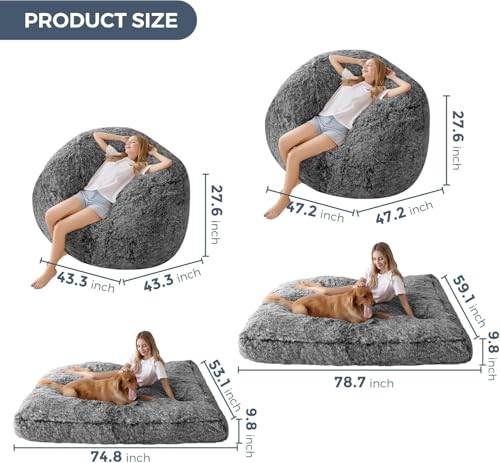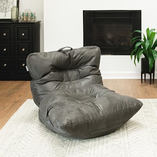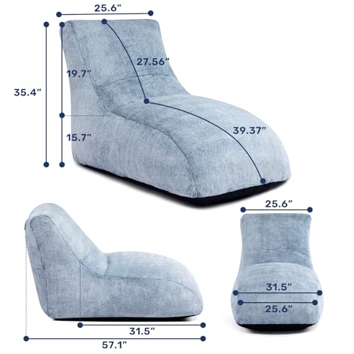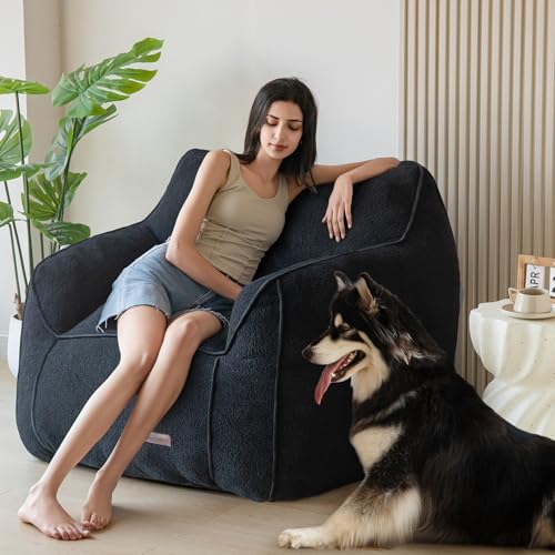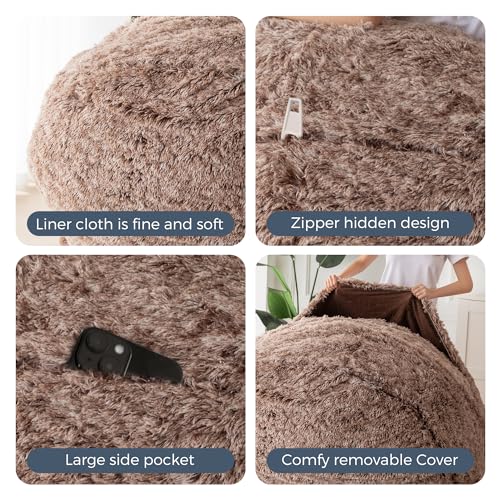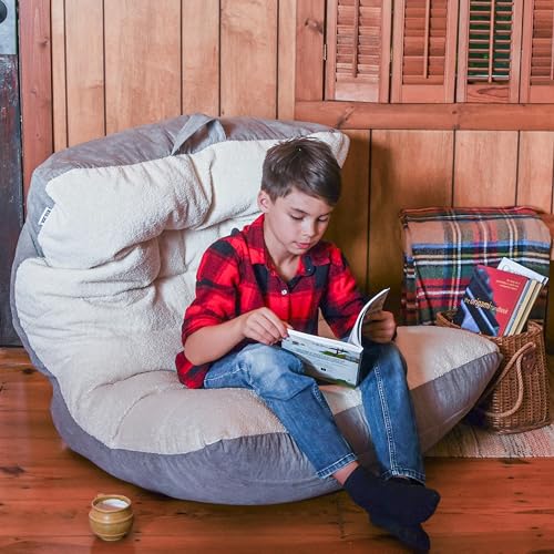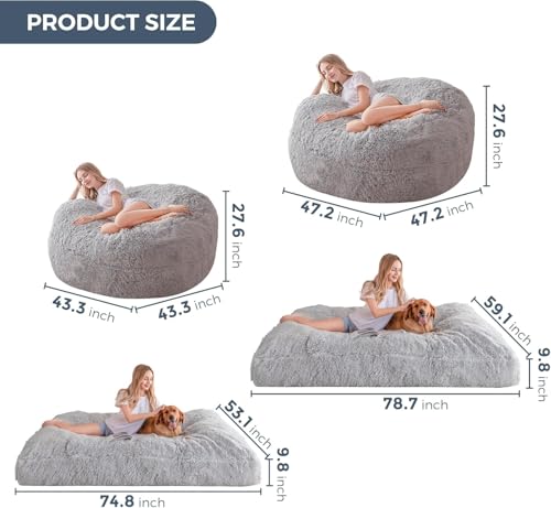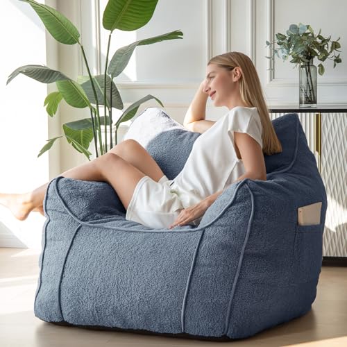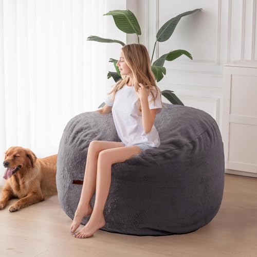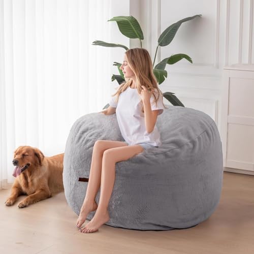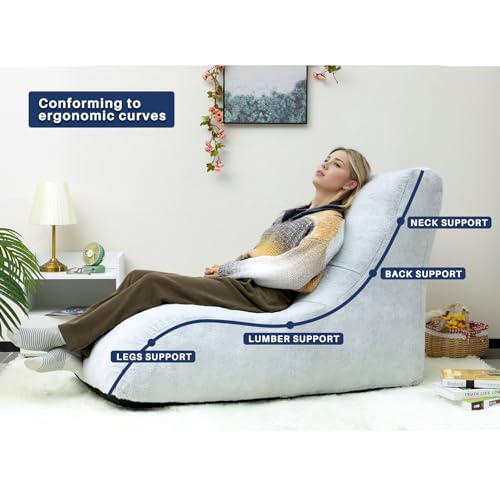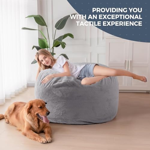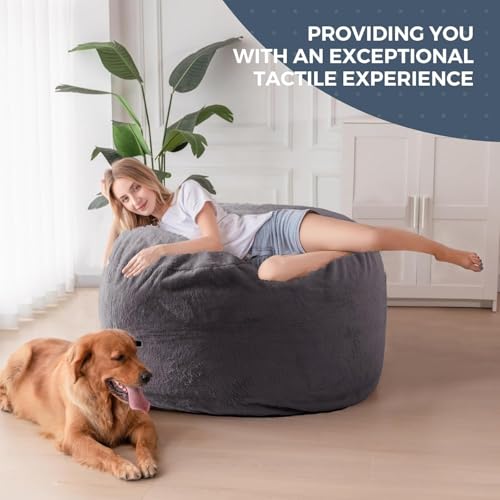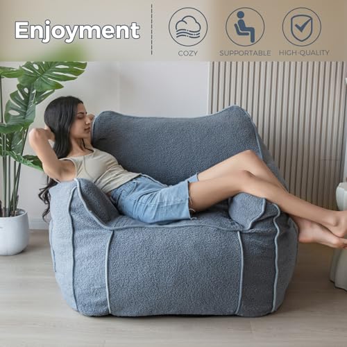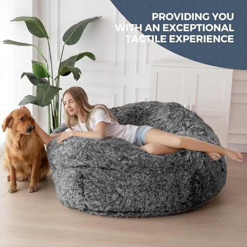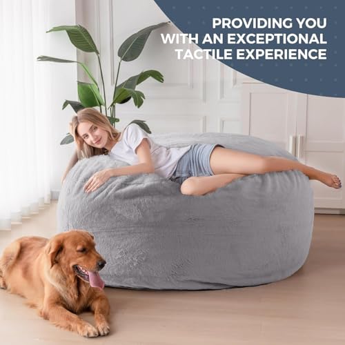 HollyHOME Accent Furry Bean Bag Chair, Extra-Large Zero-Gravity Chaise Lounge Chair for Adults, 30LB Memory Foam Bean Bag Sofa, Reading Lazy Chair for Living Room, Bedroom, Grey