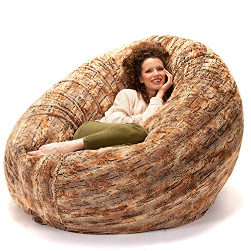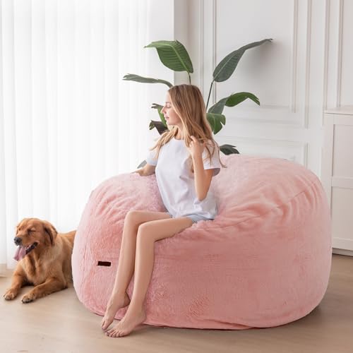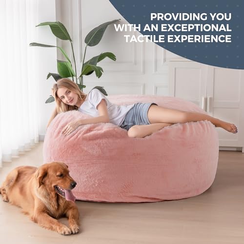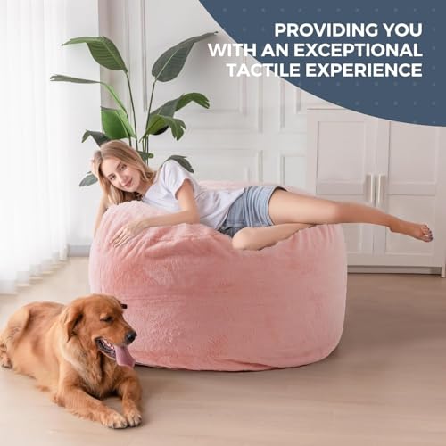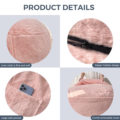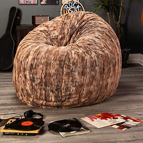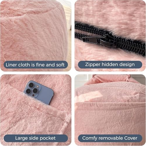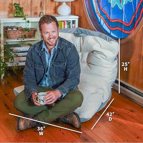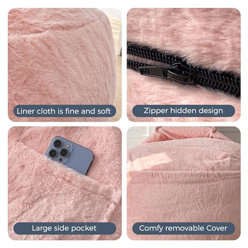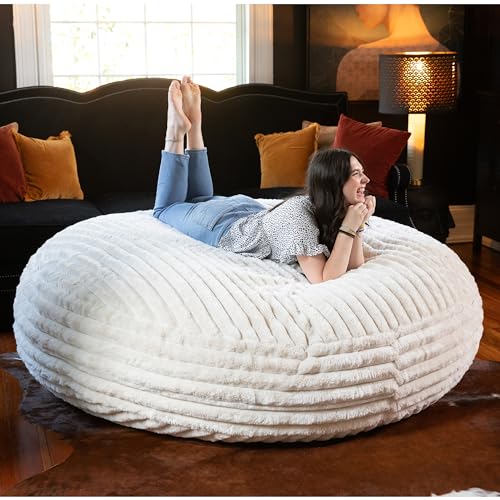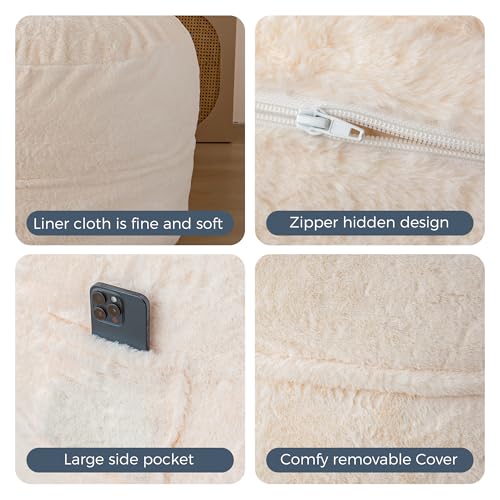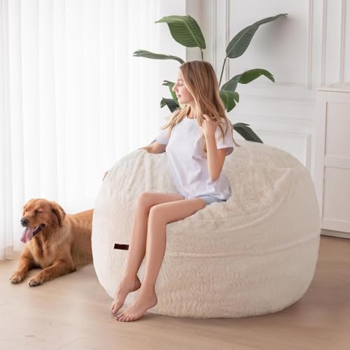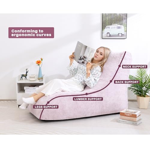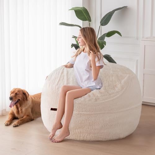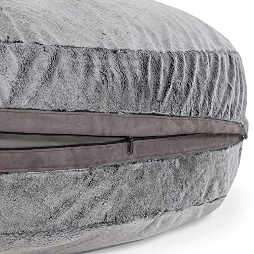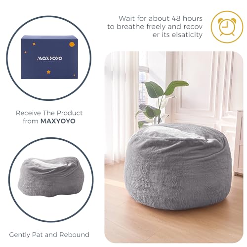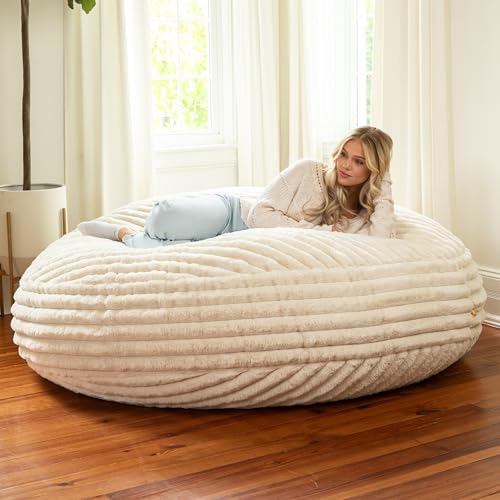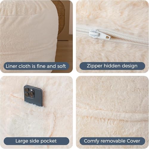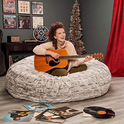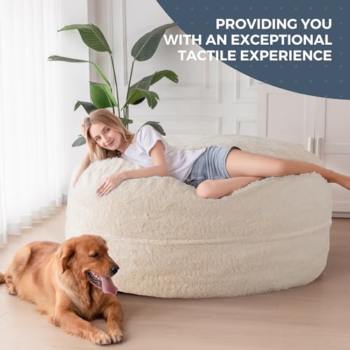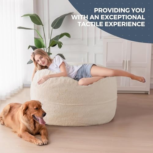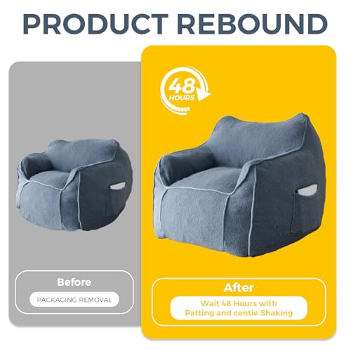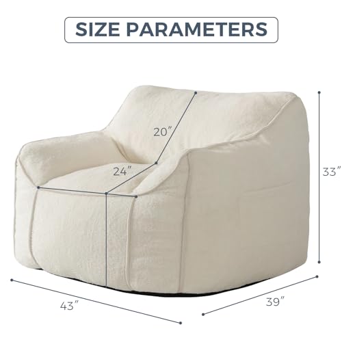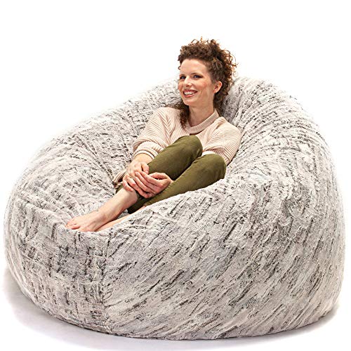 HollyHOME Accent Furry Bean Bag Chair, Extra-Large Zero-Gravity Chaise Lounge Chair for Adults, 30LB Memory Foam Bean Bag Sofa, Reading Lazy Chair for Living Room, Bedroom, Grey