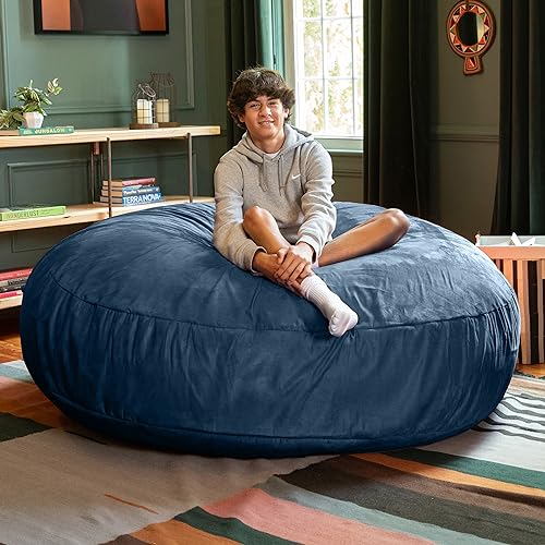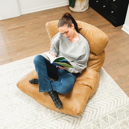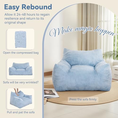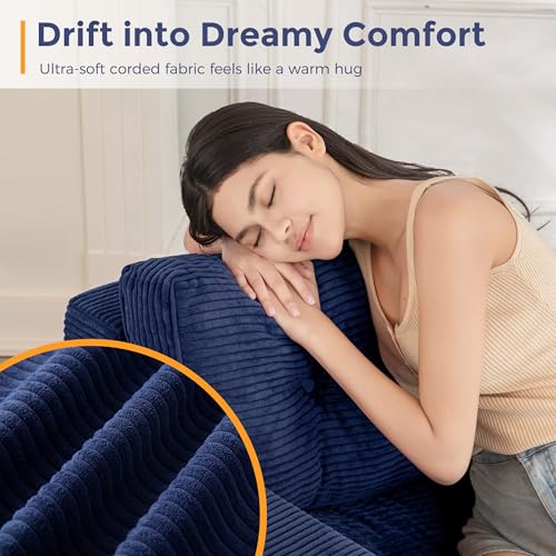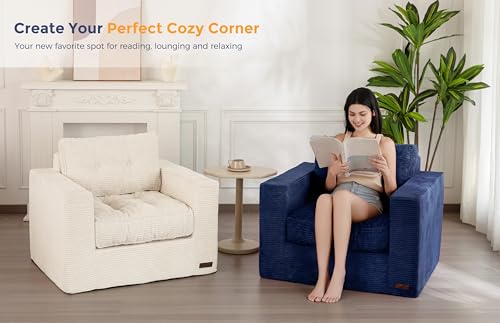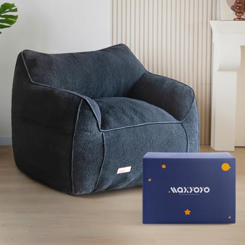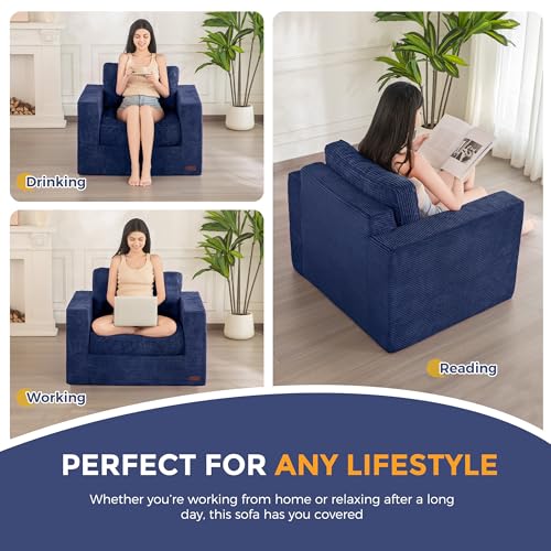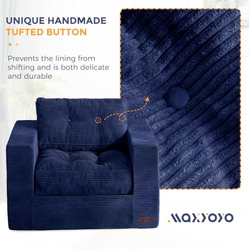 MAXYOYO Living Room Chair for Adults, Upholstered Floor Sofa with Armrests, Boneless Chair with Tufted Cushion & Backrest, Sofa in A Box, Bean Bag Couch for Bedroom Living Room, Dorm, Navy