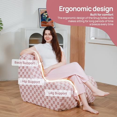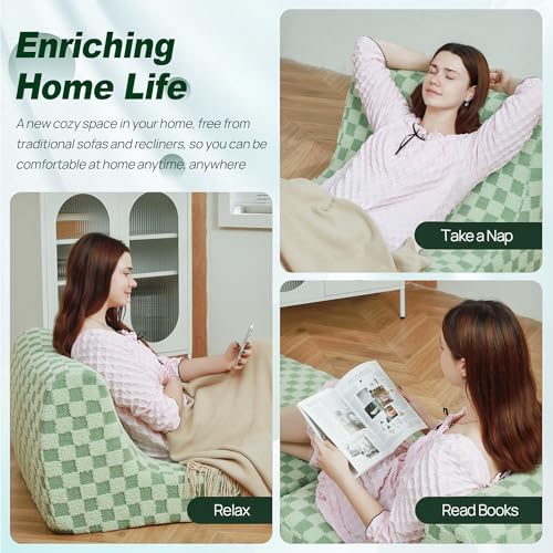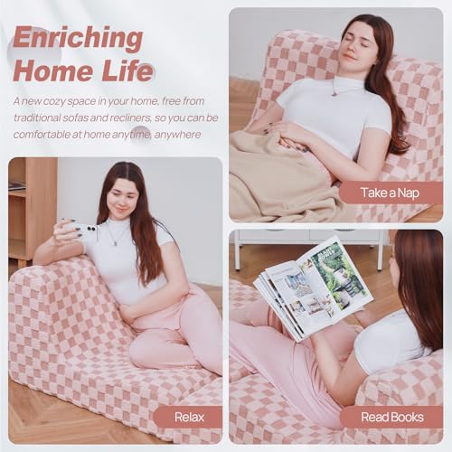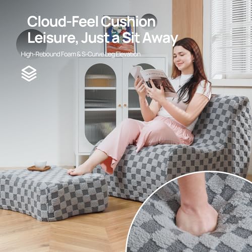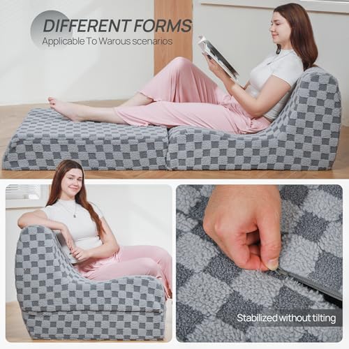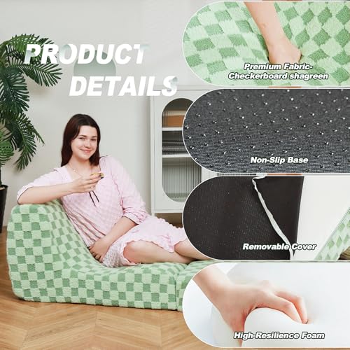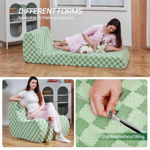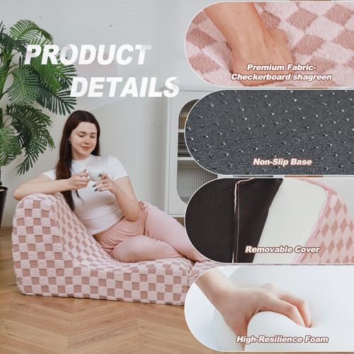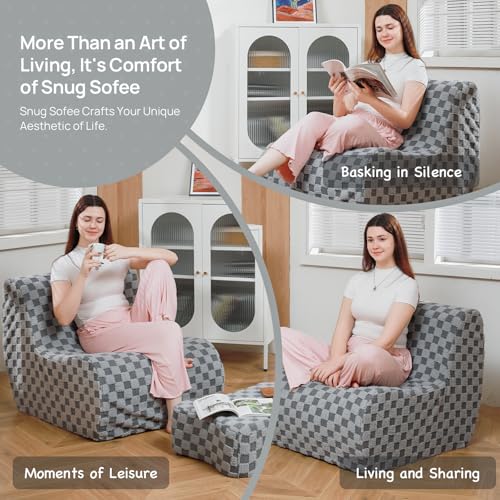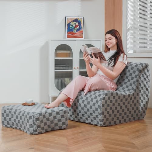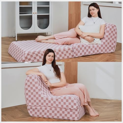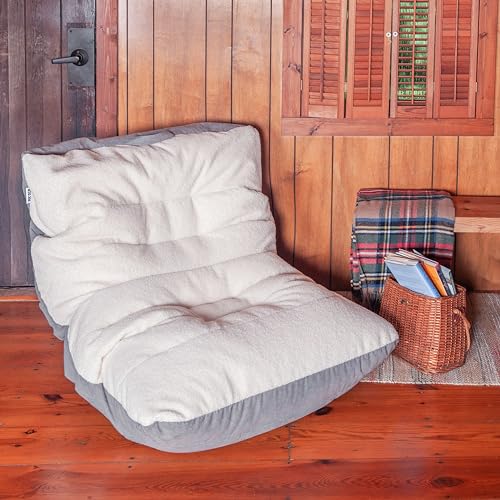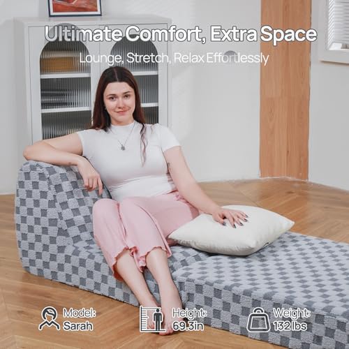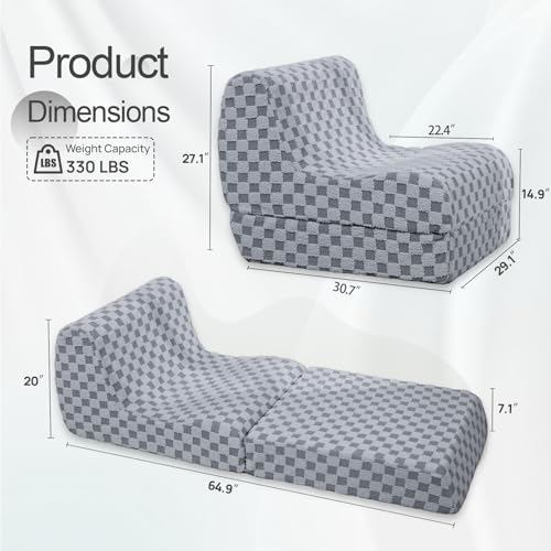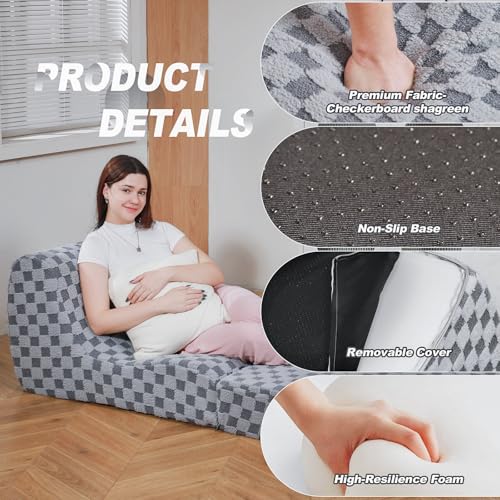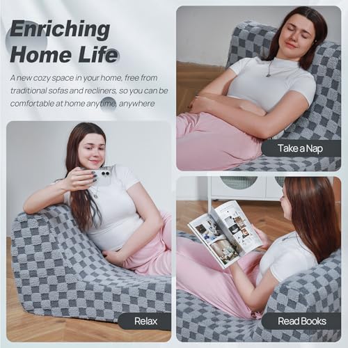 Bean Bag Chair with Checkerboard Shaker Fleece Fabric, Folding Sofa Bed, Floor Sleeper Lounge Chair, Lazy Sofa for Living Room, Bedroom, Apartments (Cement Gray)