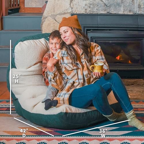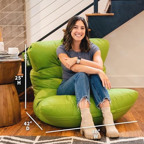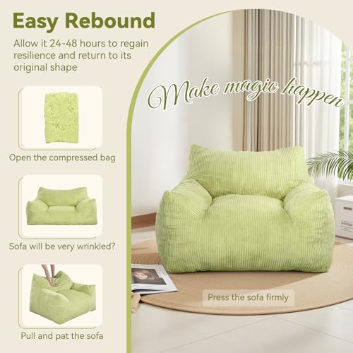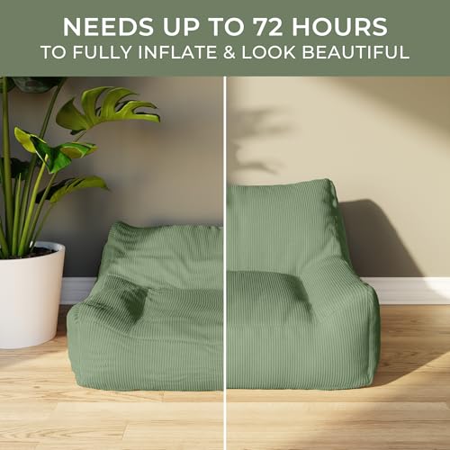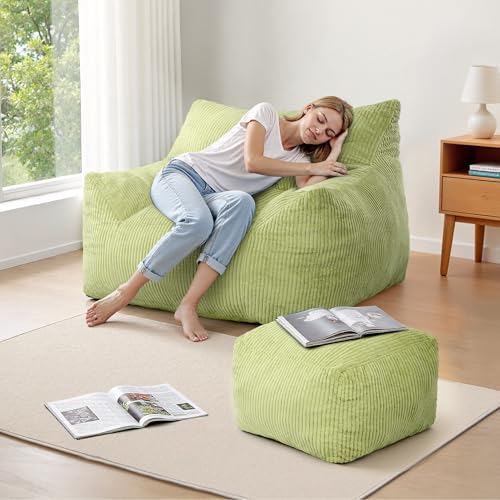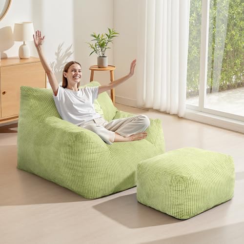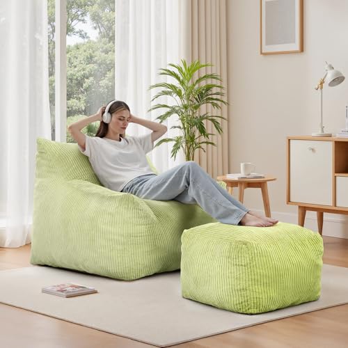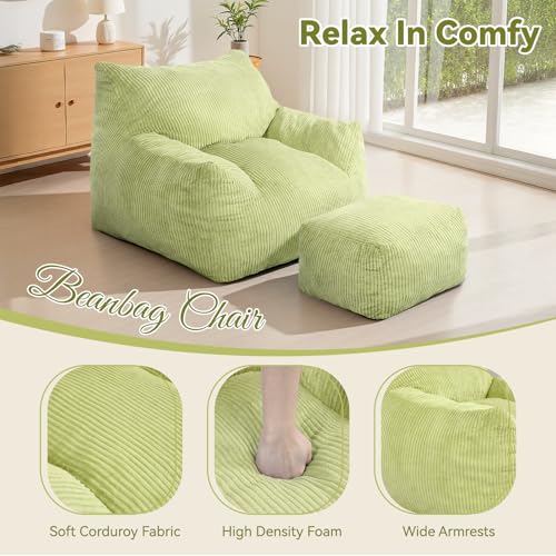 INMOZATA Bean Bag Chair for Adults, 3FT Beanbag Chair with Ottoman Pre-Filled Fluffy Lazy Chair Corded Fabric Accent Chair for Bedroom Living Room Dorm (Green)