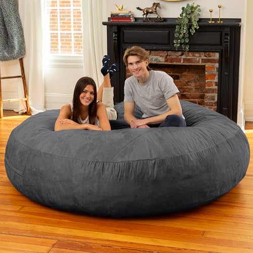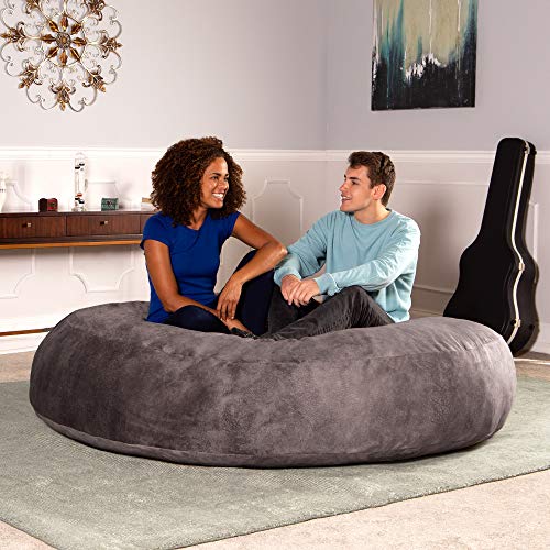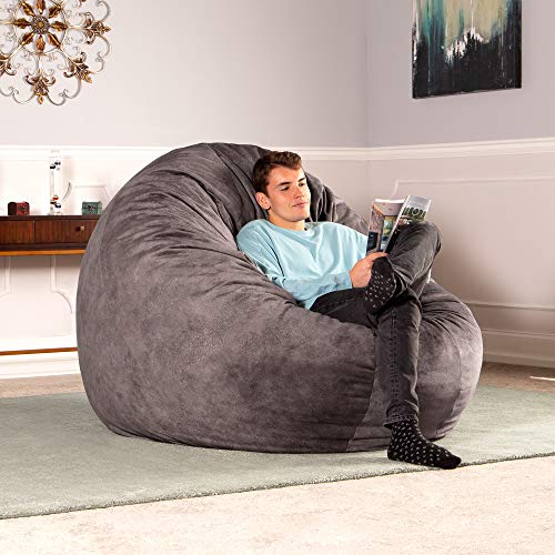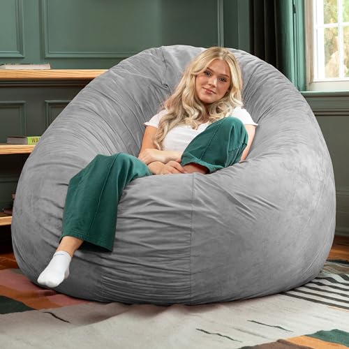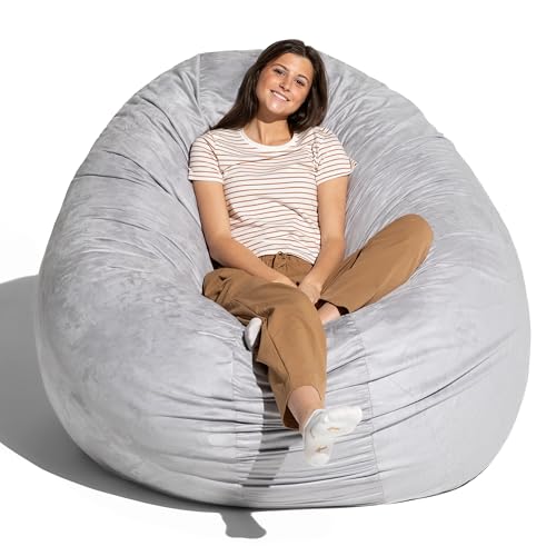 ULTIMATE SACK 6ft Bean Bag Chair & Footstool, Oversize Bean Bag Chair for Adults, Comfy Chair Bean Bag Couch Lounge Sofa Loveseat Furniture | Grey Suede