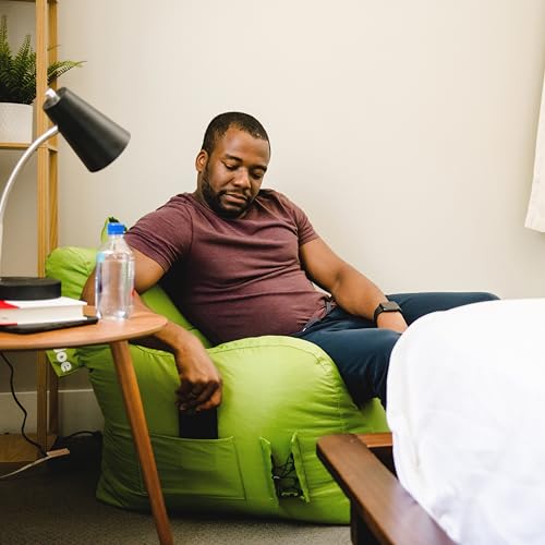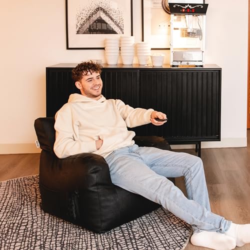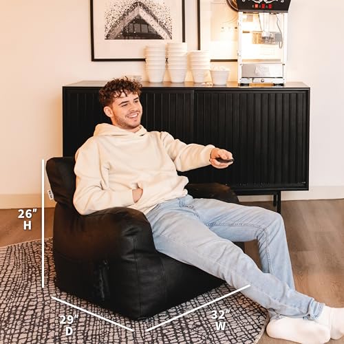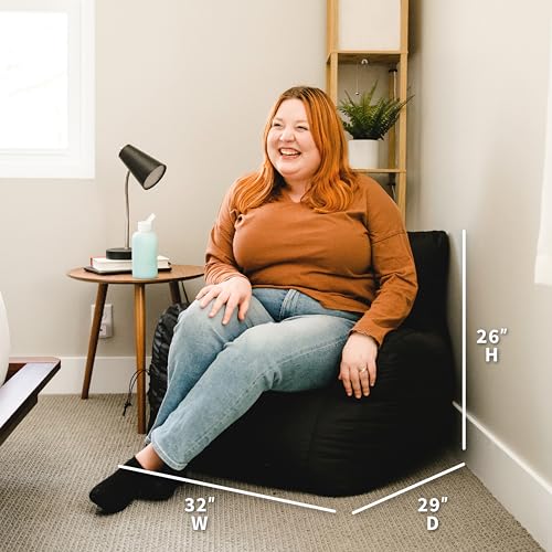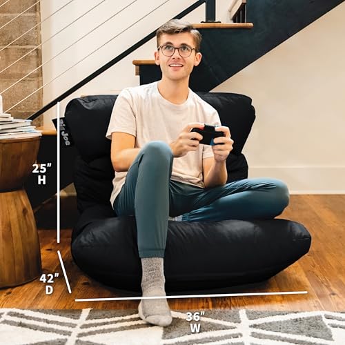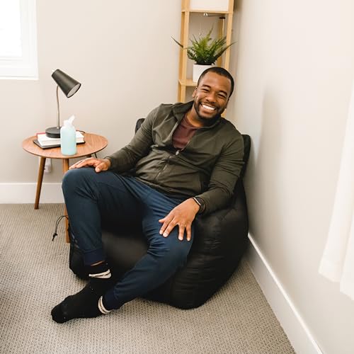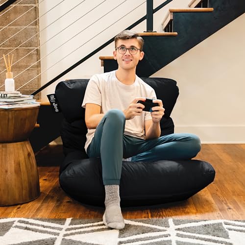 Big Joe Dorm Bean Bag Chair with Drink Holder and Pocket, Black Smartmax, Durable Polyester Nylon Blend, 3 feet