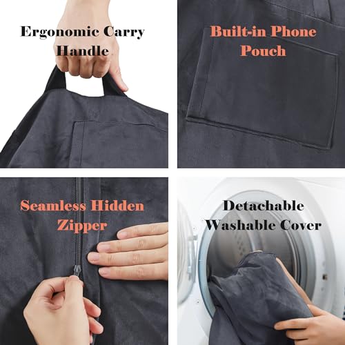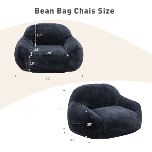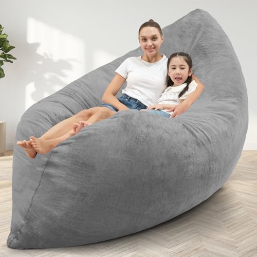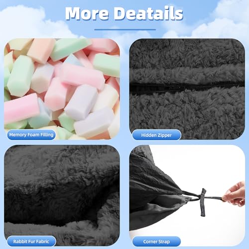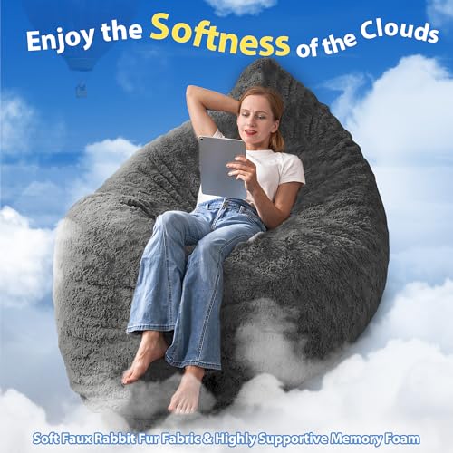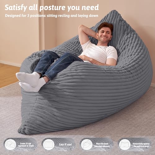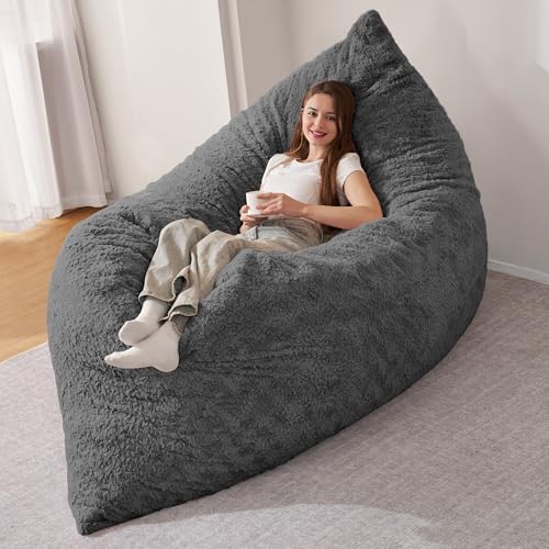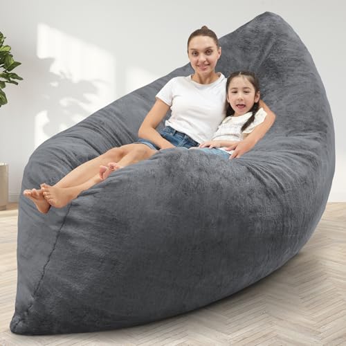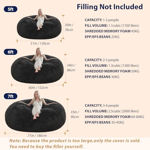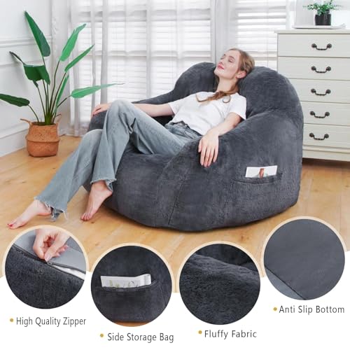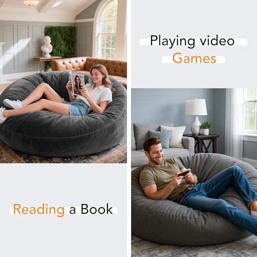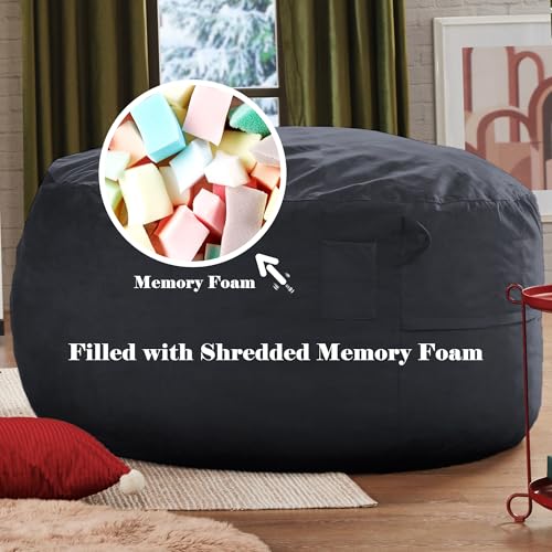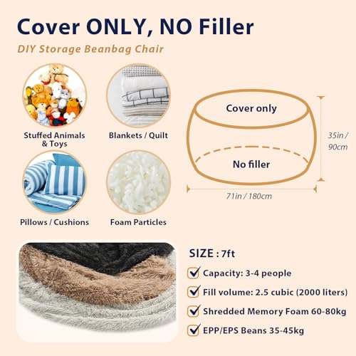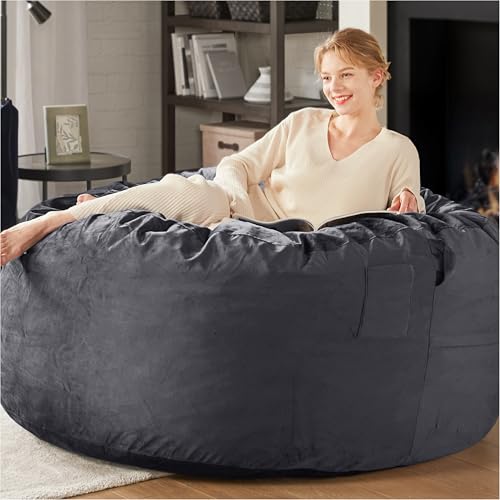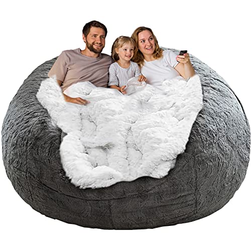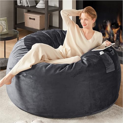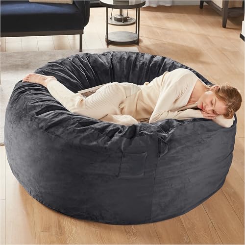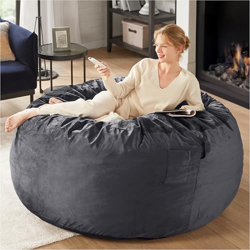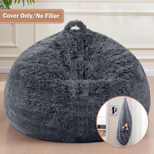 (No Filler) Bean Bag Chair Cover Without Filler,Big Round Soft Fluffy PV Velvet Washable Bean Bag Lazy Sofa Bed Cover for Adults,Living Room Bedroom Furniture Outside,5ft Dark Grey