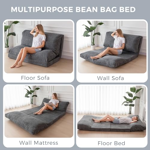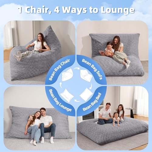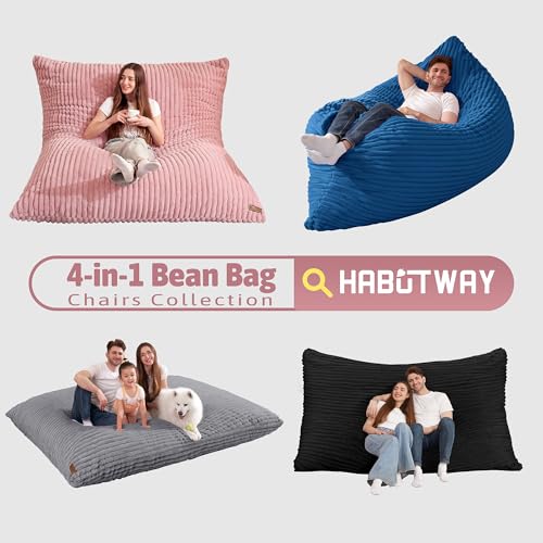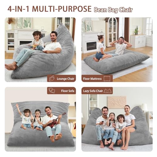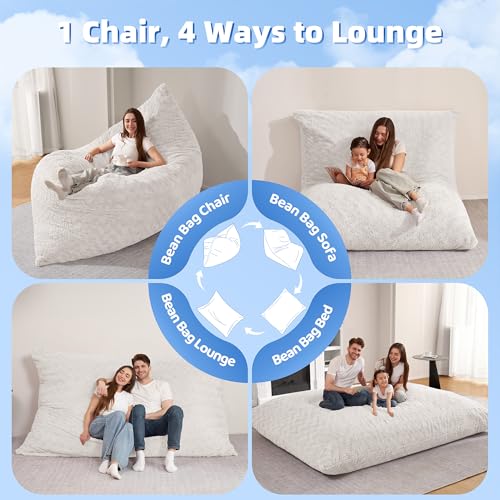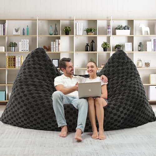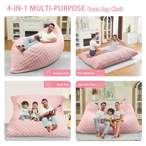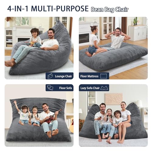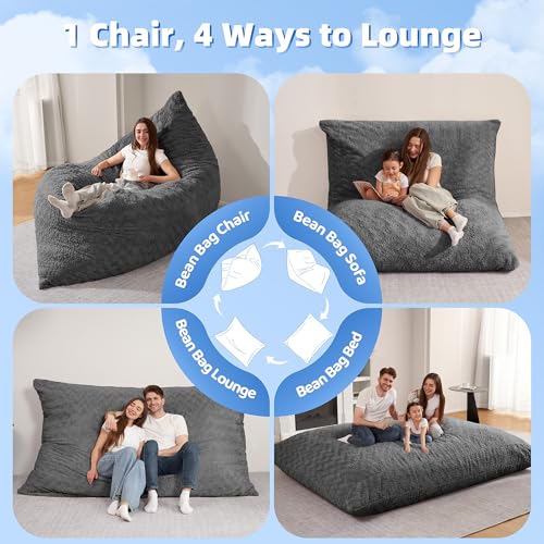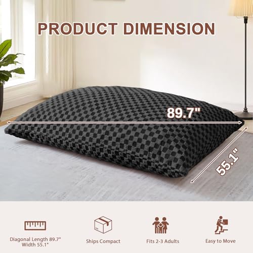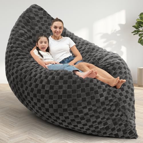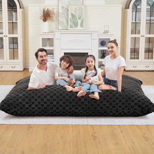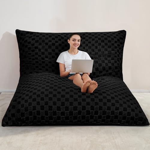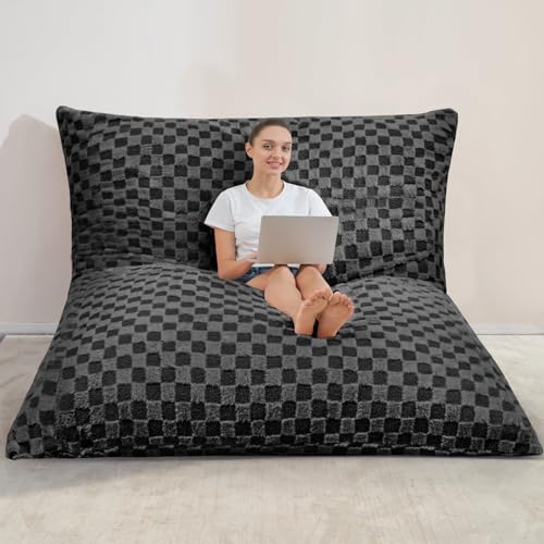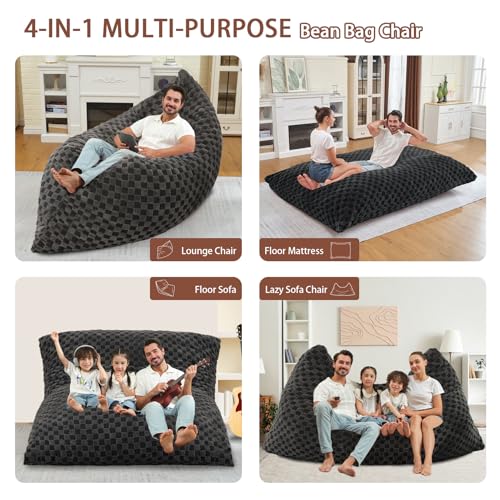 HABUTWAY 4 in 1 Bean Bag Chair,Giant Bean Bag Chairs for Adults with Memory Foam,Ultra Soft & Machine Washable Cover,Convertible Sofa Bed Floor Couch Lounger for Living Room, Bedroom (Checkboard-Grey)
