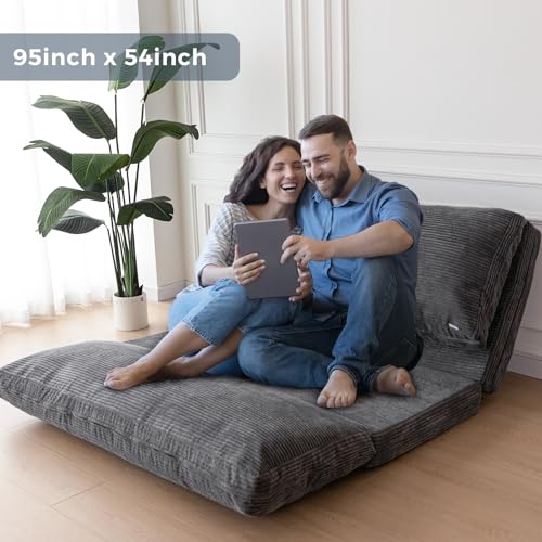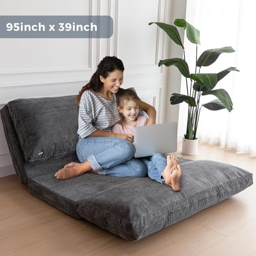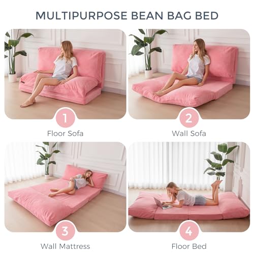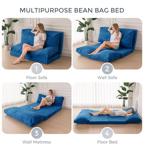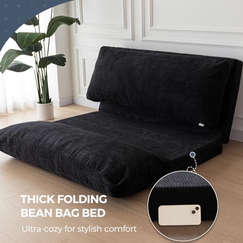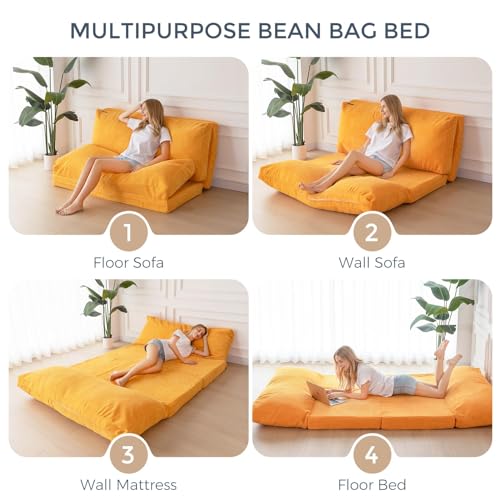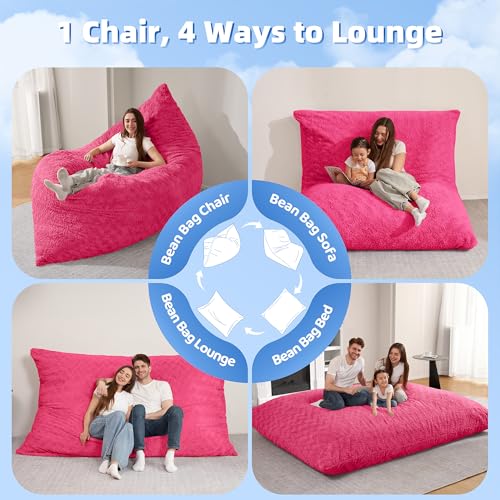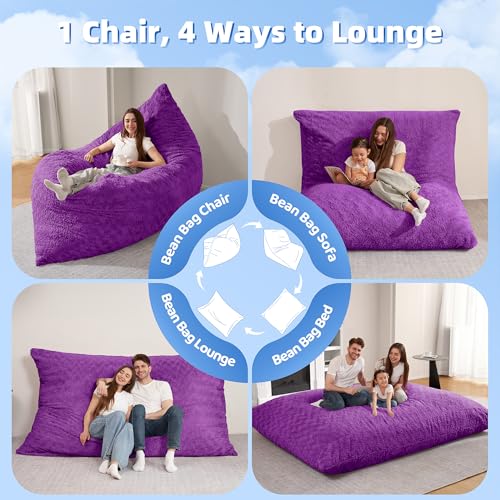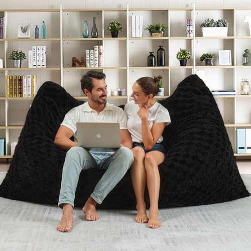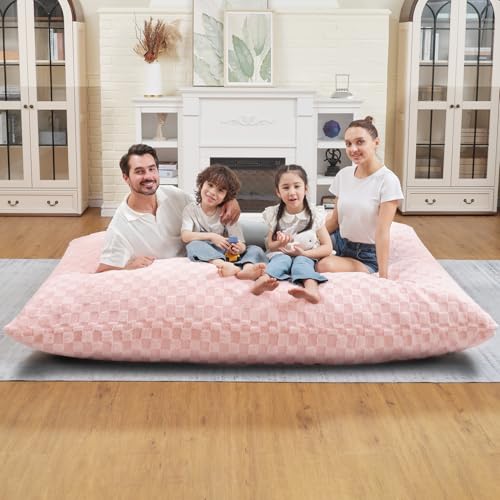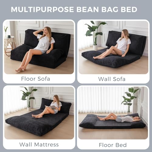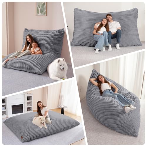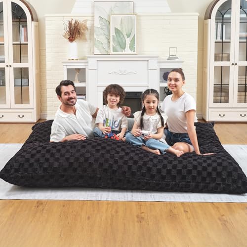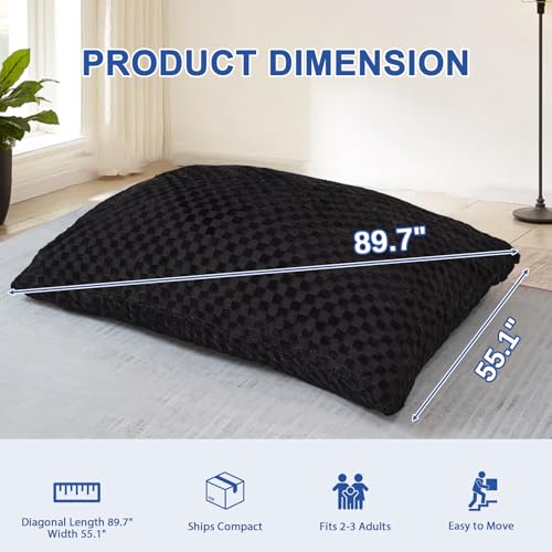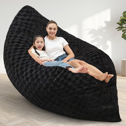 HABUTWAY 4 in 1 Bean Bag Chair,Giant Bean Bag Chairs for Adults with Memory Foam,Ultra Soft & Machine Washable Cover,Convertible Sofa Bed Floor Couch Lounger for Living Room, Bedroom (Checkboard-Grey)