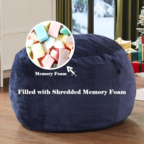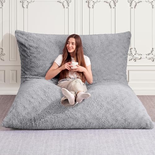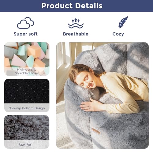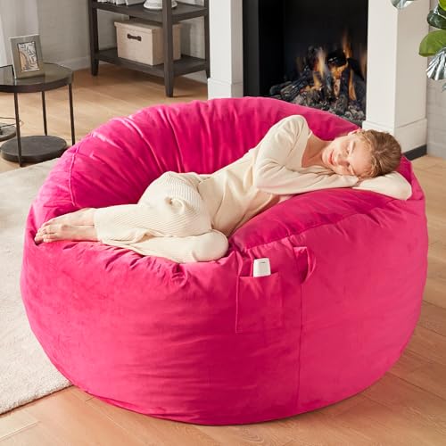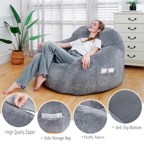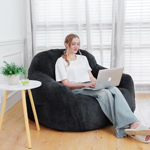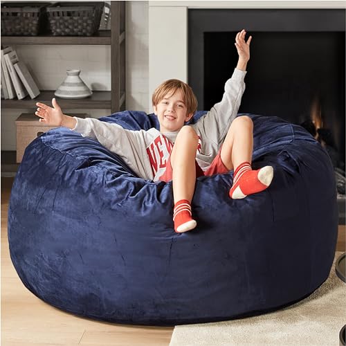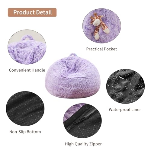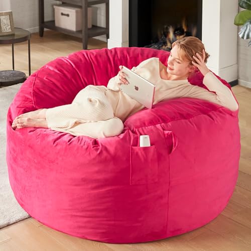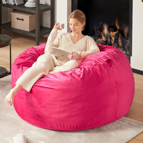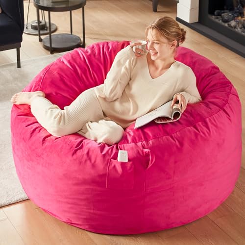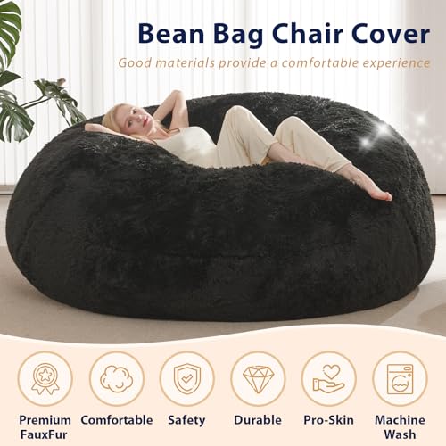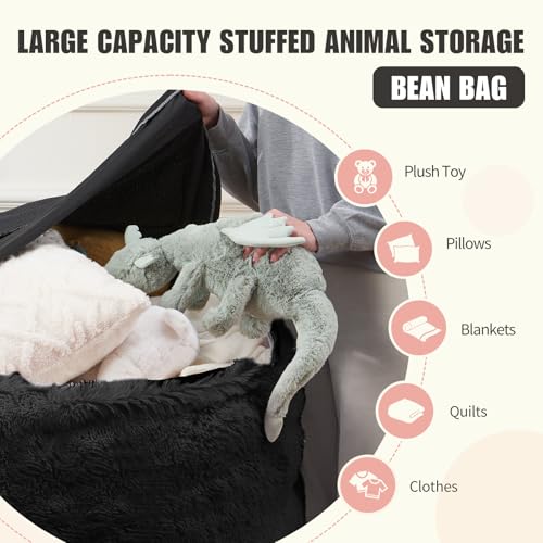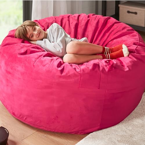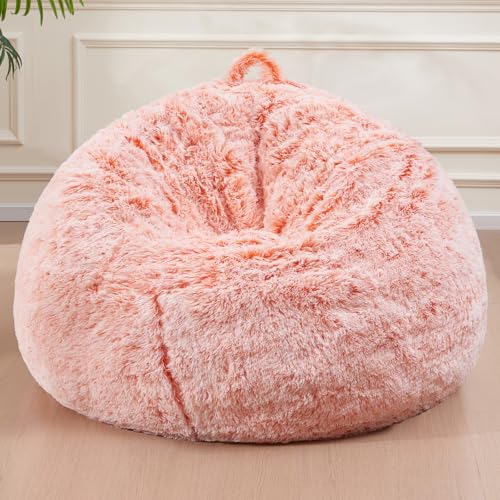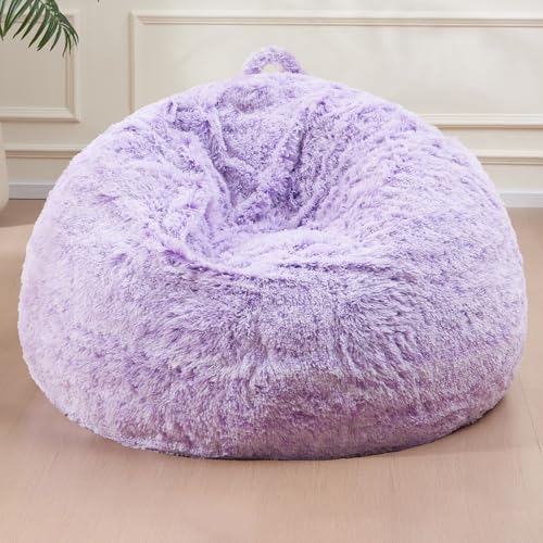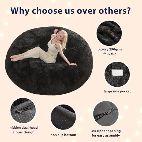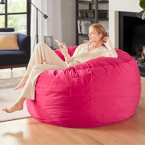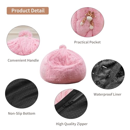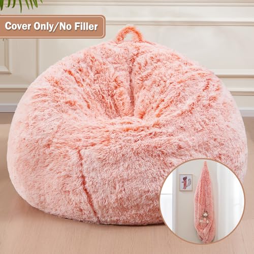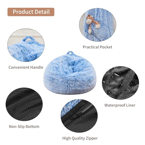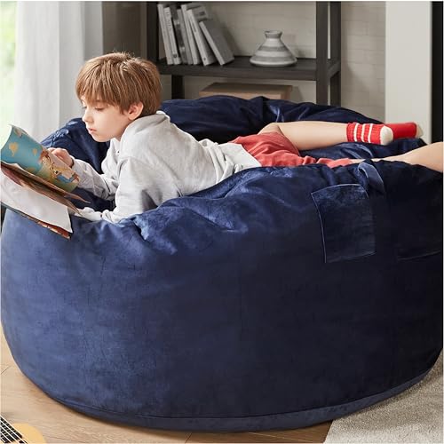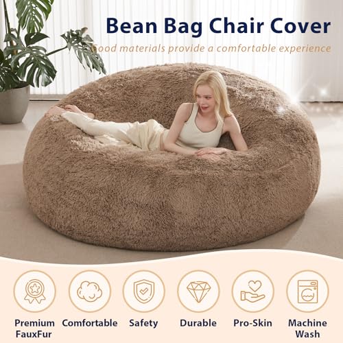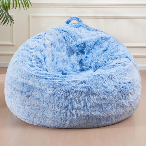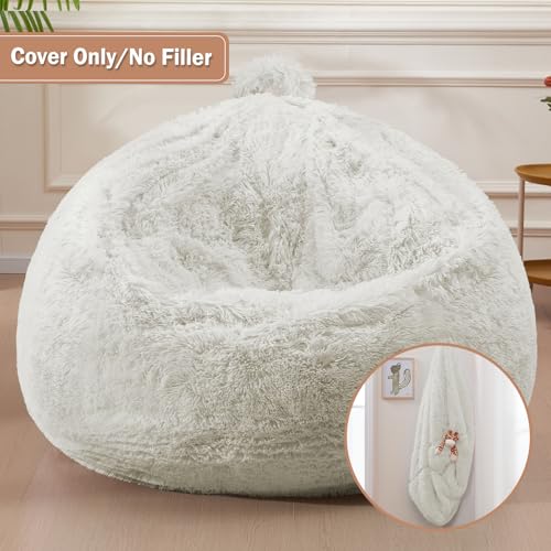 Bean Bag Chair Cover, Waterproof Faux Fur Bean Bag Cover Only(No Filler), 5FT Round Beanbag Chair with Pocket, Big Giant Bean Bags Chairs for Adults Kids Teens, Stuffed Animal Storage