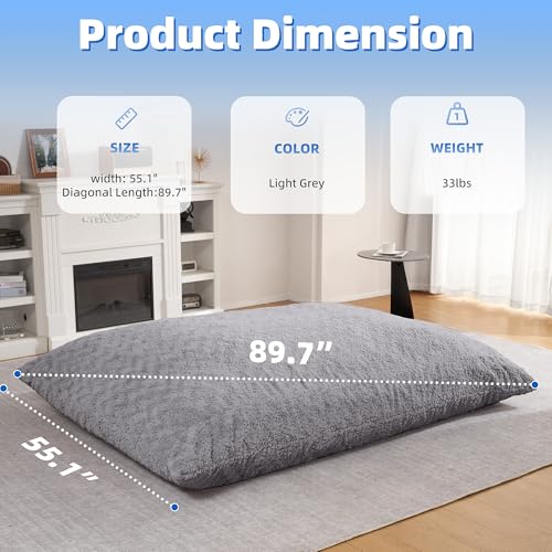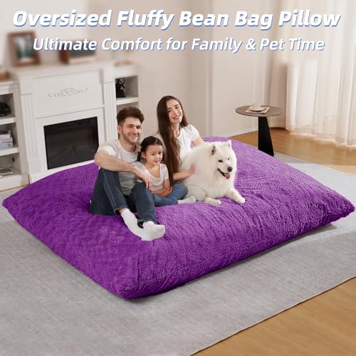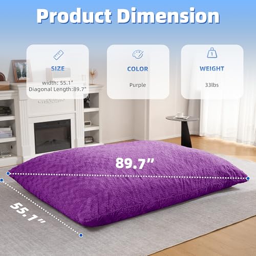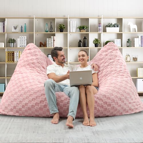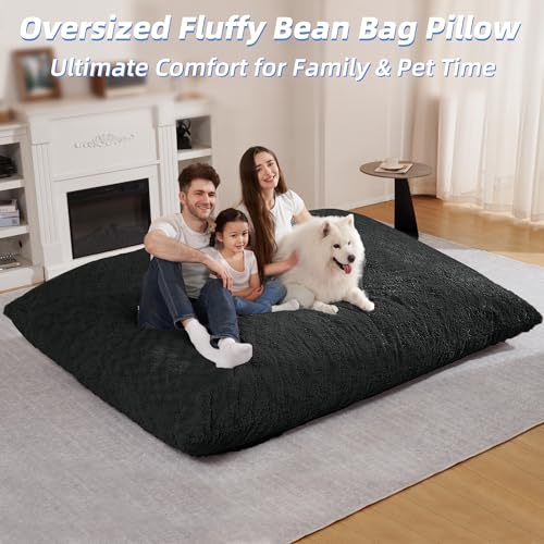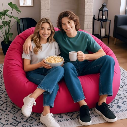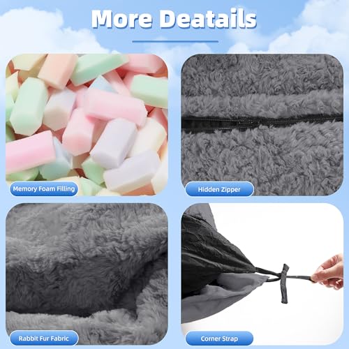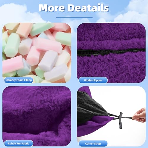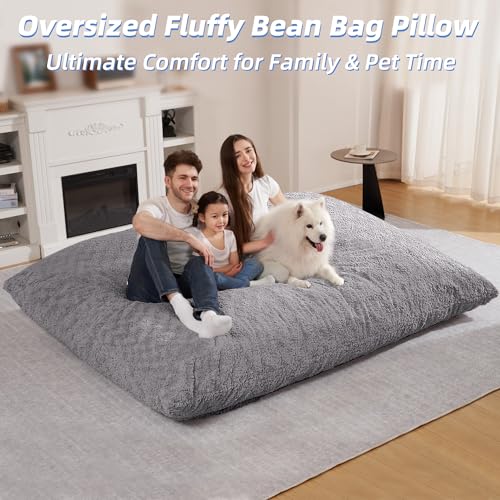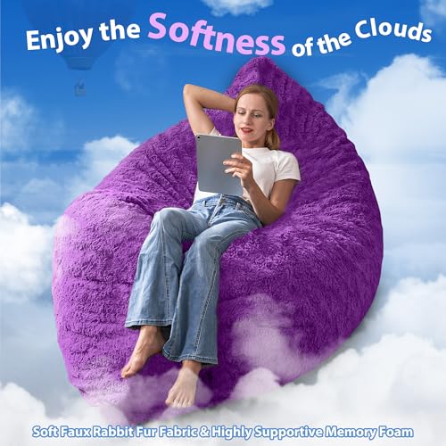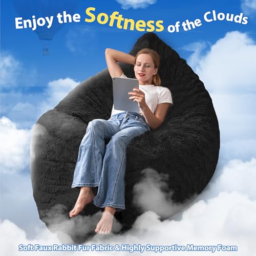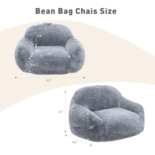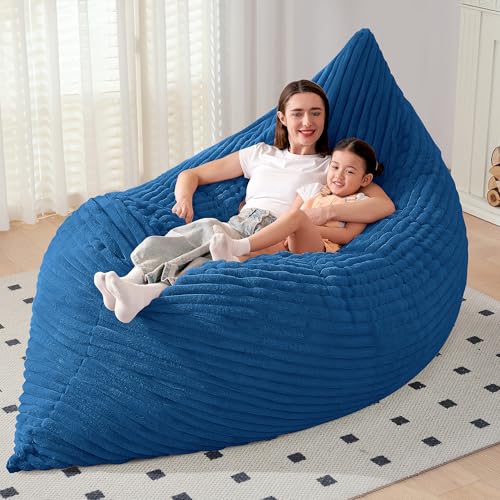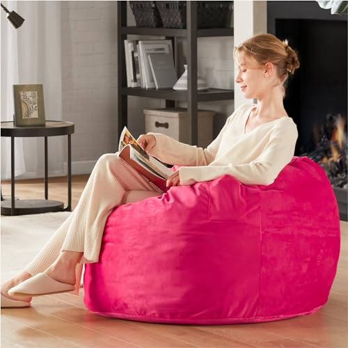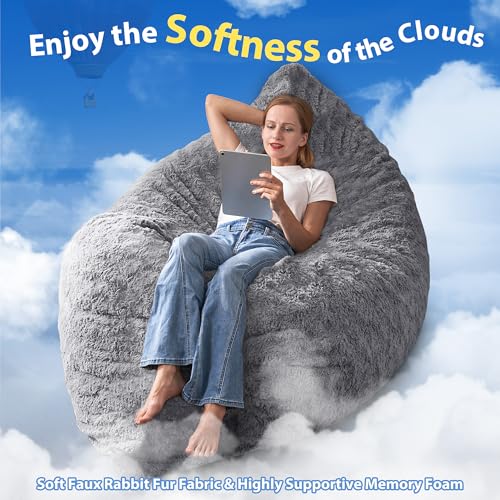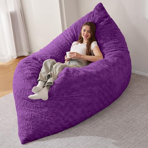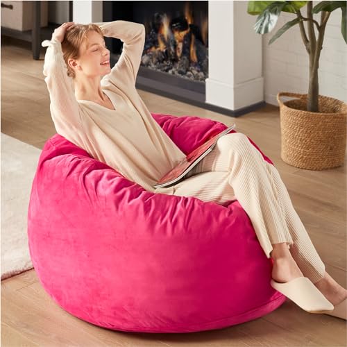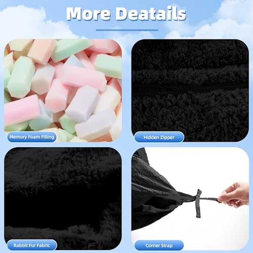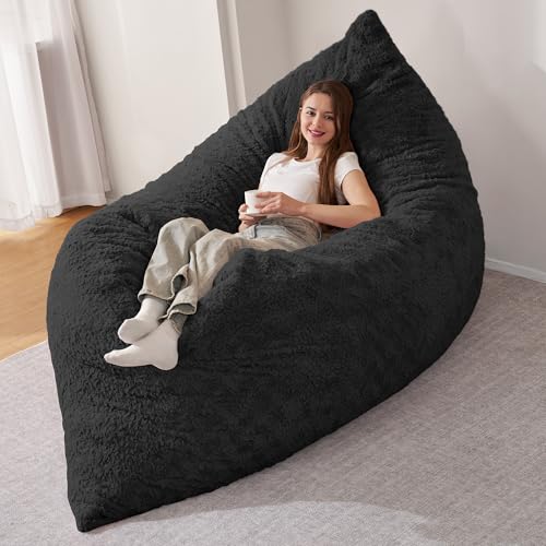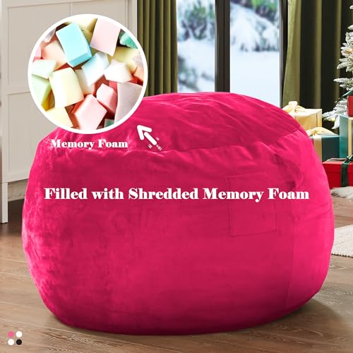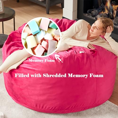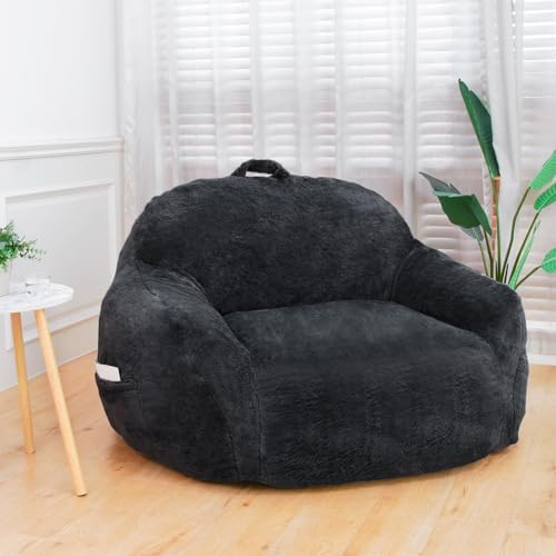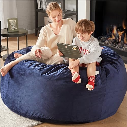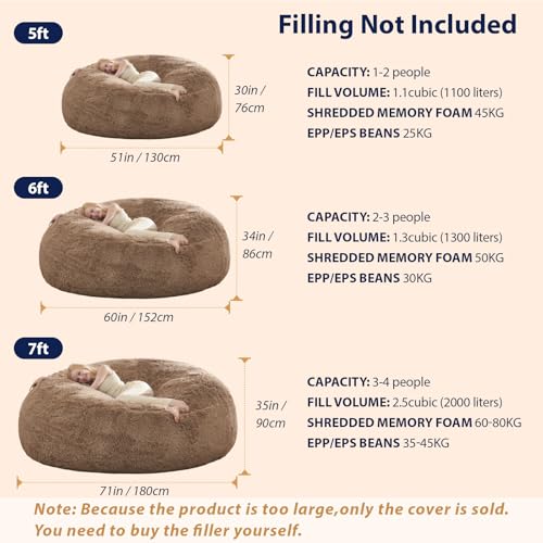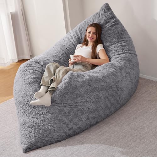 Bean Bag Chair Cover, Waterproof Faux Fur Bean Bag Cover Only(No Filler), 5FT Round Beanbag Chair with Pocket, Big Giant Bean Bags Chairs for Adults Kids Teens, Stuffed Animal Storage