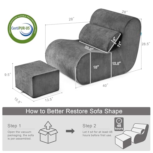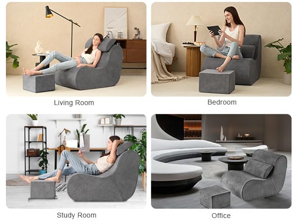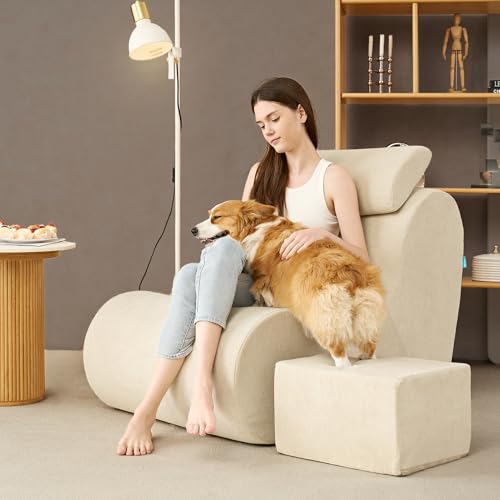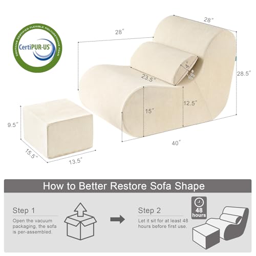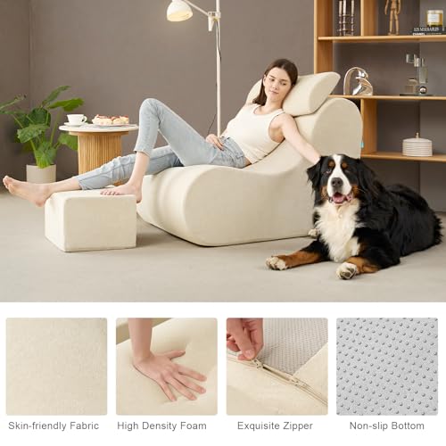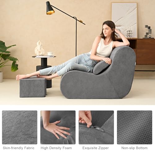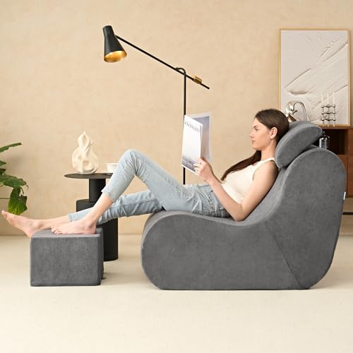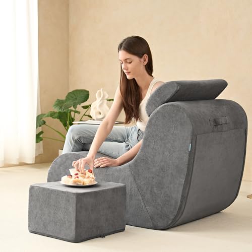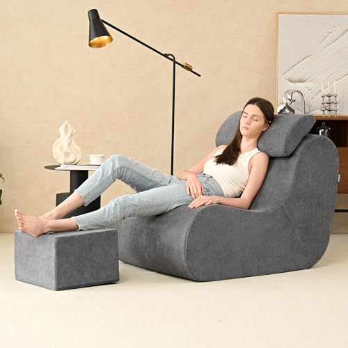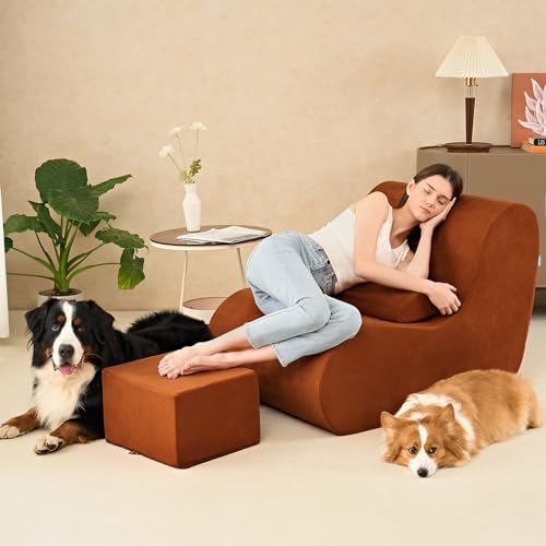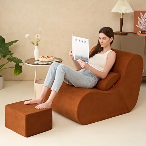 Hansleep Bean Bag Chair for Adults, High-Density Foam Reading Chair with Ottoman, Cozy Beanbag Sofa Chair with Waist Support for Living Room, Bedroom, Burnt Orange