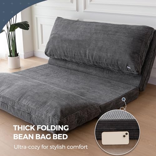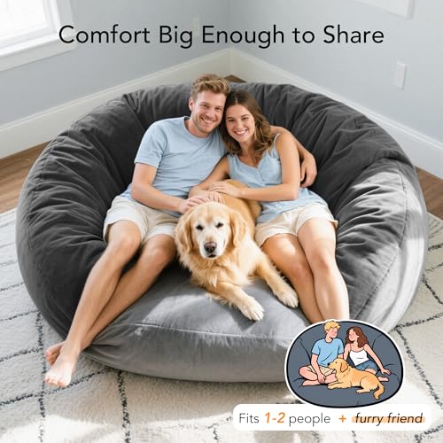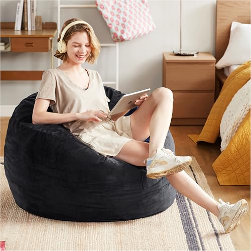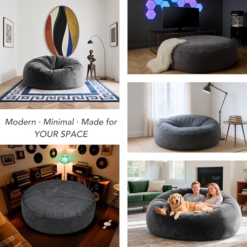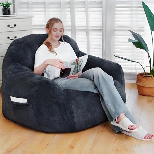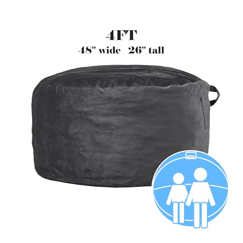 Codi Bean Bag Chair with Filler Included, 4 FT - Comfy Large Beanbag Chairs for Adults - Machine Washable and Soft Mink Bonded Cover - Charcoal Grey, 4ft