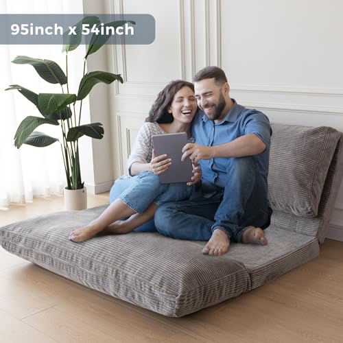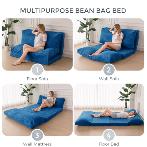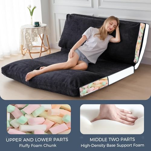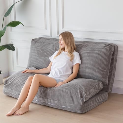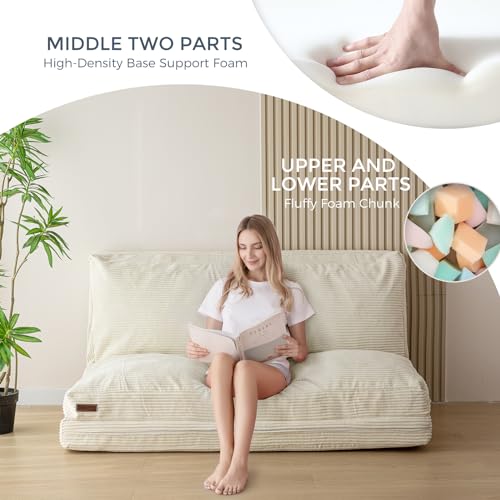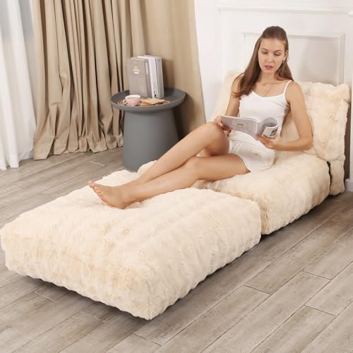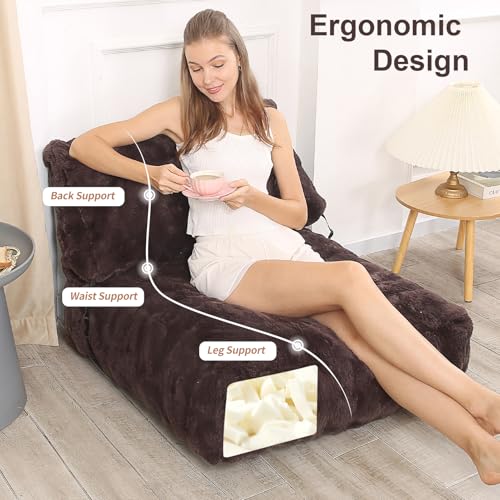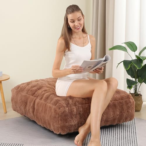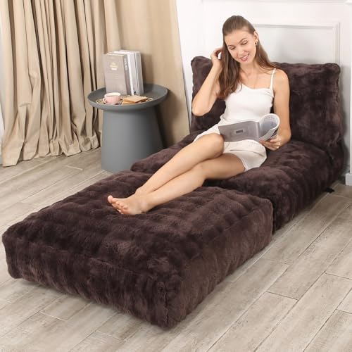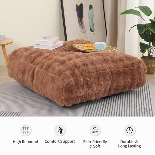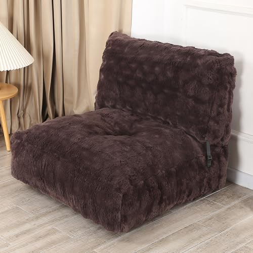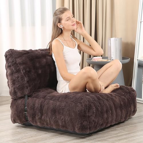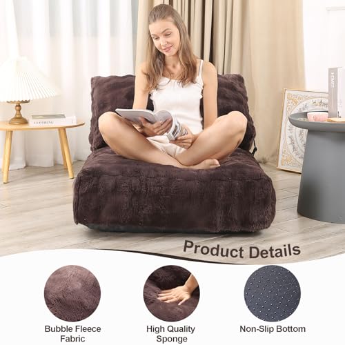 Comfy Lazy Floor Sofa, Bean Bag Chair for Adults, Fluffy Bubble Soft Futon Couch for Reading, Gaming, Relaxing, Brown
