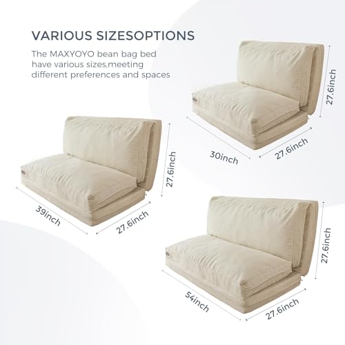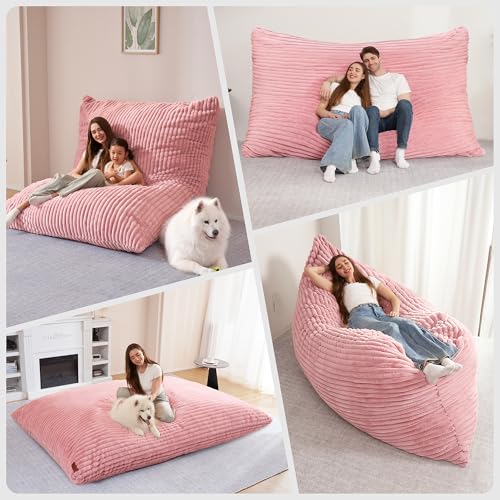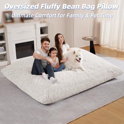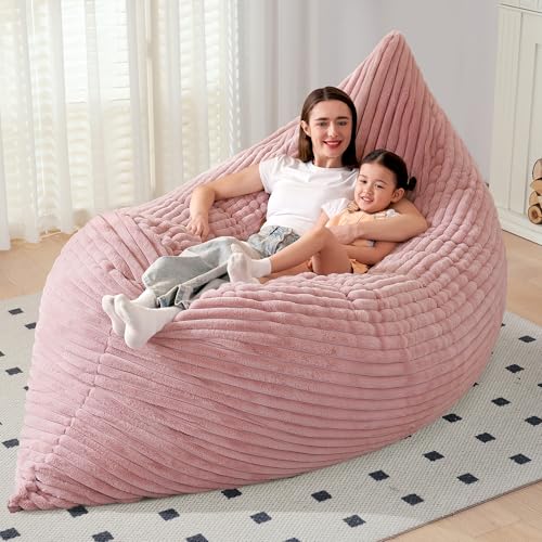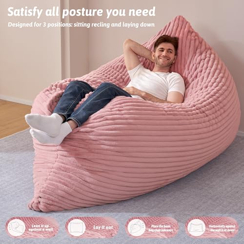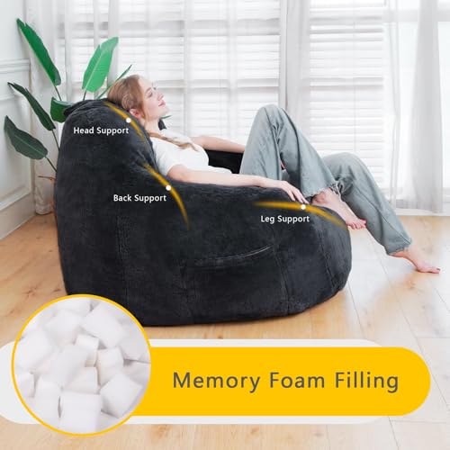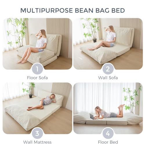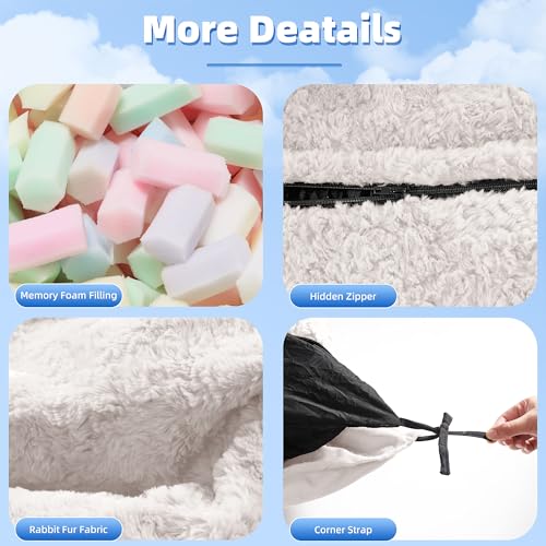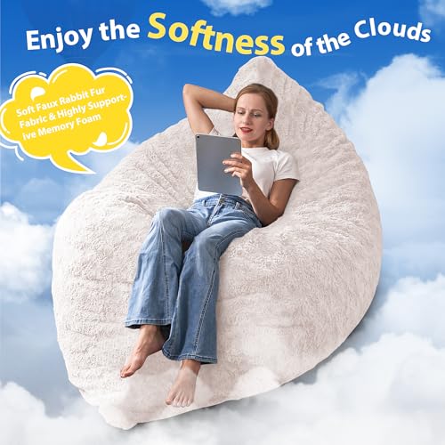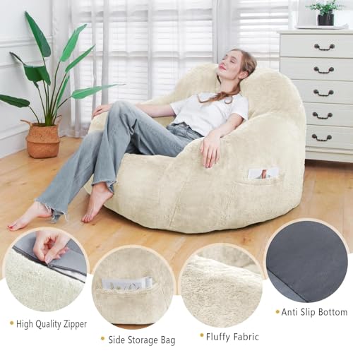 Giant Bean Bag Chair, Oversized Bean Bag Chairs for Adults and Kids, Gaming Chair Stuffed Memory Foam | Storage | Non-Slip, Removable Bean Bag Sofa Comfy Chair for Bedroom, Livingroom (Beige)