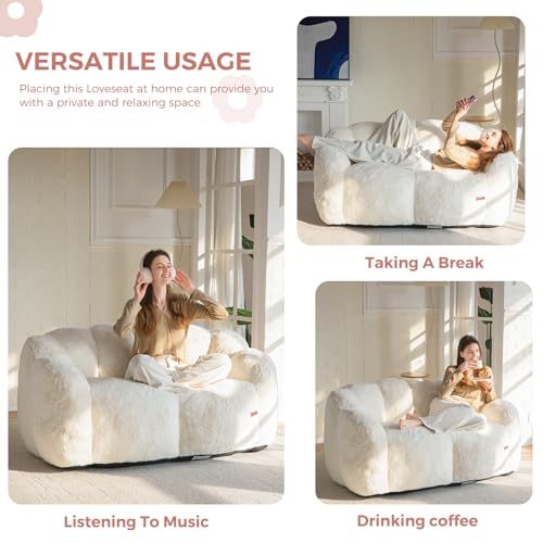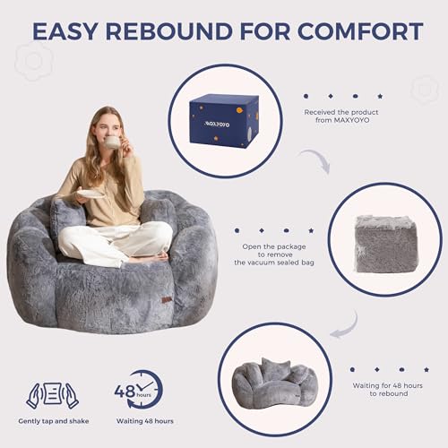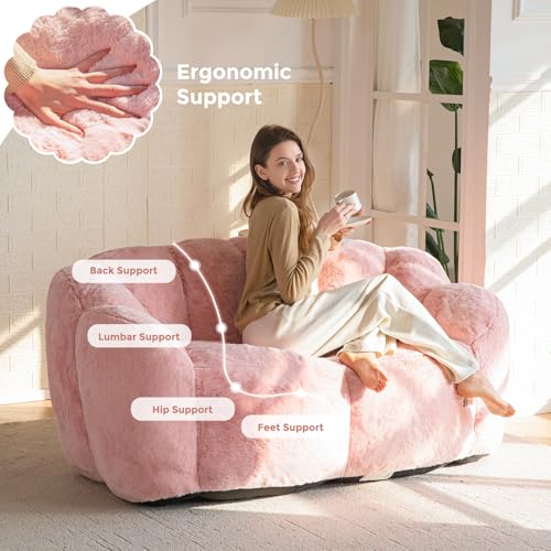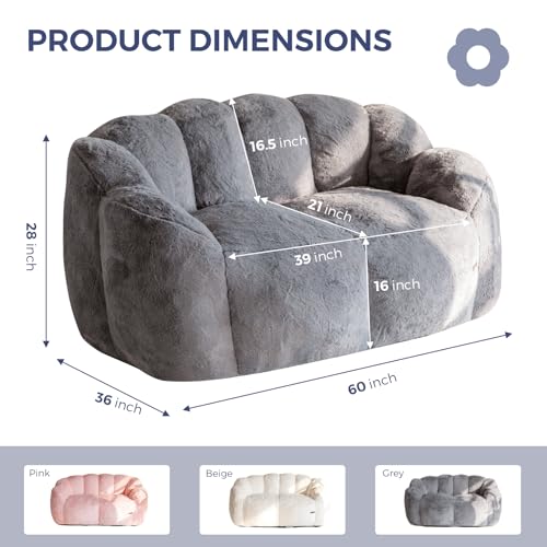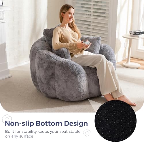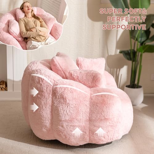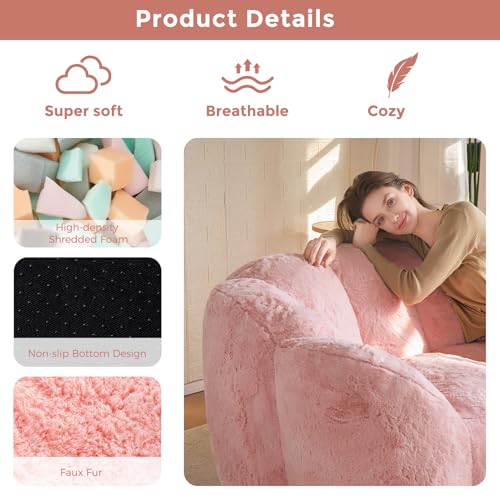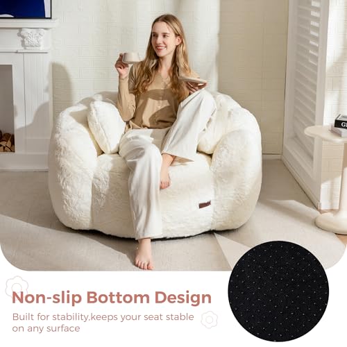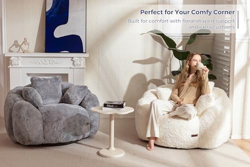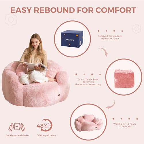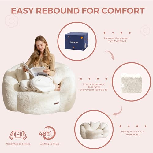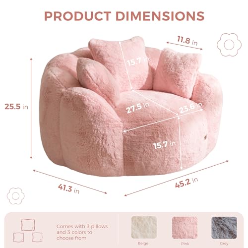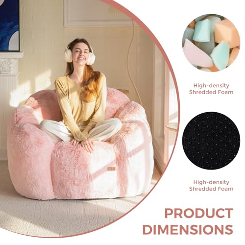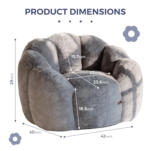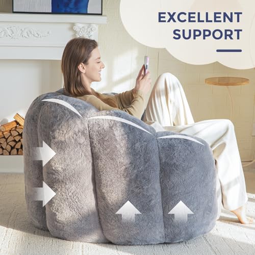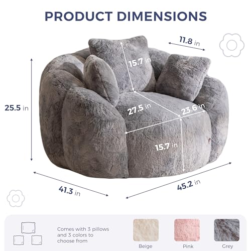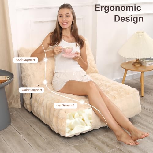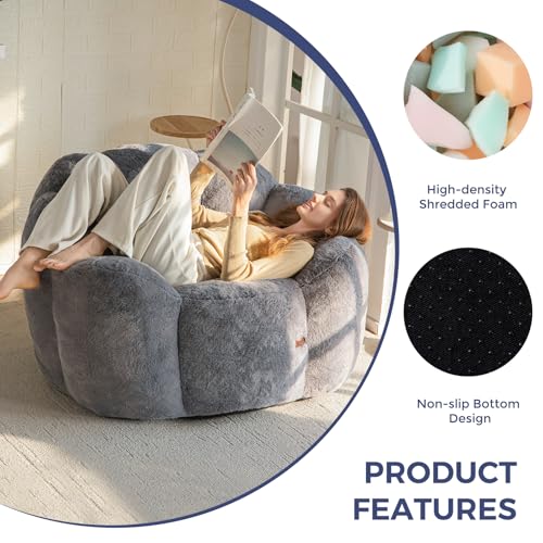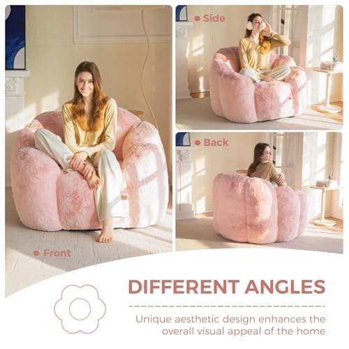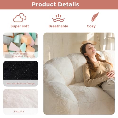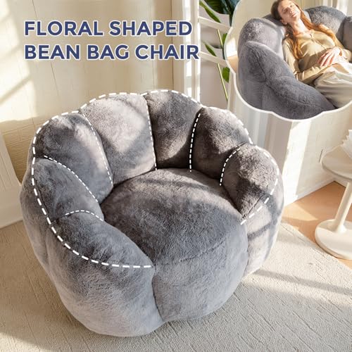 MAXYOYO Bean Bag Chair for Adults, Floral Shaped Bean Bag Sofa, Ultra Soft Faux Fur Floor Sofa, Large Reading Chair for Living Room Bedroom, Beige, Single