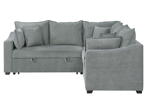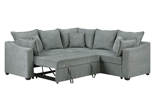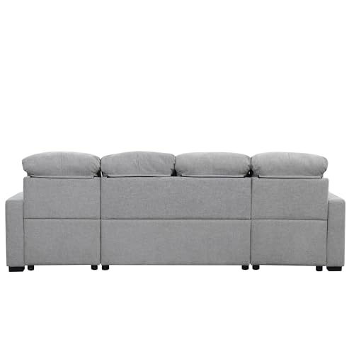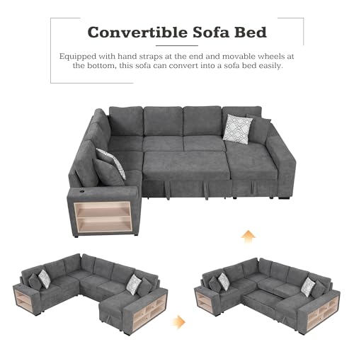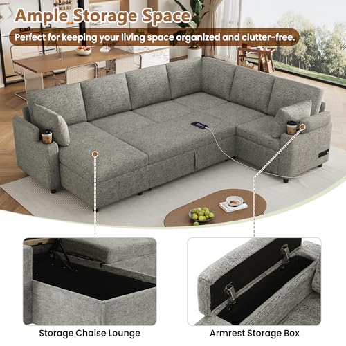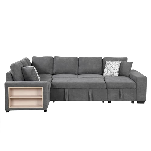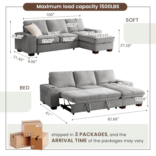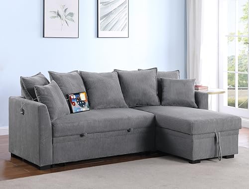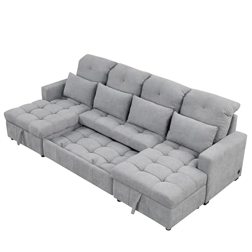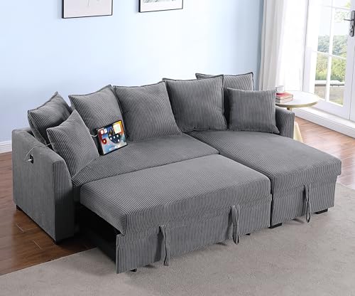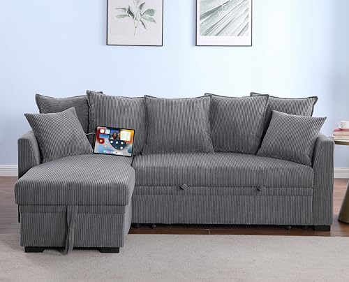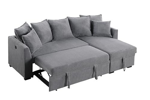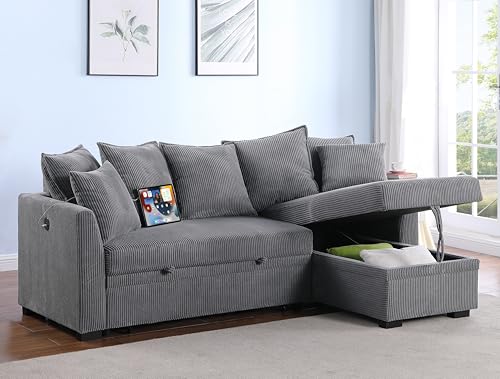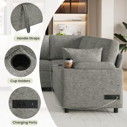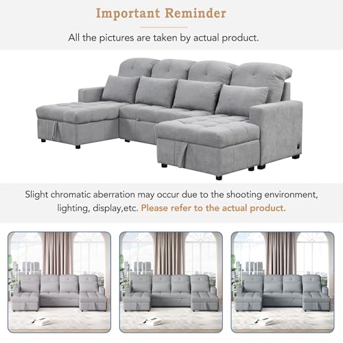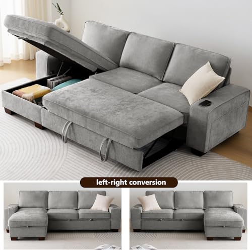 ASHOMELI 99" Convertible Sleeper Sofa Bed,L Shaped with Storage Chaise Pull Out Couch for Living Room,USB and Type-C,Removable Washable Chenille Covers (Gray)