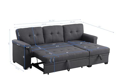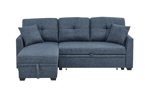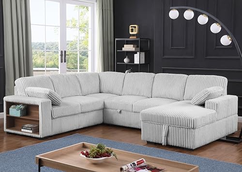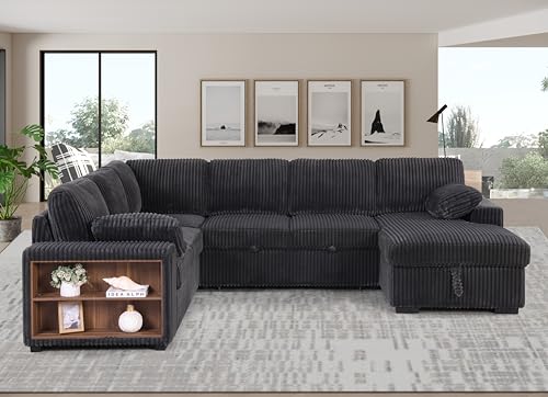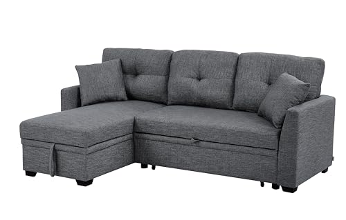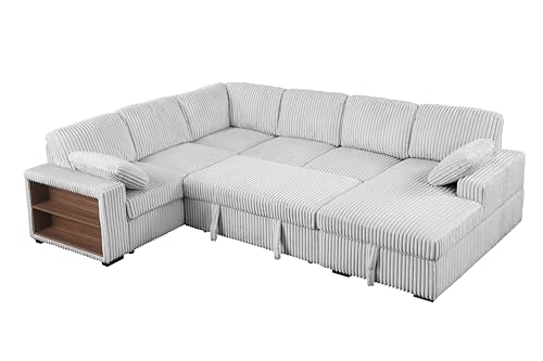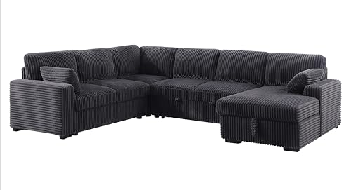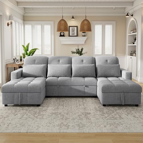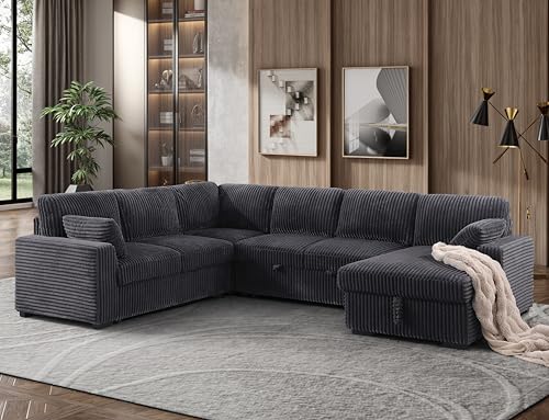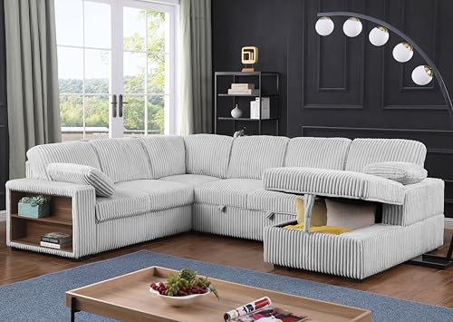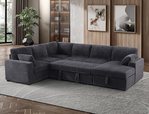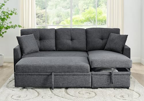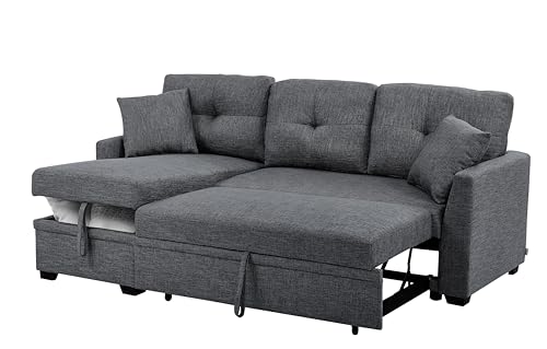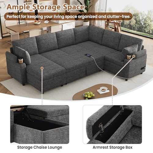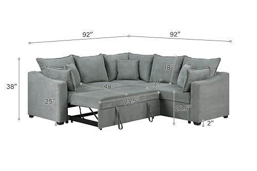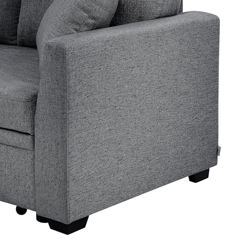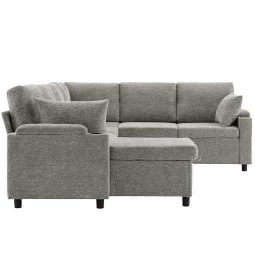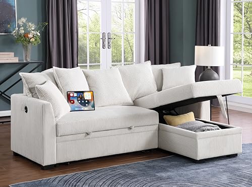 ASHOMELI 99" Convertible Sleeper Sofa Bed,L Shaped with Storage Chaise Pull Out Couch for Living Room,USB and Type-C,Removable Washable Chenille Covers (Gray)