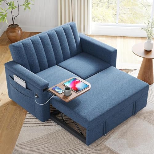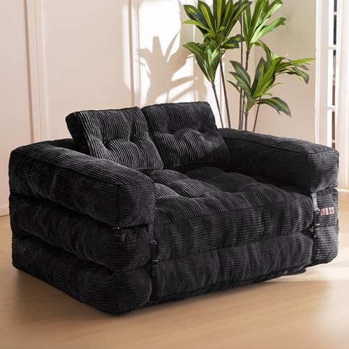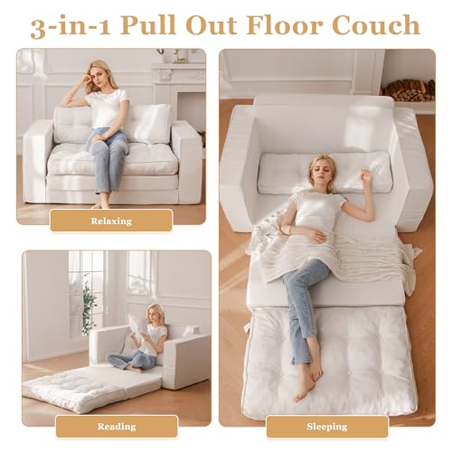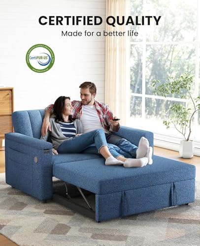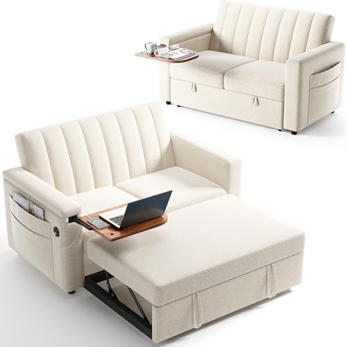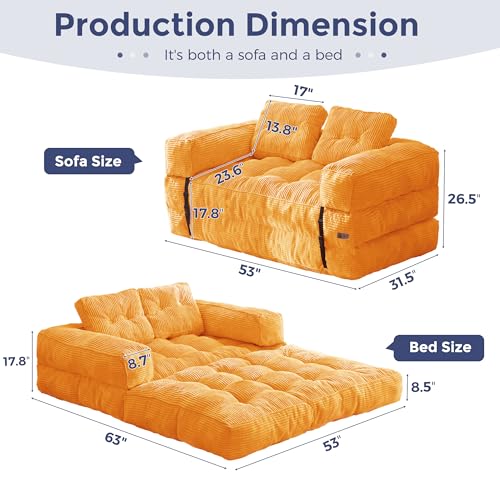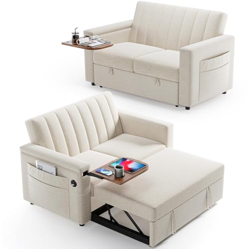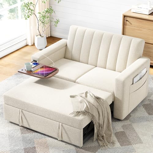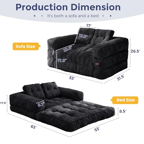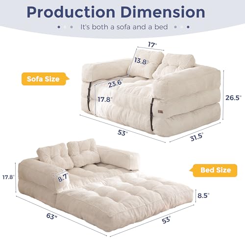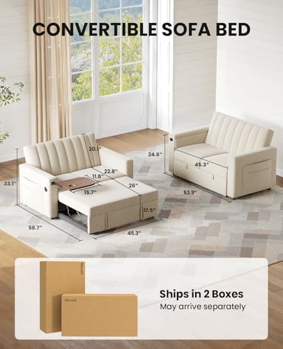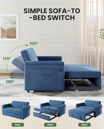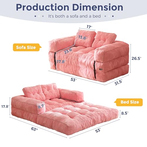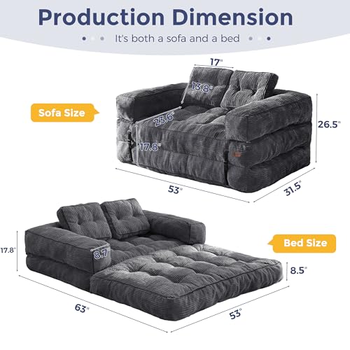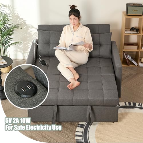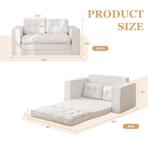 YOSHOOT Loveseat Sleeper Sofa,55" Convertible Sofa Bed Couch Futon Couches for Living Room,3-in-1 Pull Out Floor Couch with Reclining Backrest and Pillows