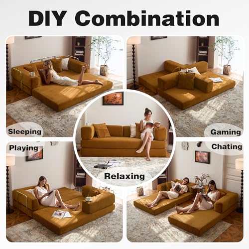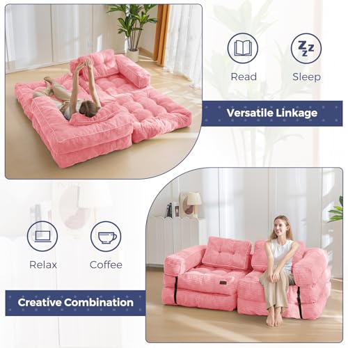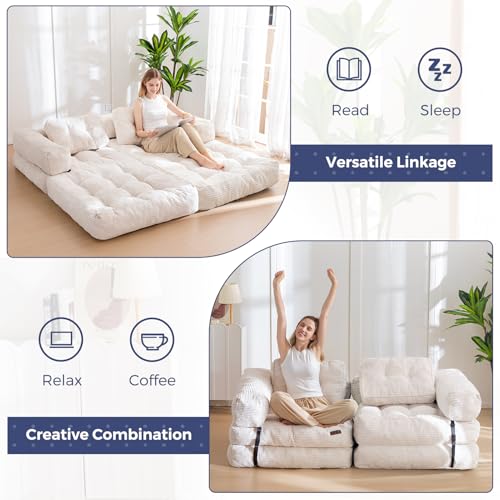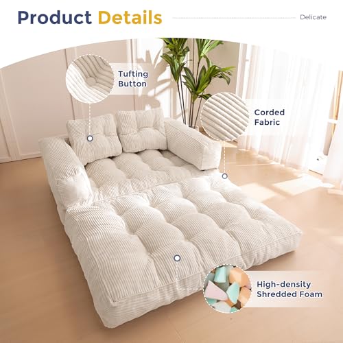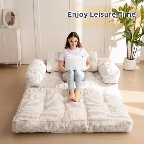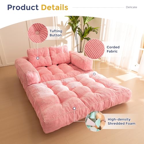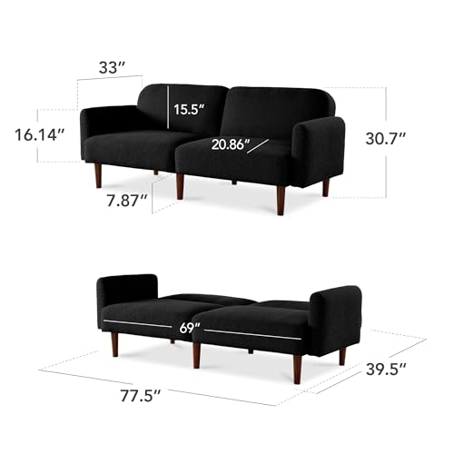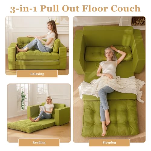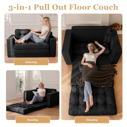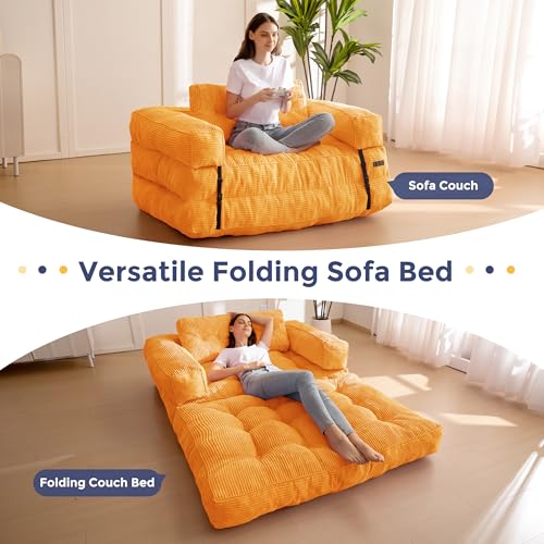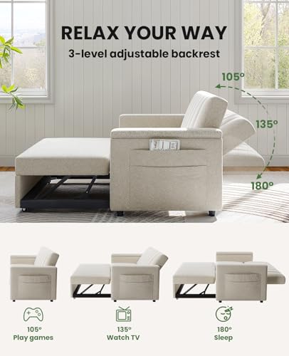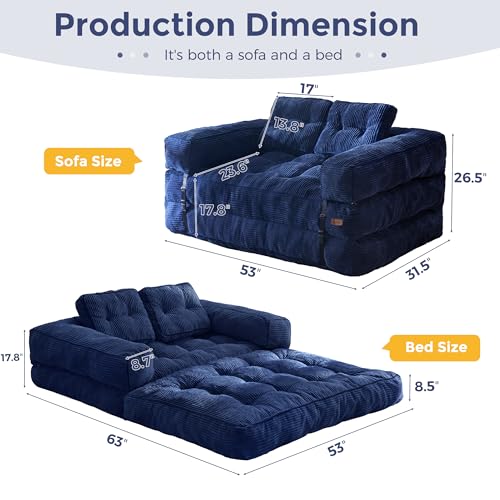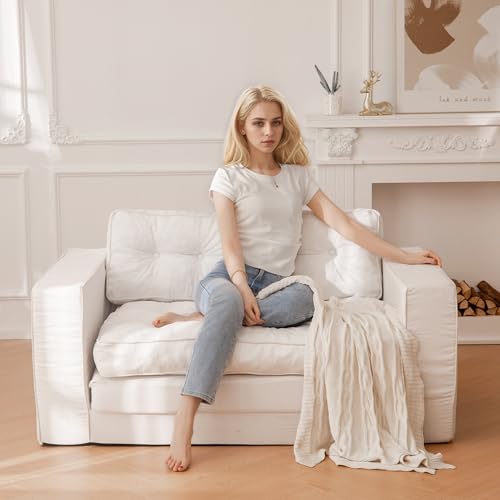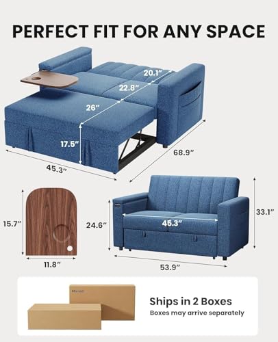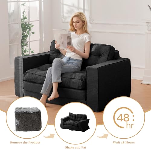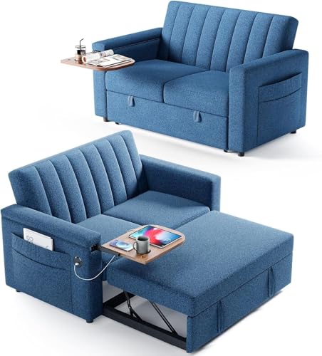 YOSHOOT Loveseat Sleeper Sofa,55" Convertible Sofa Bed Couch Futon Couches for Living Room,3-in-1 Pull Out Floor Couch with Reclining Backrest and Pillows
